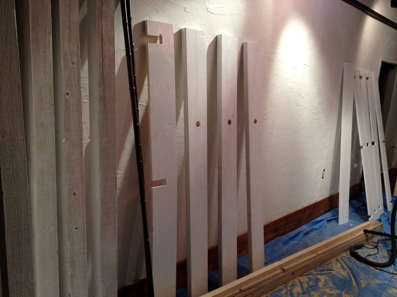 そしてベニア板で壁の下地を作り、その後梁にペンキを塗っていきます!