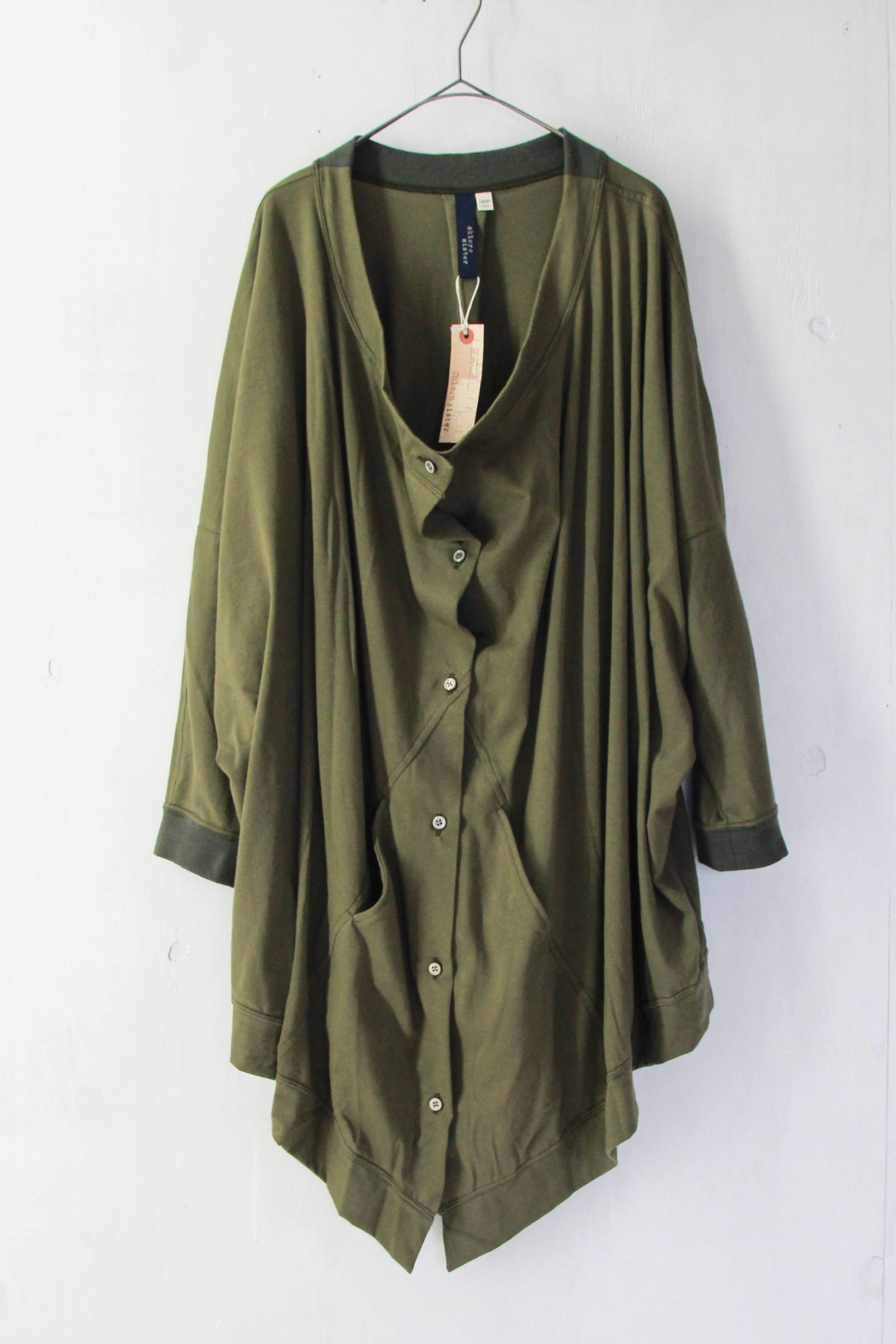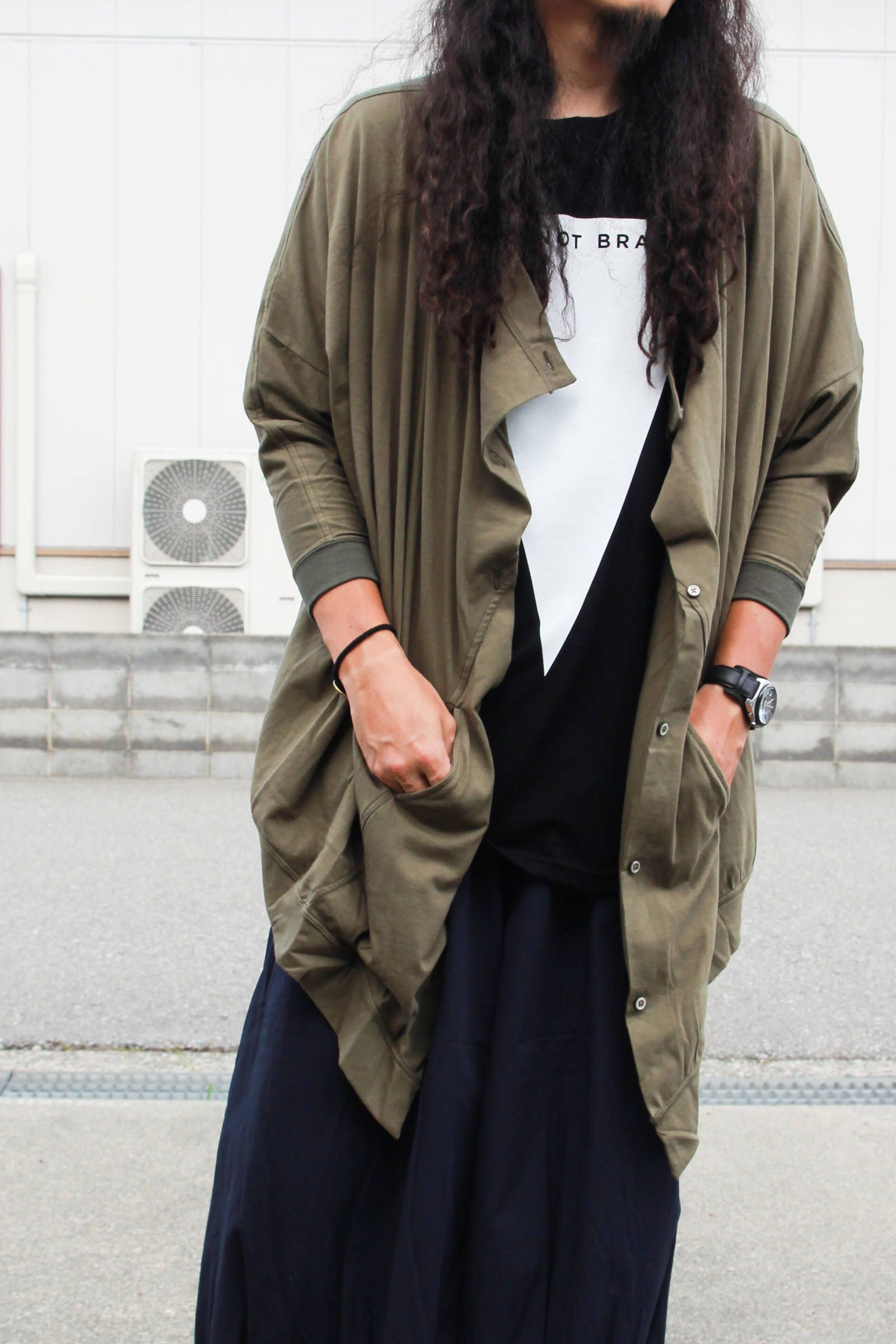 前身頃を大きく取ったドレープ感たっぷりのBIGカーディガン。前ボタンを開けて、タルっと垂らして着るのがお洒落なカーディガンです。