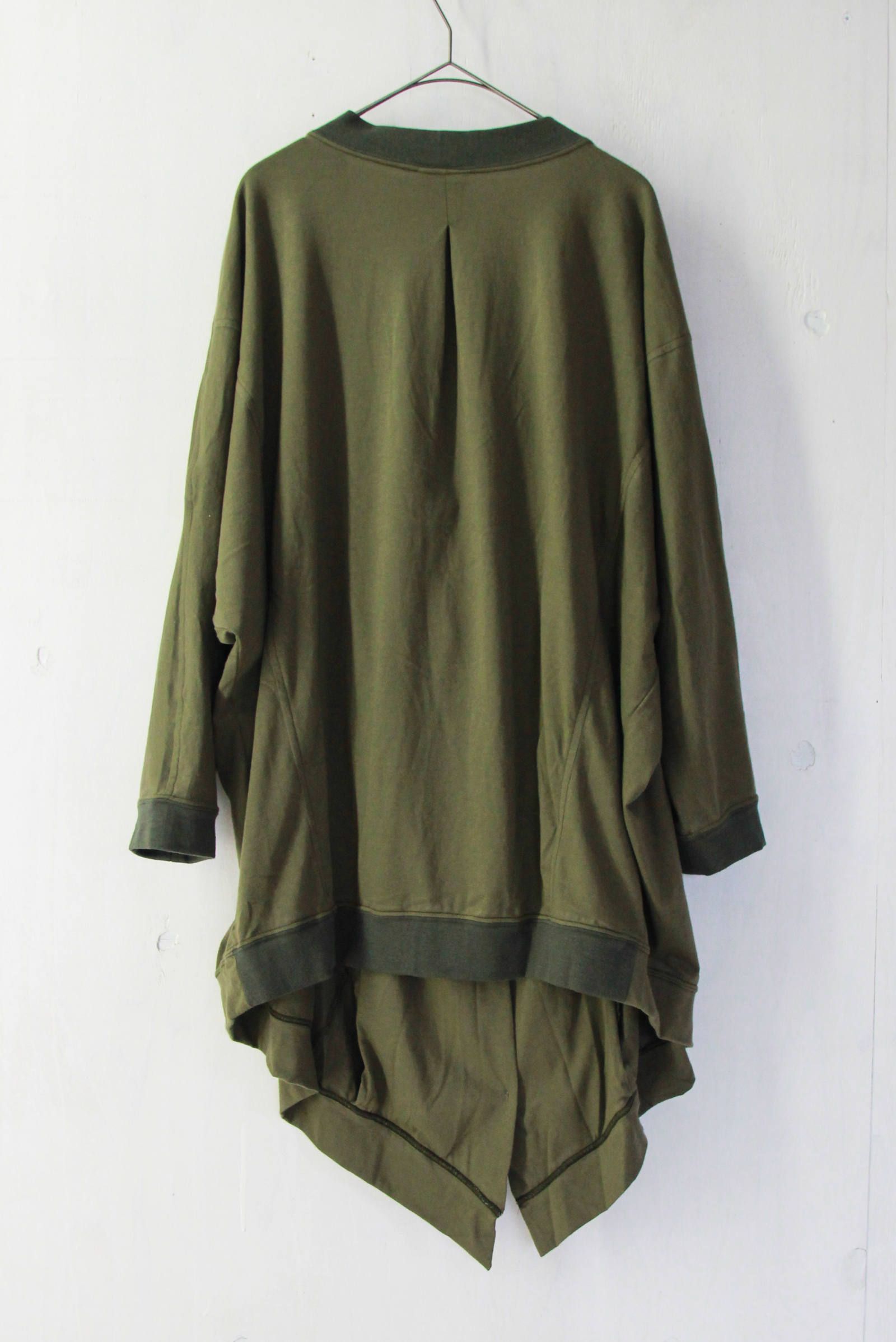 後ろ身頃の着丈は通常のカーディガンと同じ様なサイジングに。前身頃のみ長くなるので、着やすく合わせやすい仕様です。