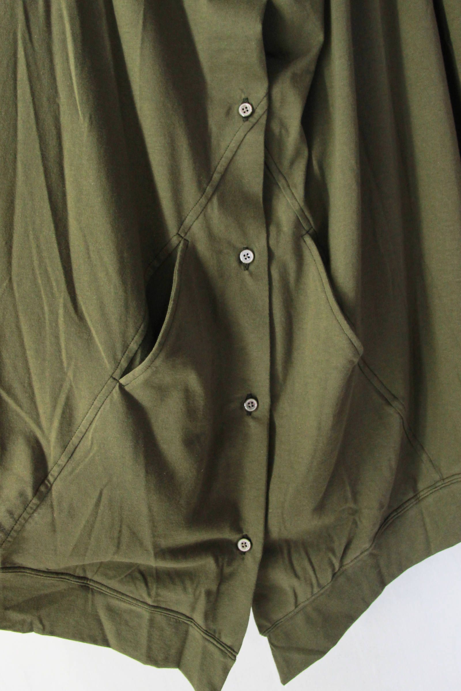袖は半端丈なので、季節の変わり目の気温の変化に最適です。ポケットはボタン付近につくので、ボタンを開けて着た際に丁度良い位置にきます。