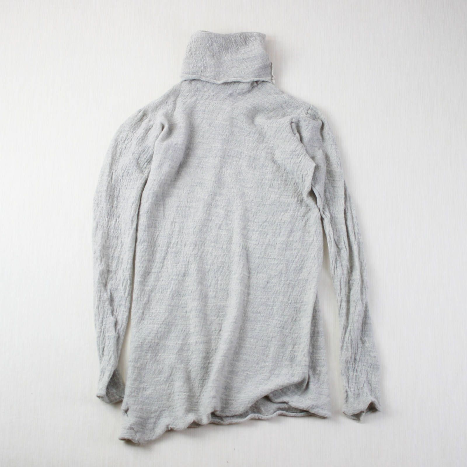 RYUの定番アイテム"washable wool gauze"シリーズより、タートルネックの登場。ウール100%のガーゼ生地を縮絨("しゅくじゅう"薬品などを使用して洗い、生地に極端な圧縮加工を施すこと)加工をした、とっても暖かなニットアイテムです。