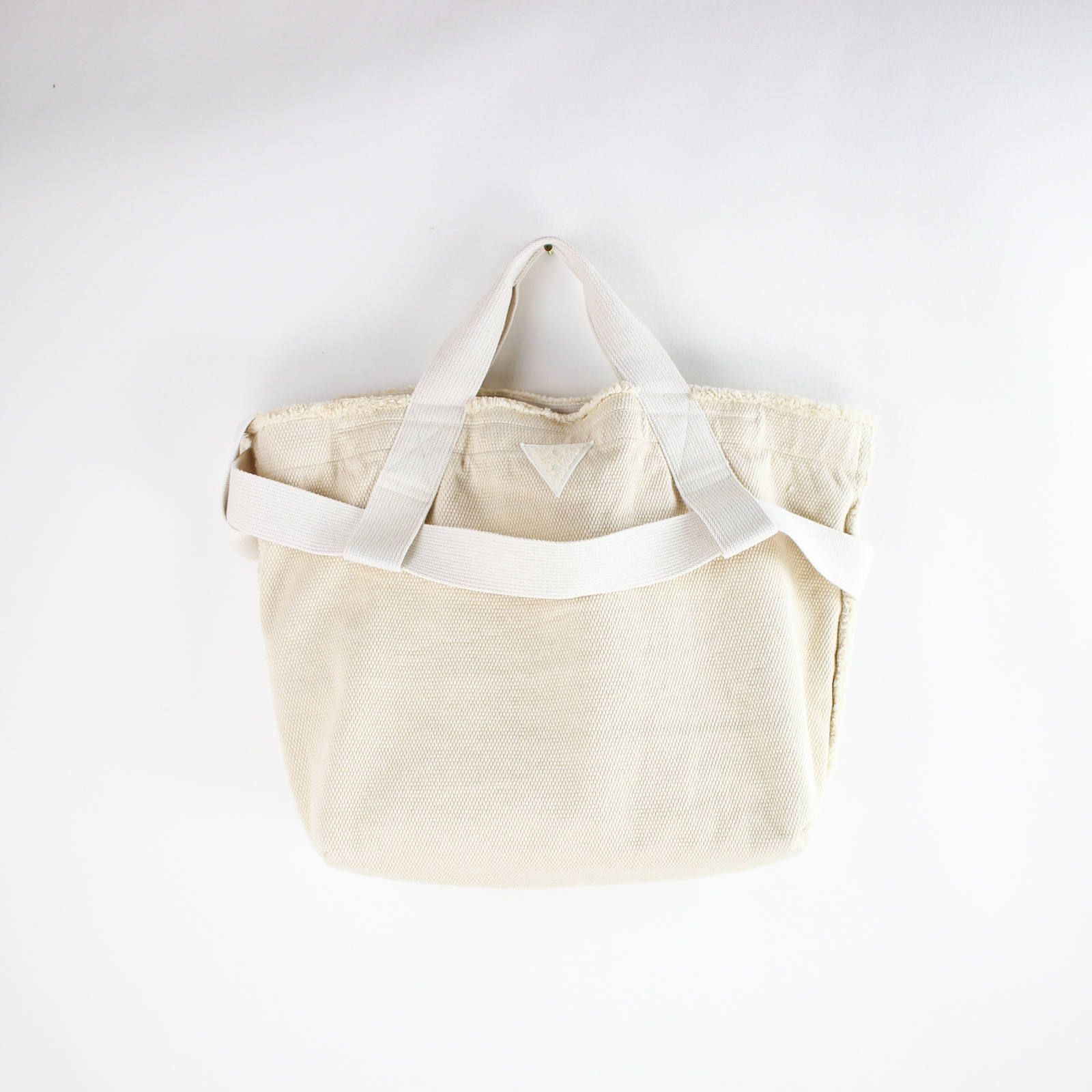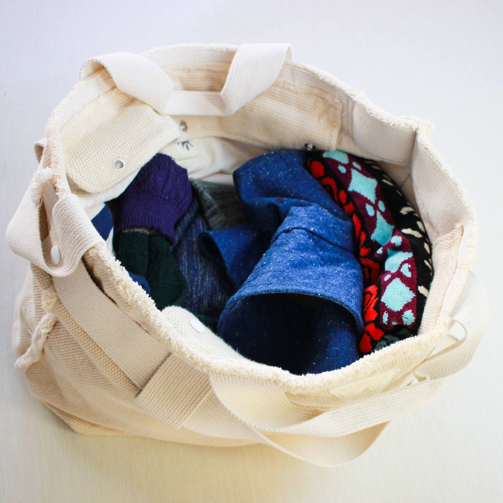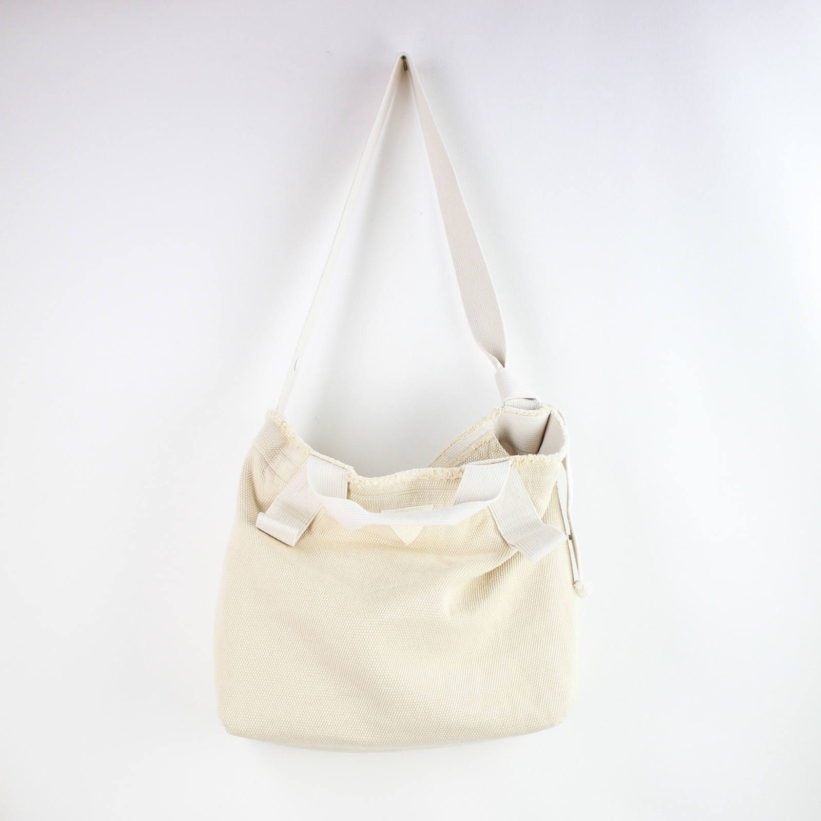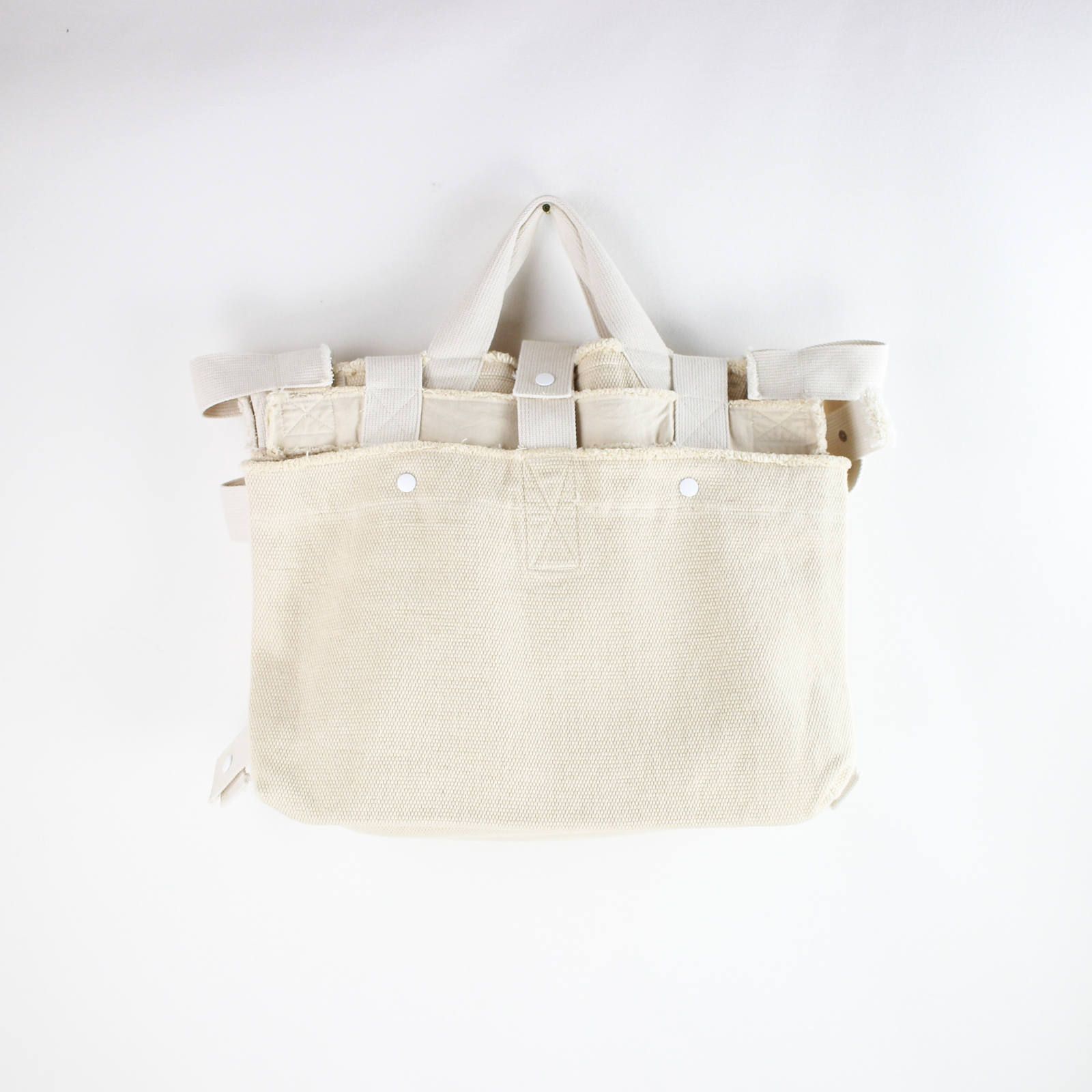 ベースとなるのはトートバッグ。ショルダー紐を本体に添わせて固定すれば手提げ鞄、ショルダー紐を端にホックで固定すればショルダーバッグとして使用出来ます。