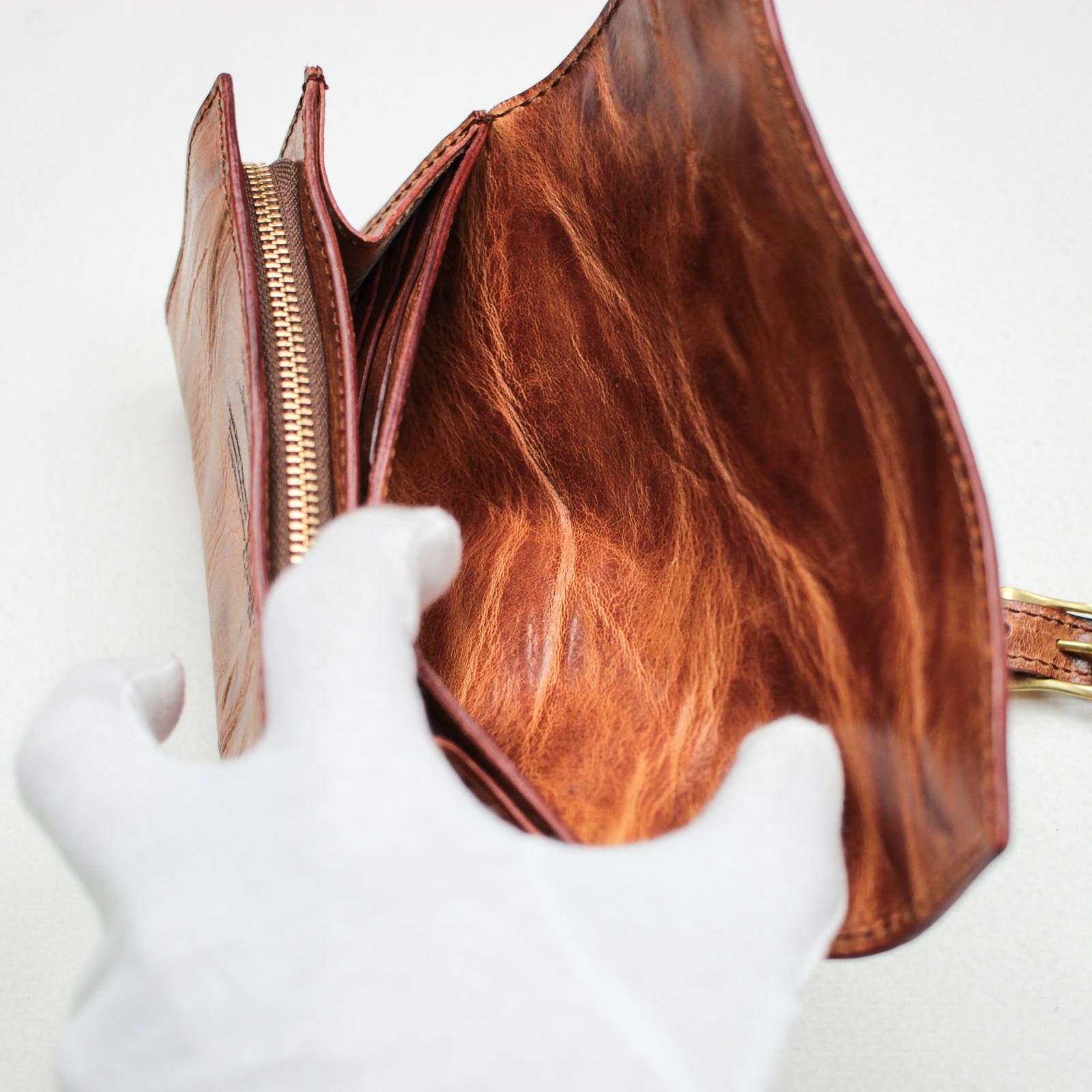 ベルトはバックルを外さなくても良いホック仕様。サッと開けてパッと閉めれます。風合い抜群な牛革(デイトナ)の表情も最高にカッコイイです!是非、名作財布をその目で確かめてみてください。