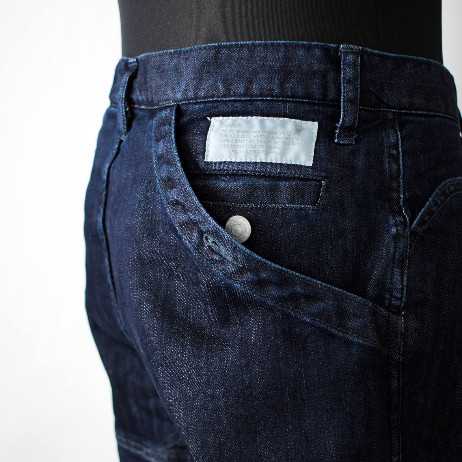厚すぎず薄すぎずの程よい分厚さの9.5ozデニムを使用。ストレッチ入りのデニム素材は、汗を吸い上げ急速に発散し、快適な着心地を実現するCOOLMAXを採用し、非常に心地よい履き心地の仕上がりです。
