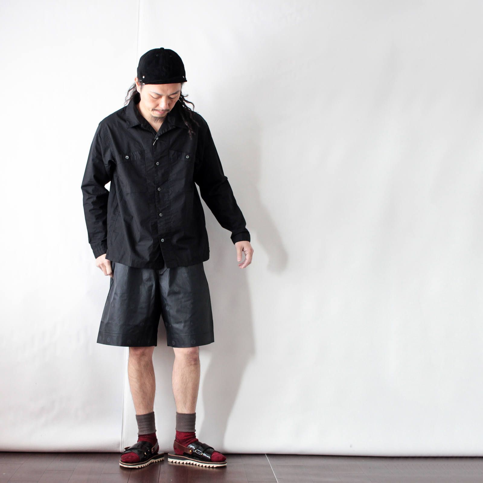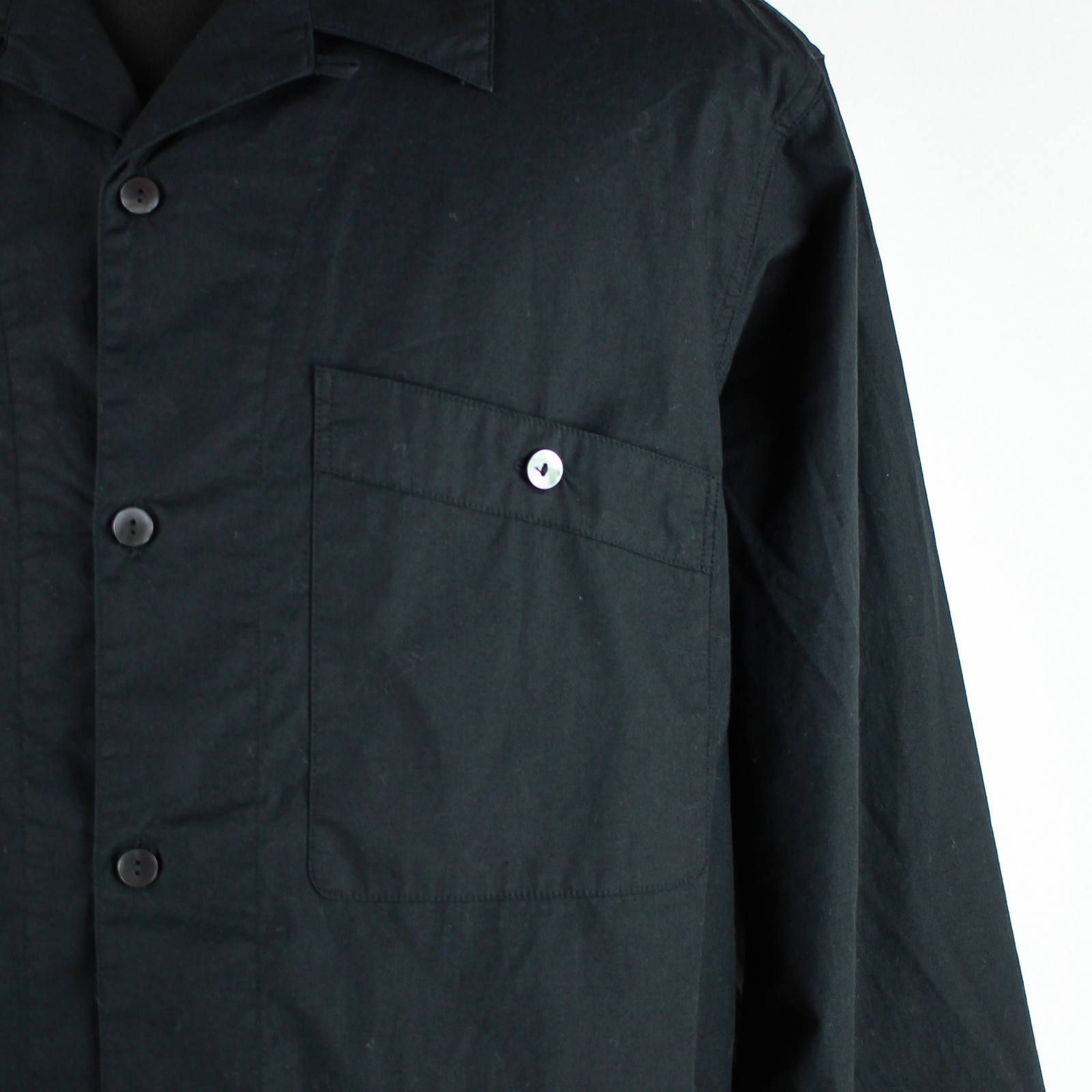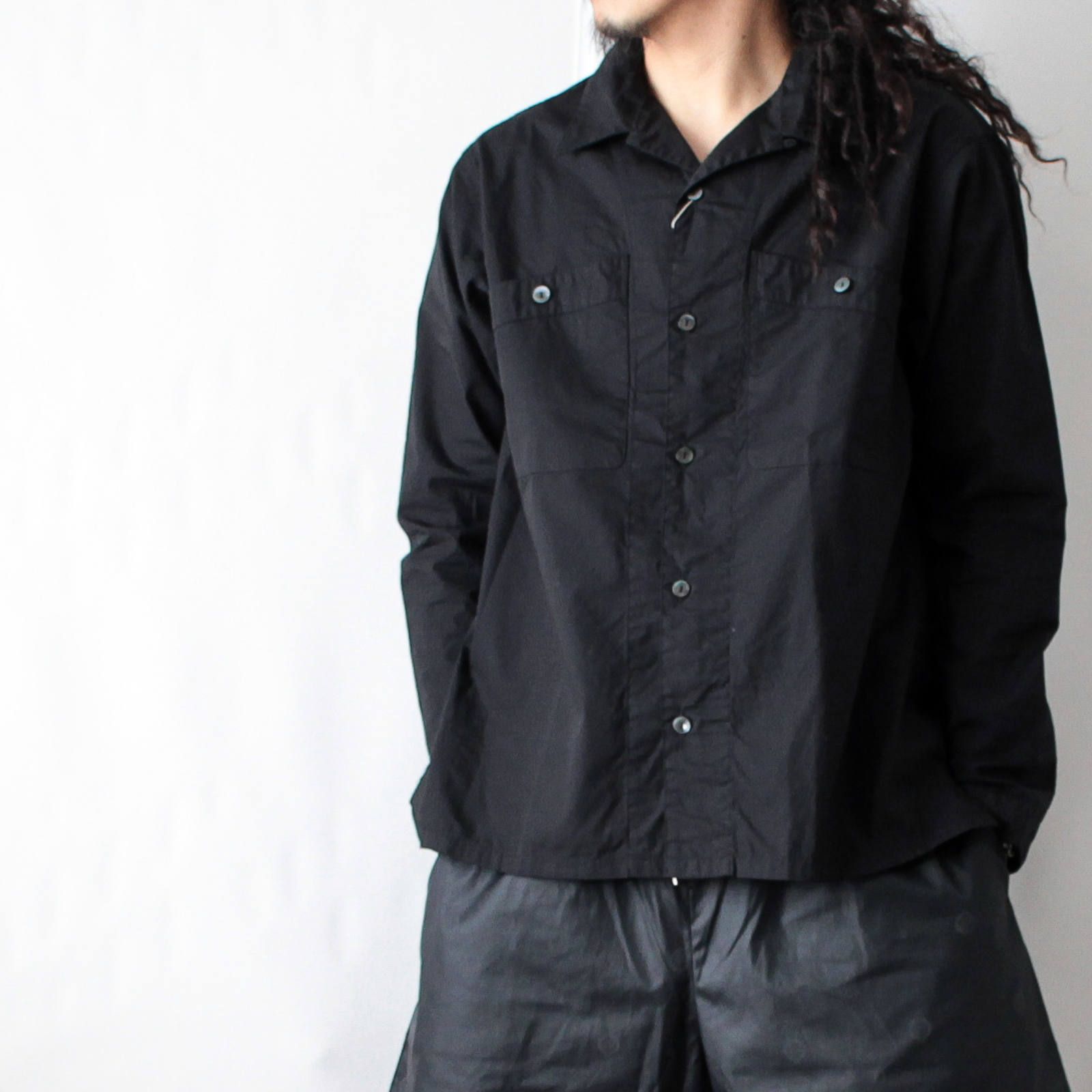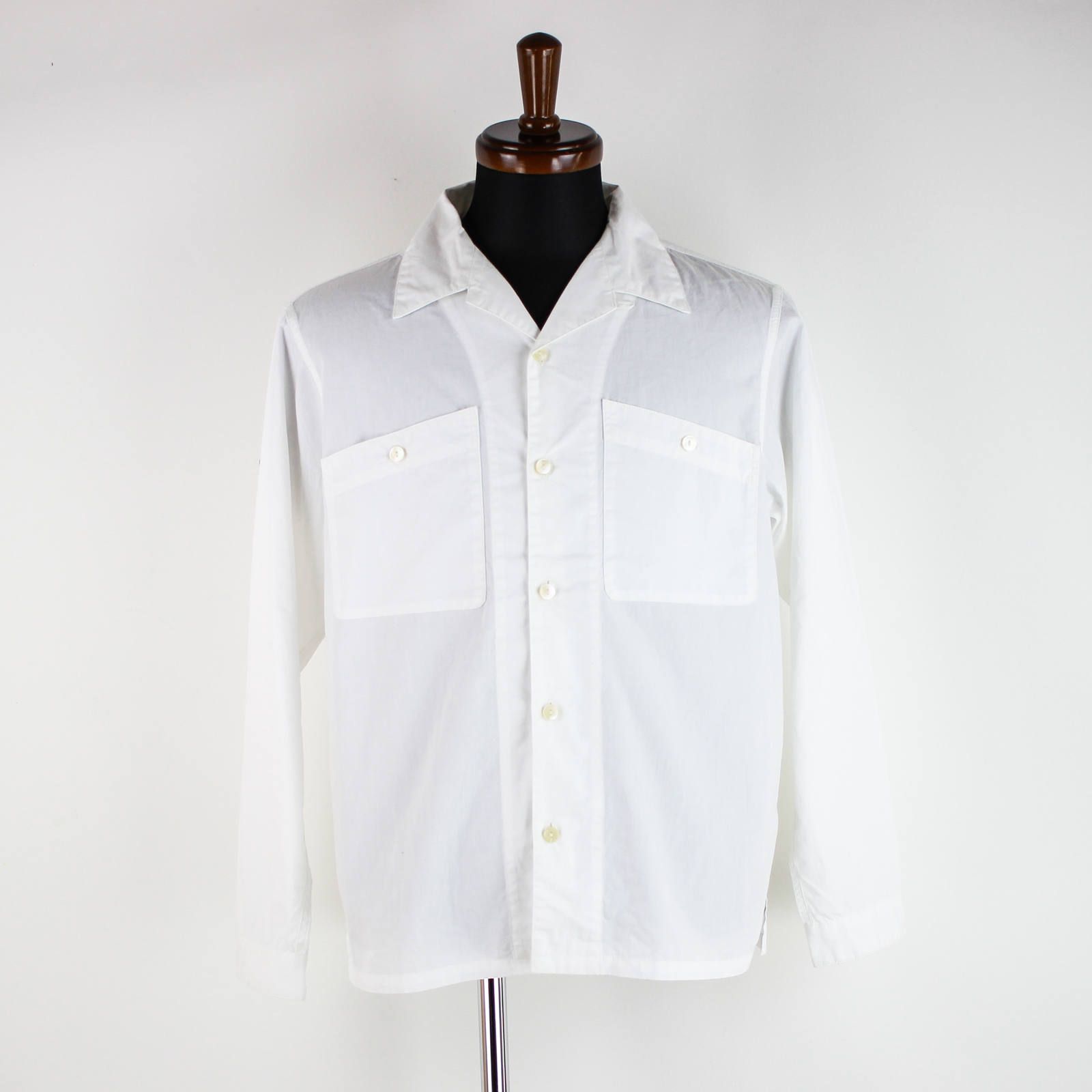 VOOの通常のシャツよりも少し身幅の広い設計で、裾は真っ直ぐなBOXタイプのシルエット。胸ポケットの形が特徴的で、アウターの要素も垣間見えるデザインです。