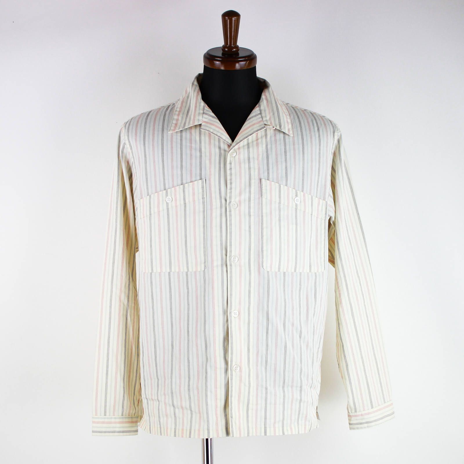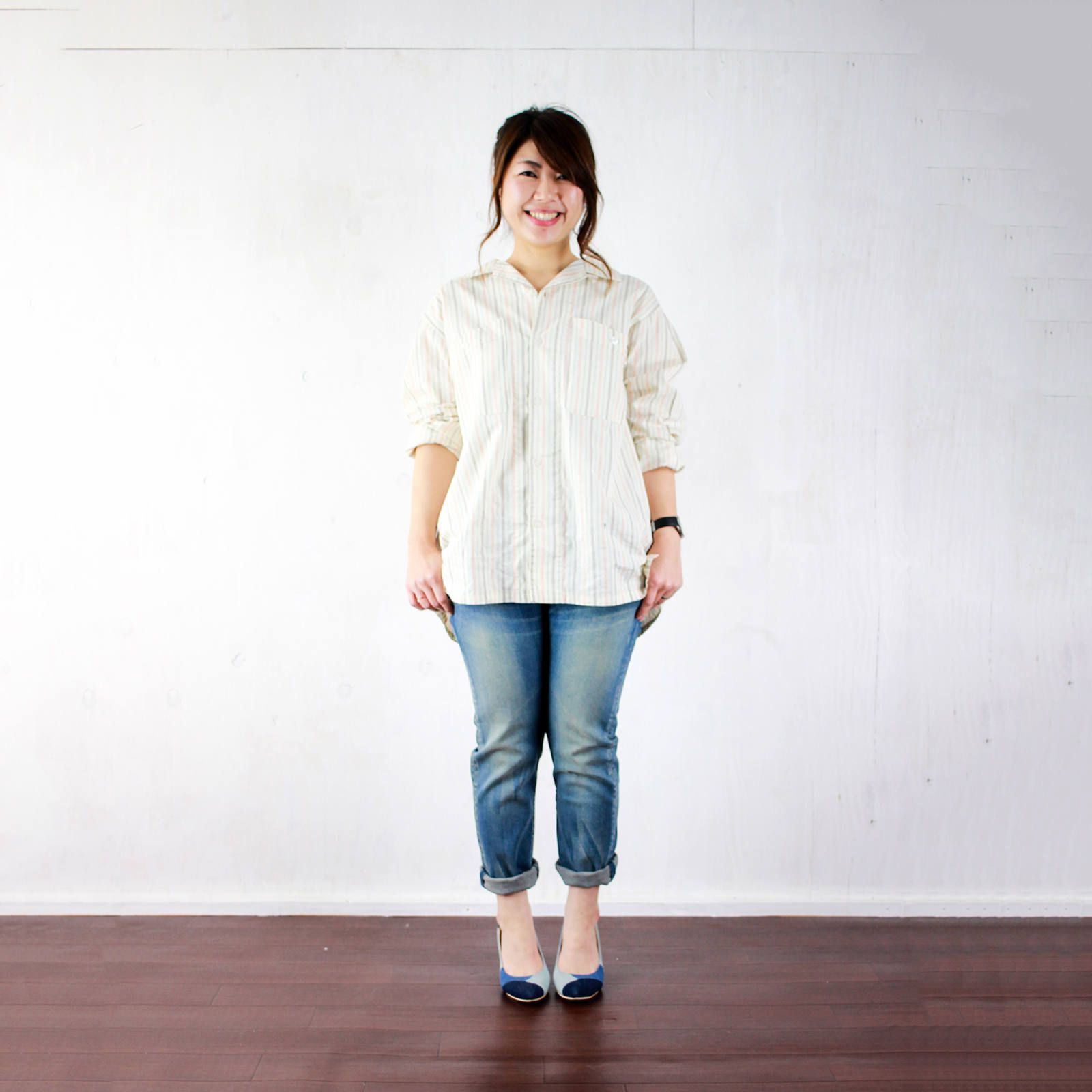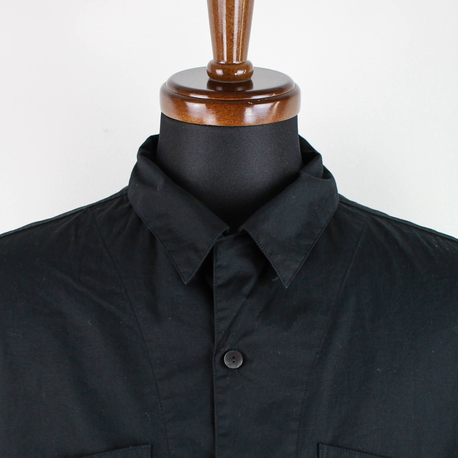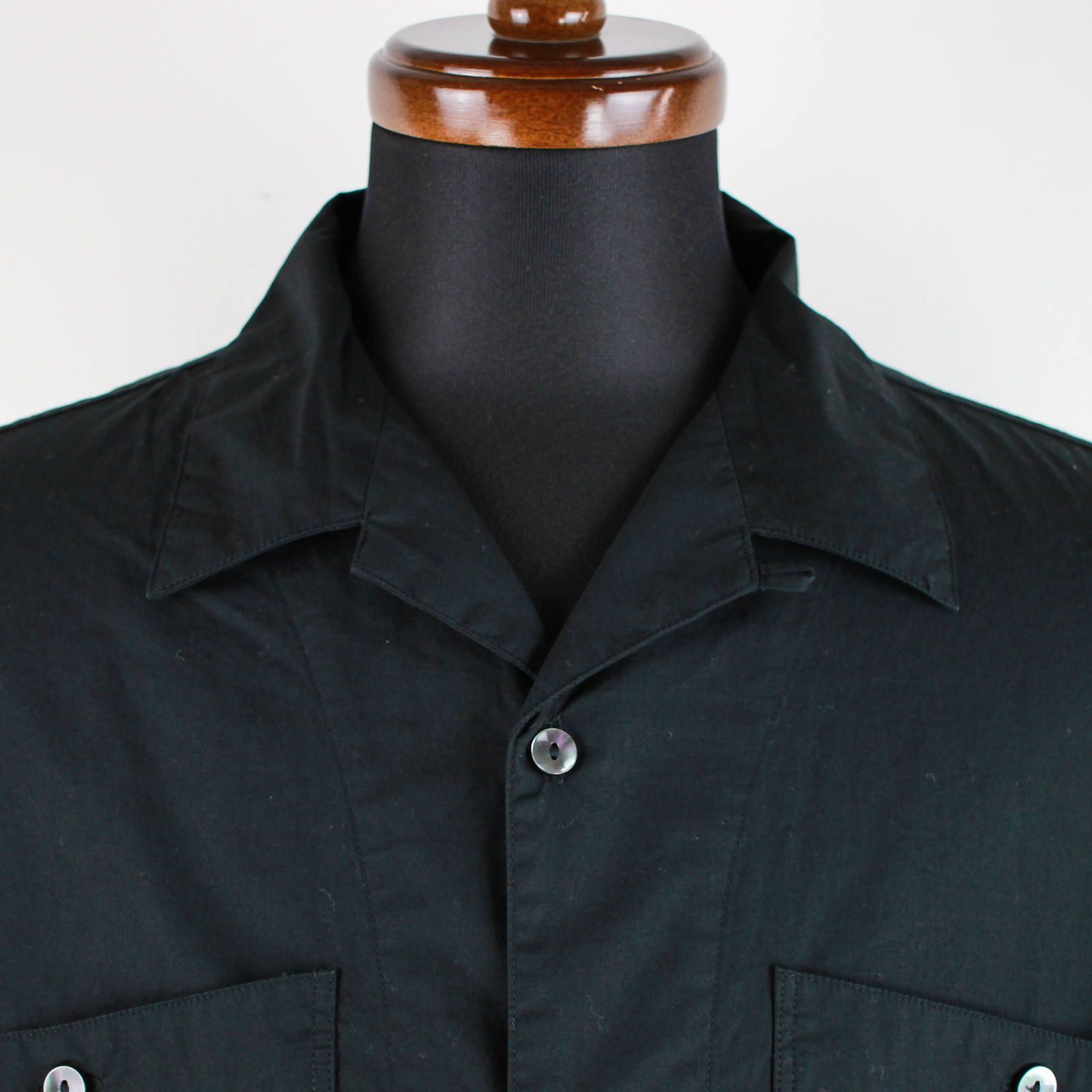 VOOの通常のシャツよりも少し身幅の広い設計で、裾は真っ直ぐなBOXタイプのシルエット。胸ポケットの形が特徴的で、アウターの要素も垣間見えるデザインです。