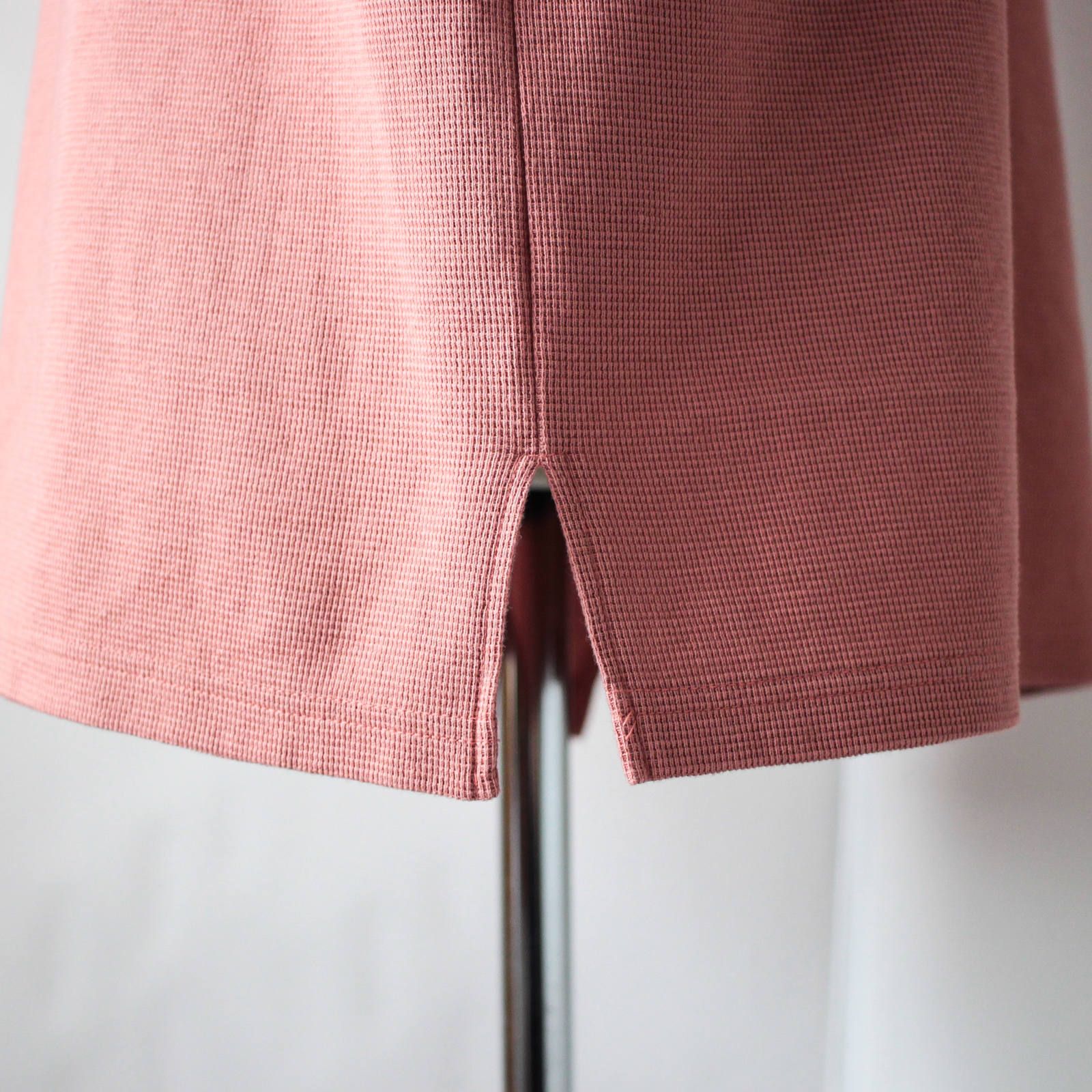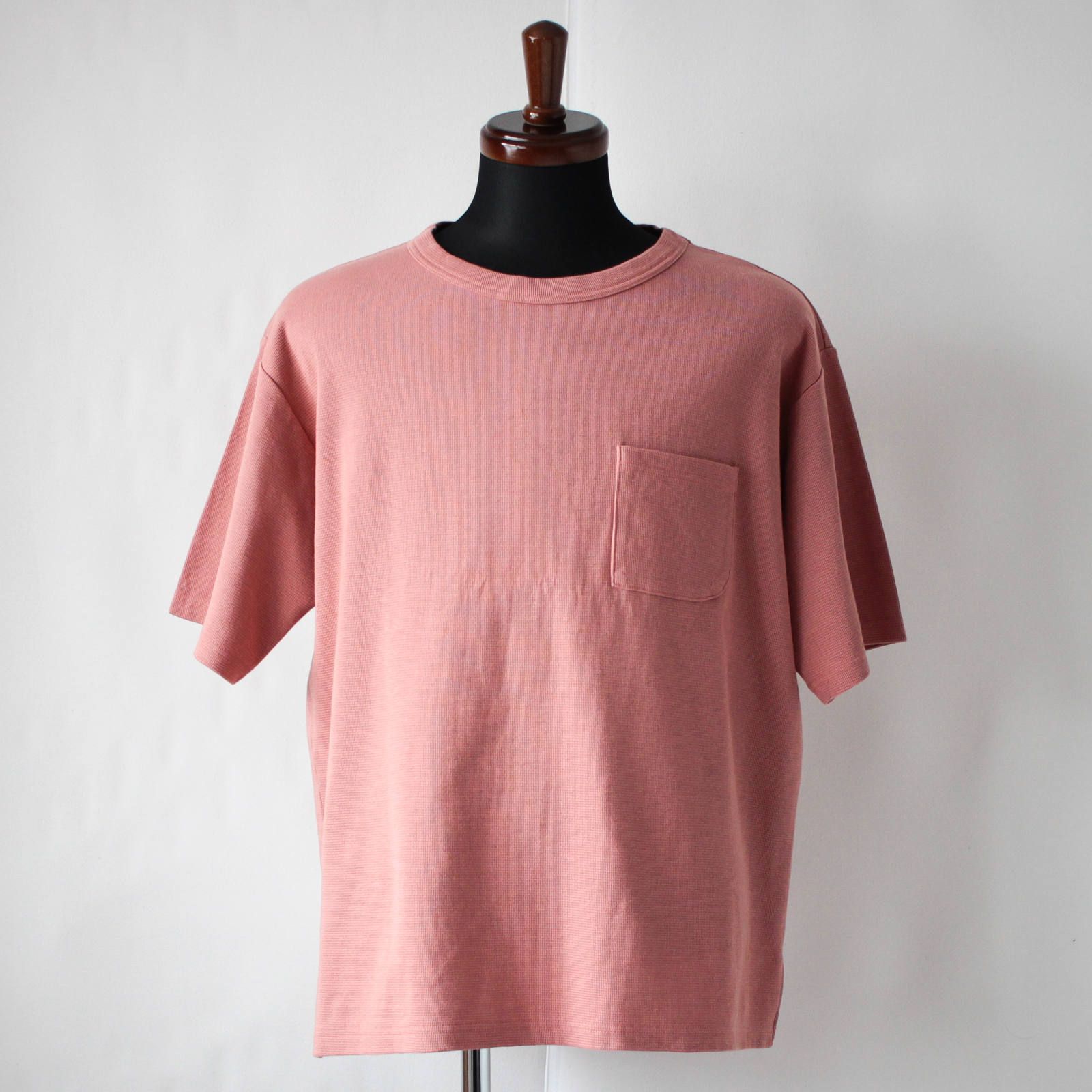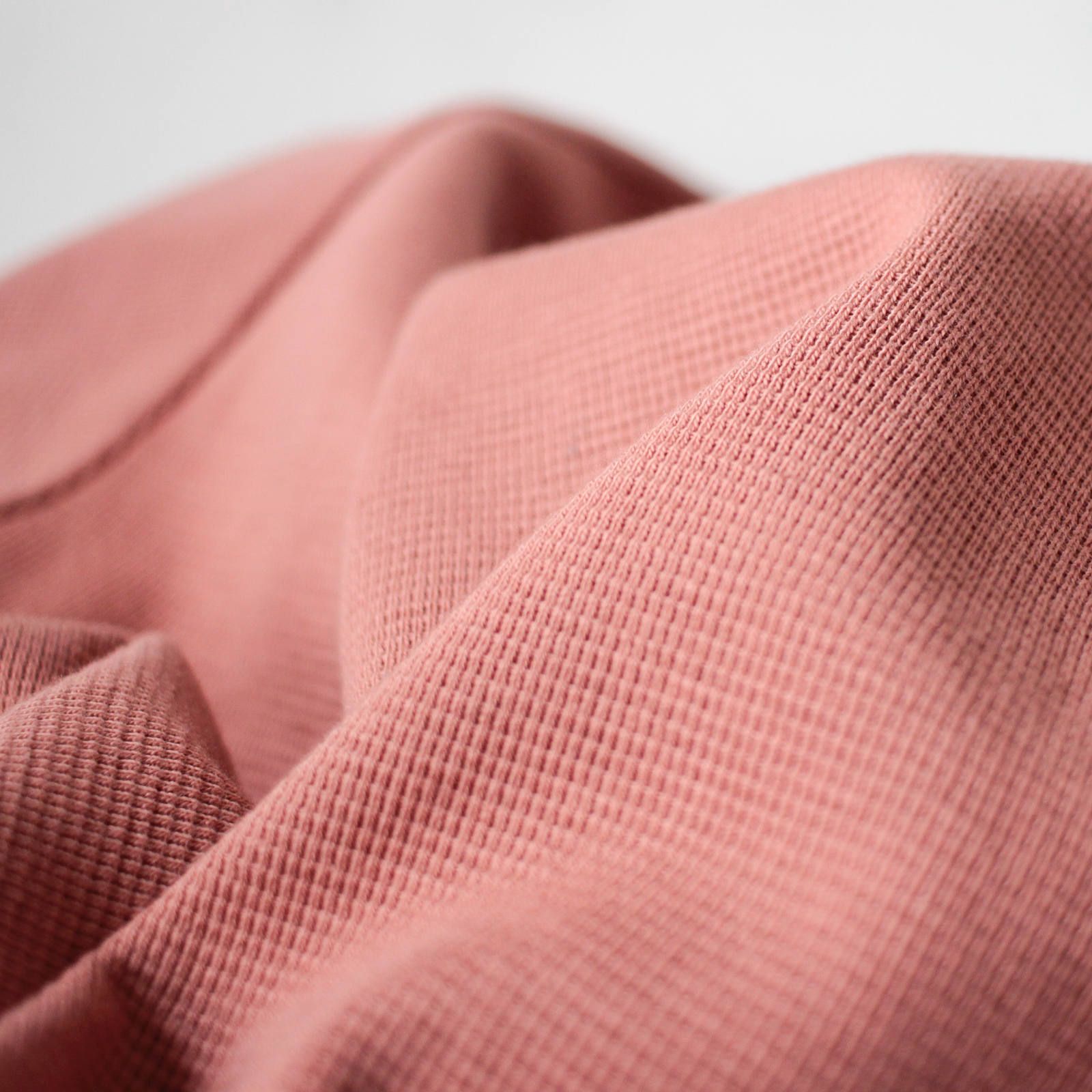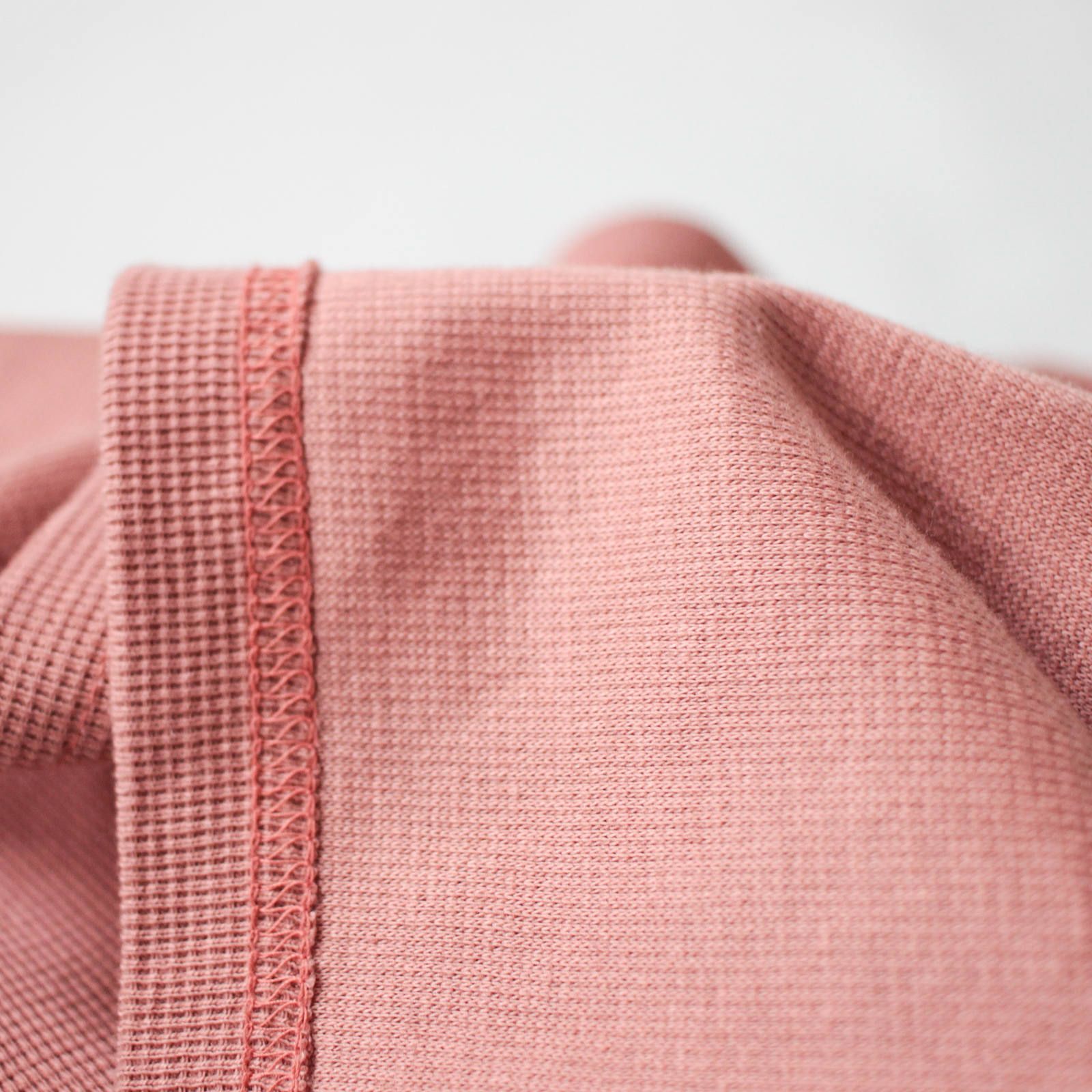 表面はニットの様な表情。よくあるサーマル生地よりも細かな編み目と、型崩れしにくい程よい肉厚。この肉感は厚過ぎないので着心地もGOODです!