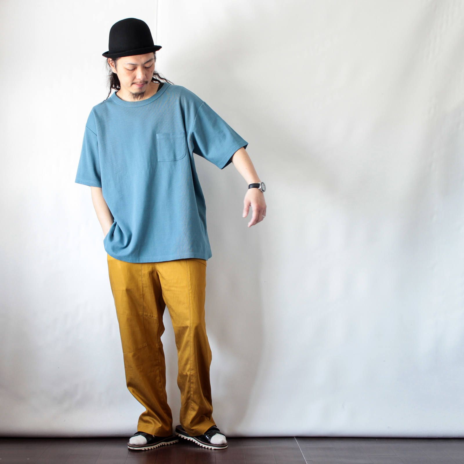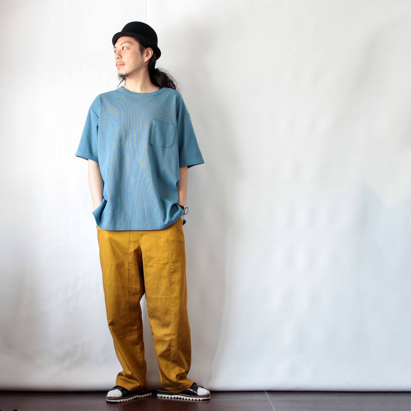 シンプルなデザインですが、生地の表情とシルエットで存在感のあるアイテム。ショーツやデニムはもちろん、スラックスなどにも合わせて楽しんで頂きたいですね♪