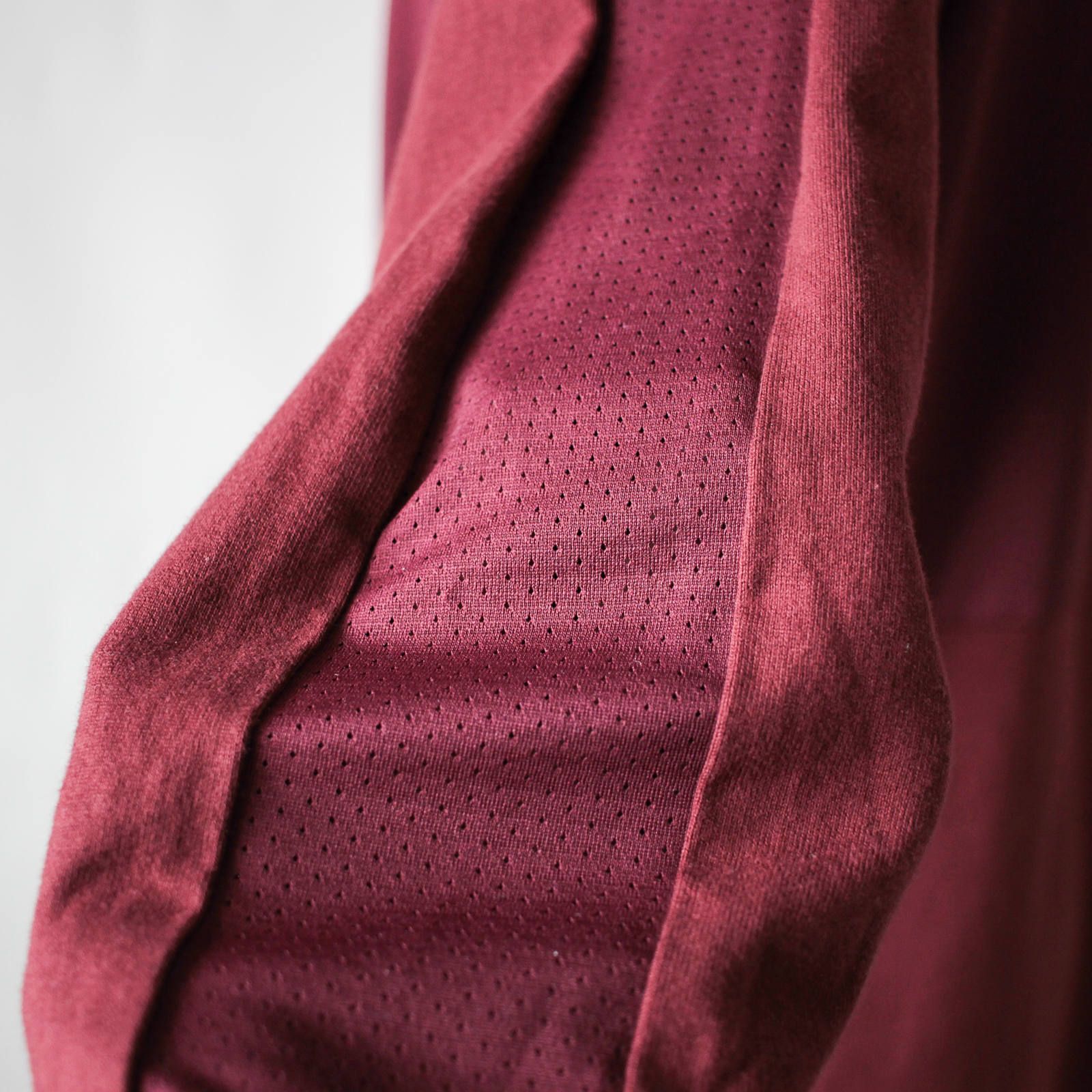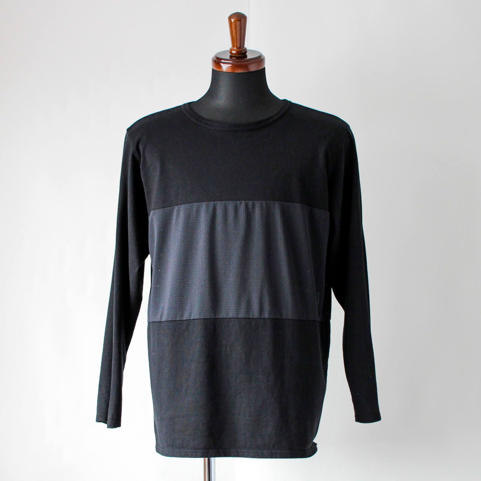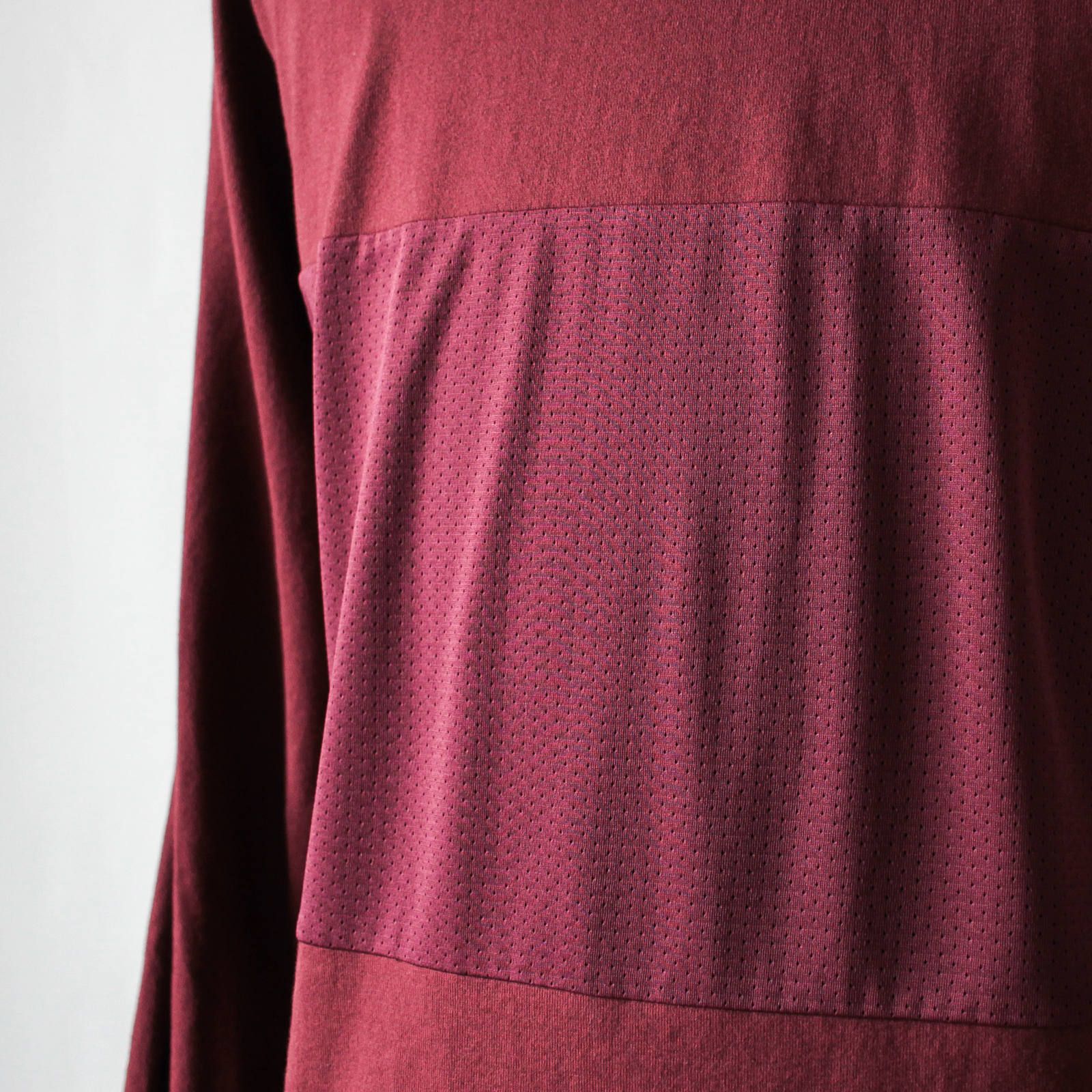 胸と袖にメッシュ素材を配置したロンT。このメッシュ切り替えがこの時期リリースのキモです!メッシュなんで風通しが抜群。そして優しい肌当たり。長袖ですが快適に着用できます!(半袖に比べるとやはり少し暑いですが…)