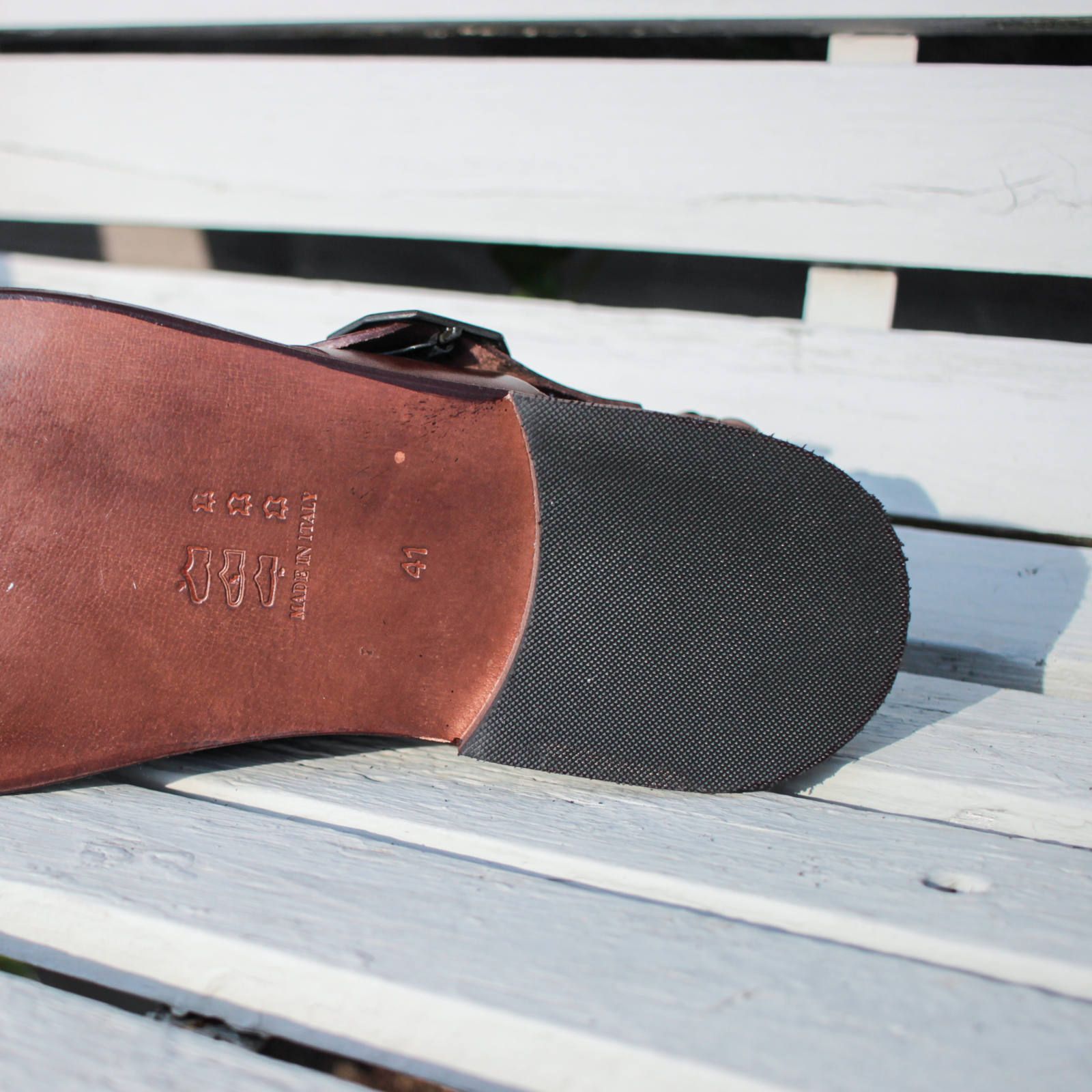 このレザーサンダルの特徴は、製品後にオーバーダイ(後染め)を施す独自の手法で仕上げられ、1点1点仕上がりの濃淡が微妙に異ること。本当に微妙な違いなんですが、これが天然の革とEDER社の"らしさ”としてお楽しみ頂けると嬉しいです!