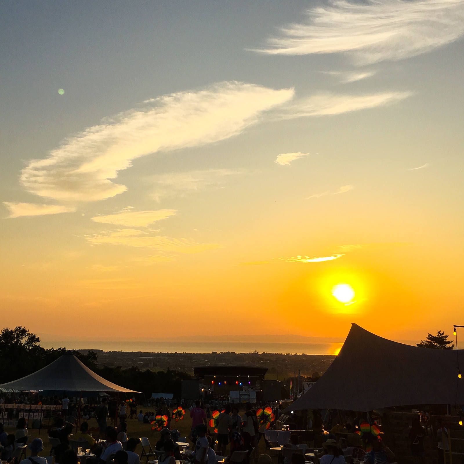 そしてホットフィールドの目玉と言えばこの夕日!夕焼け!メインステージのバックに沈む夕日はなんとも言えない美しい光景です!ぜひ生で見ていただきたい景色。