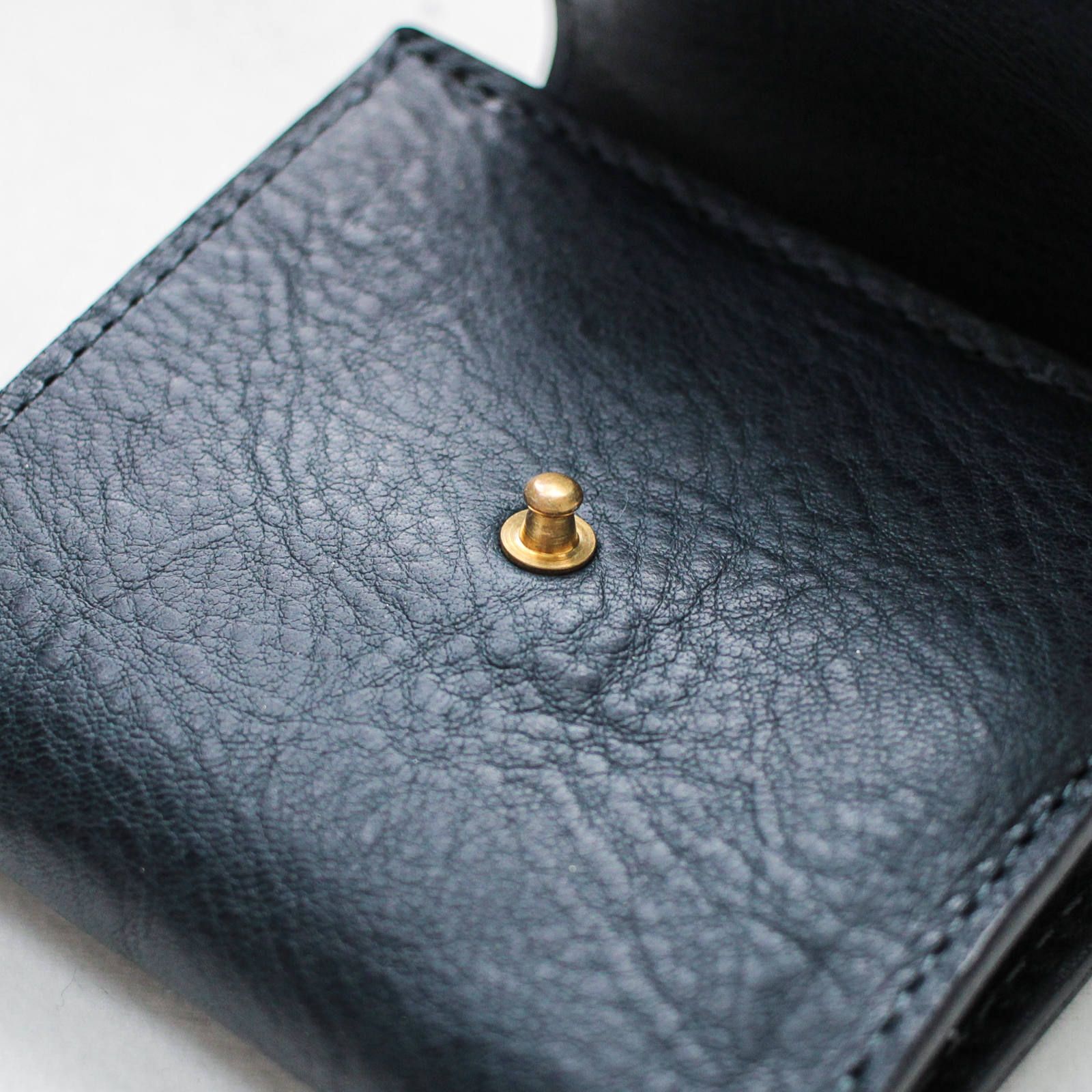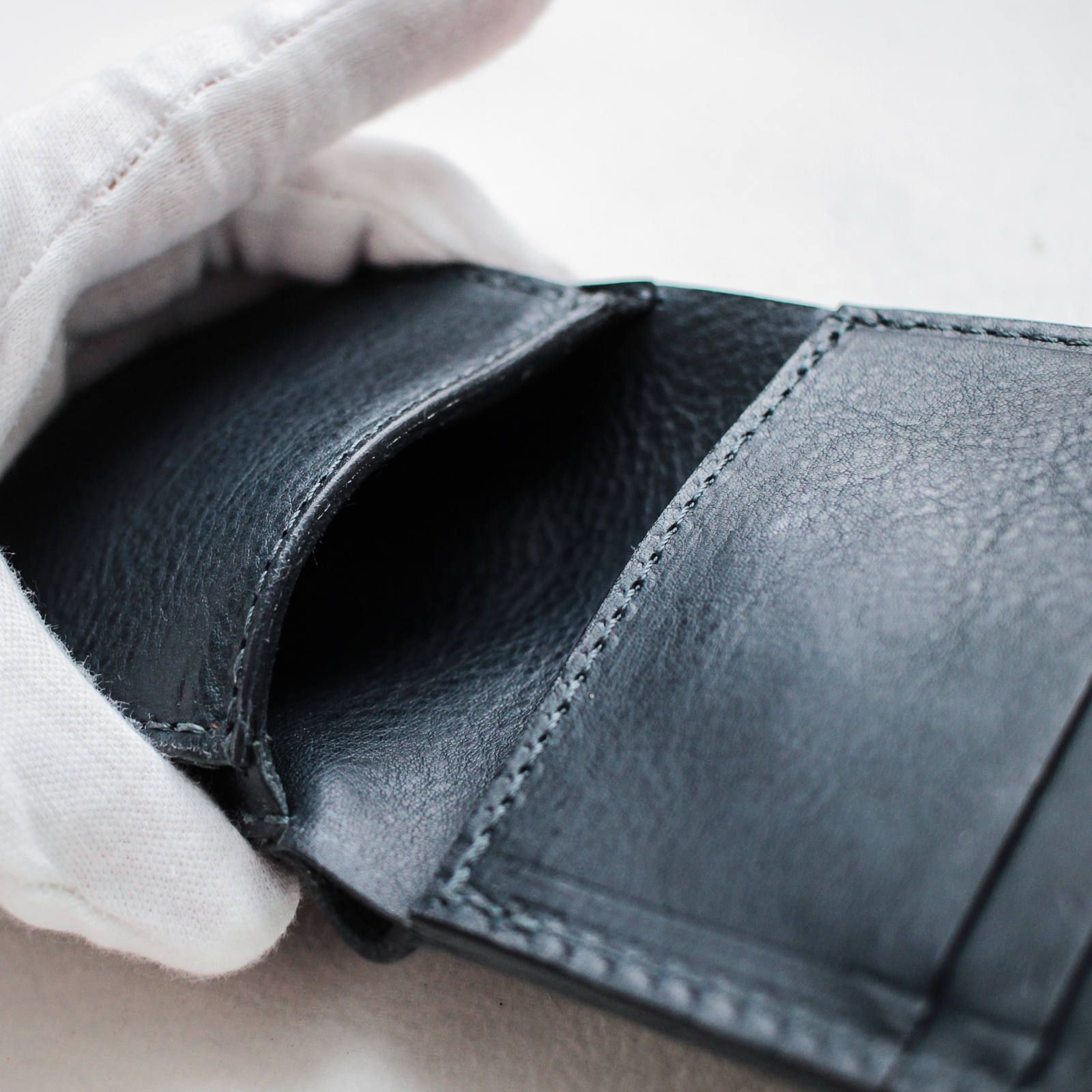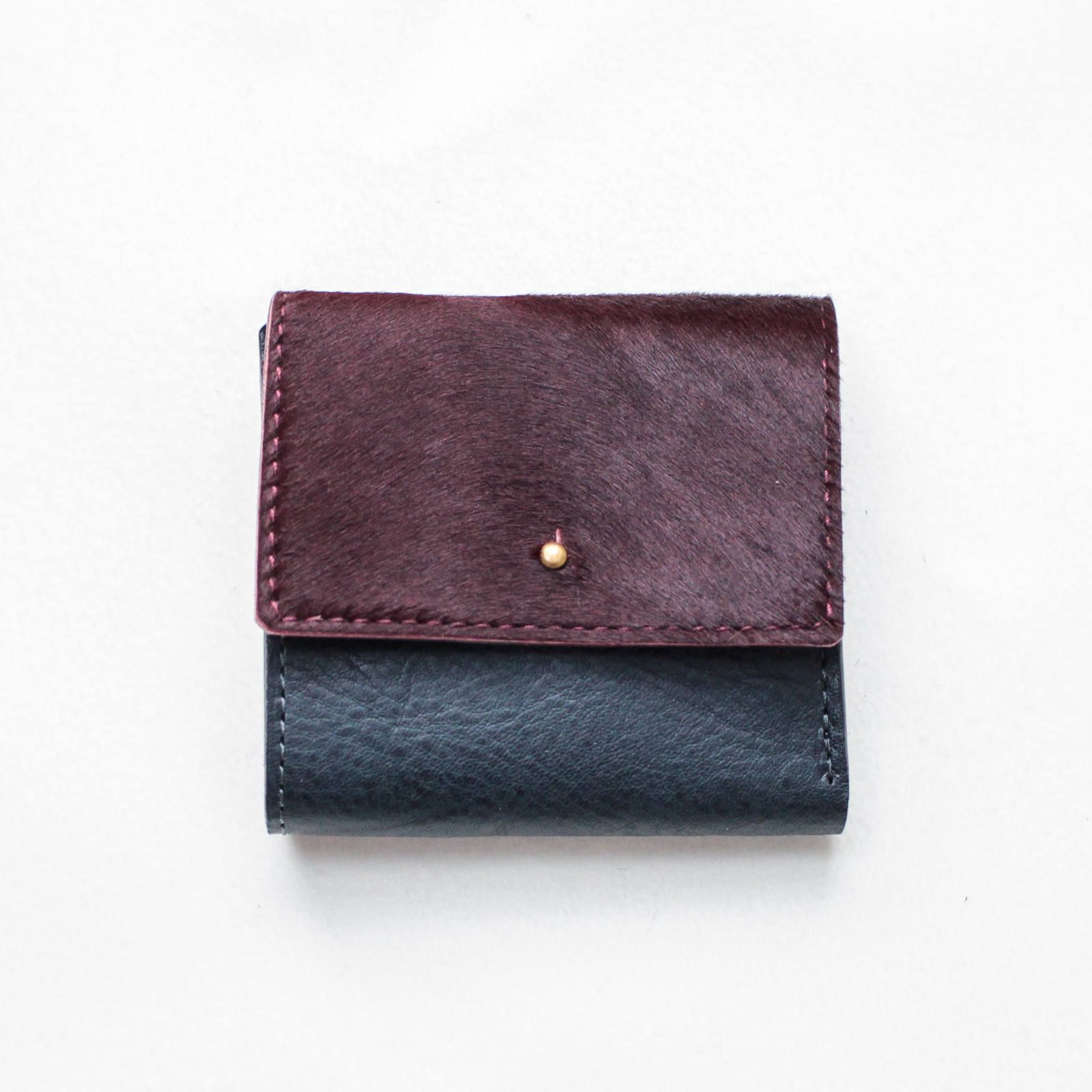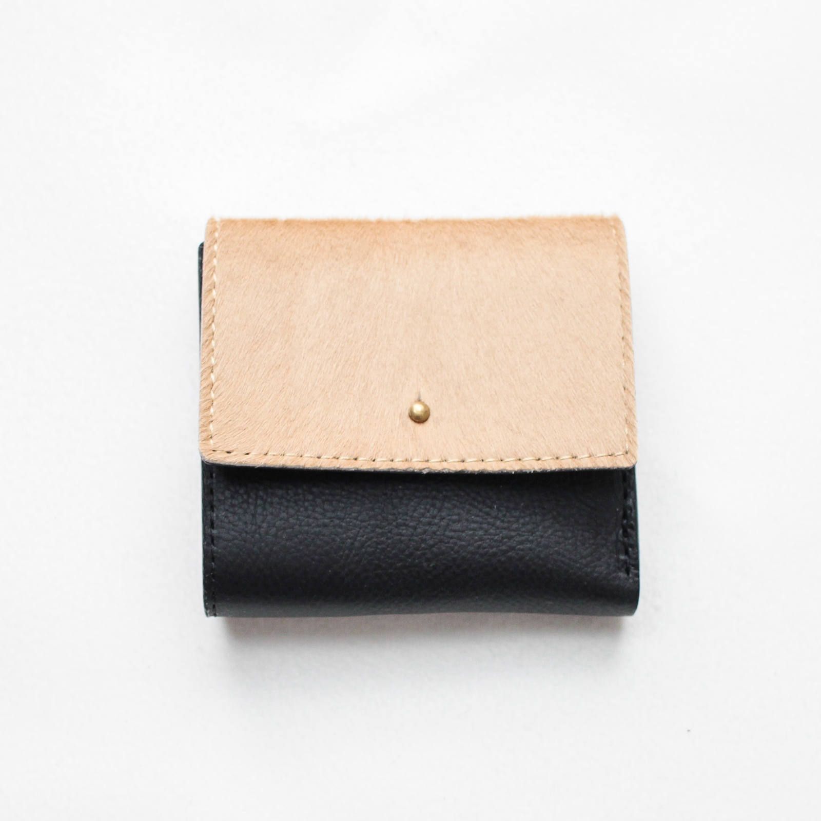 ミニマムなサイジングとコントラストが魅力。【saranam : ハラコギボシ二つ折り財布】