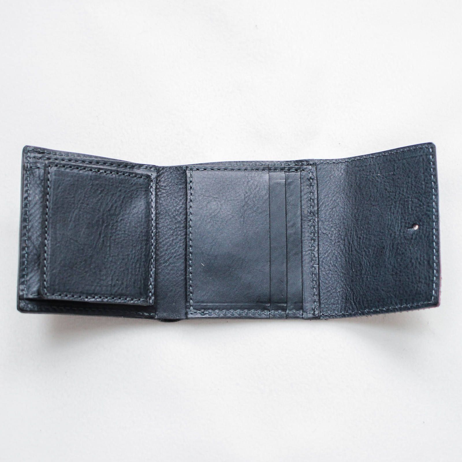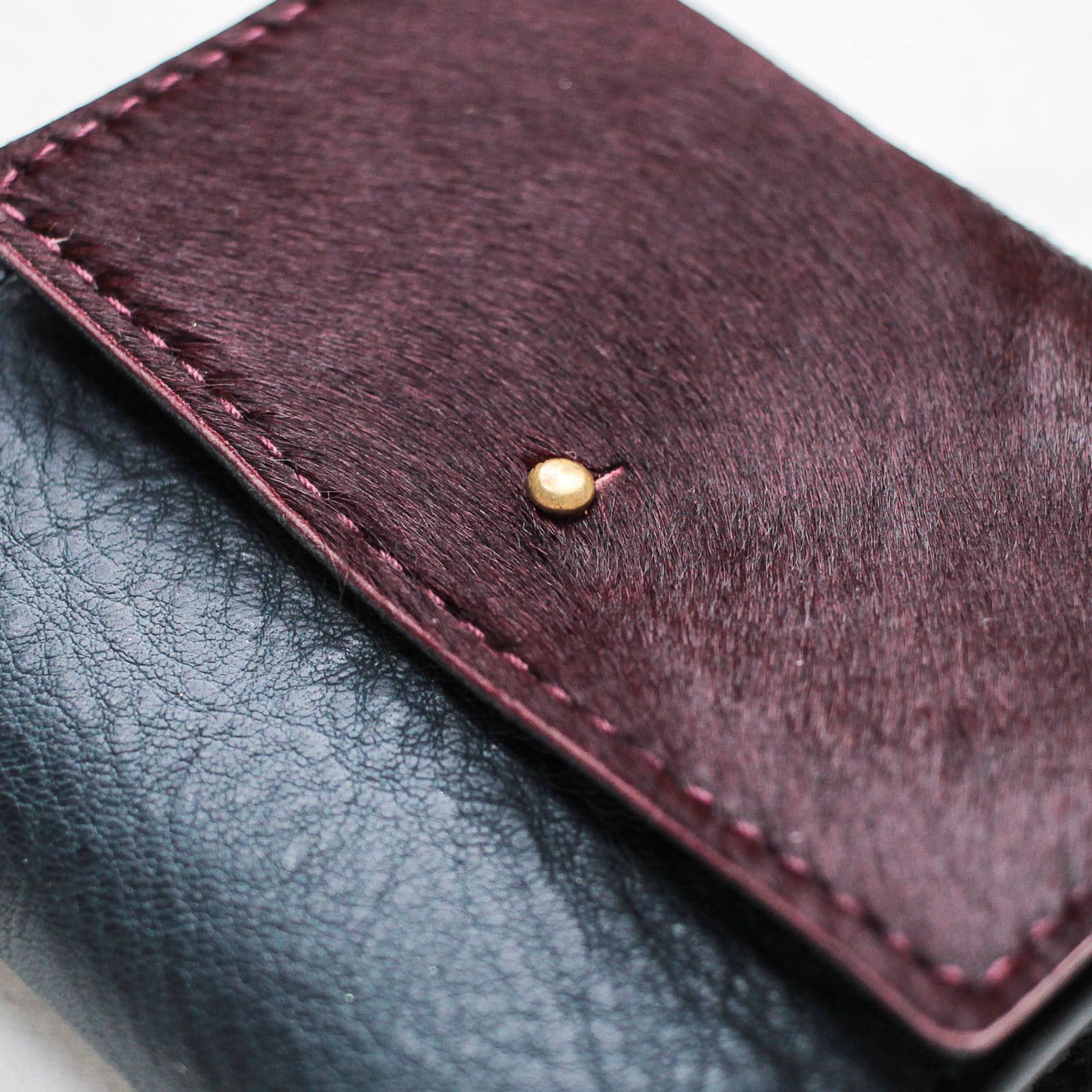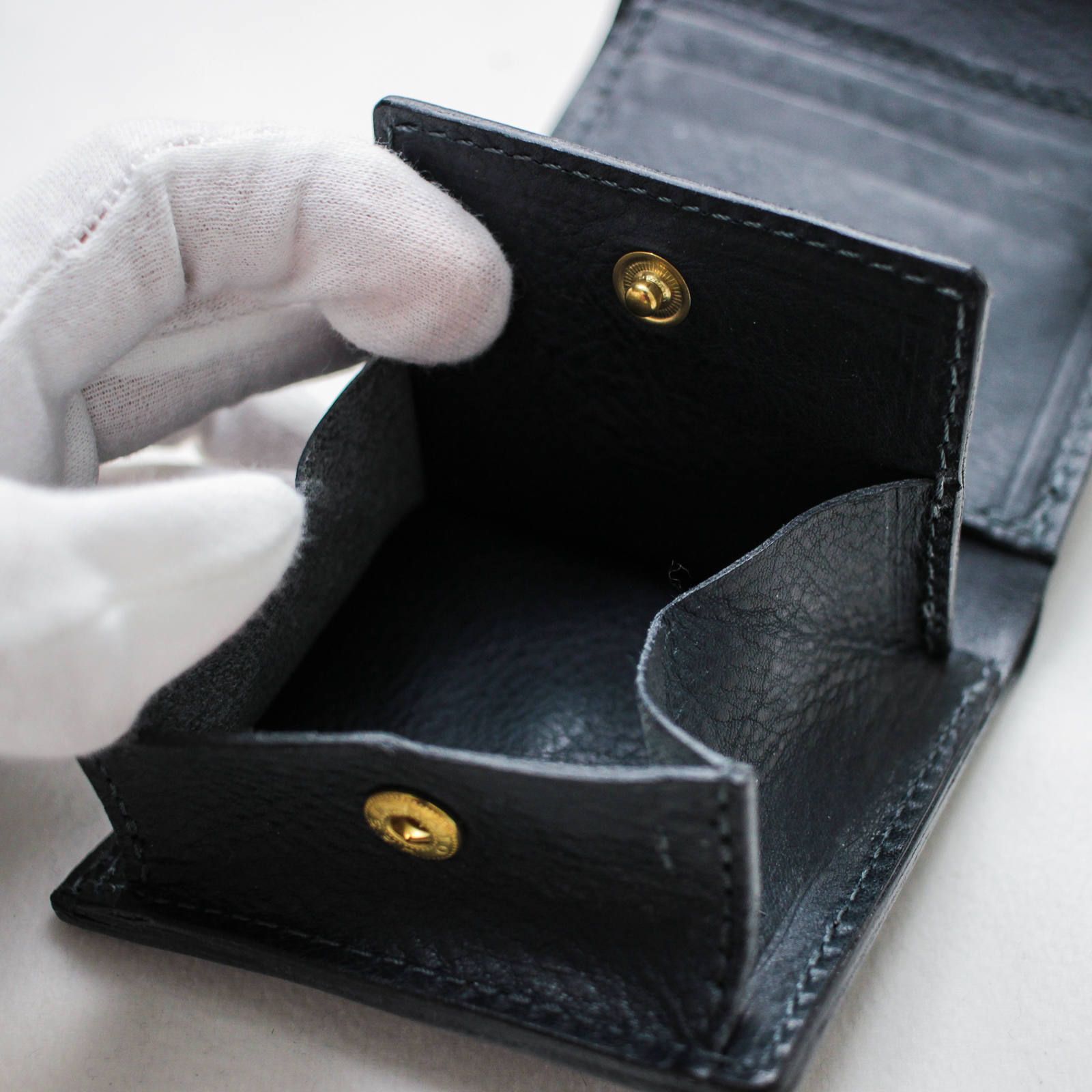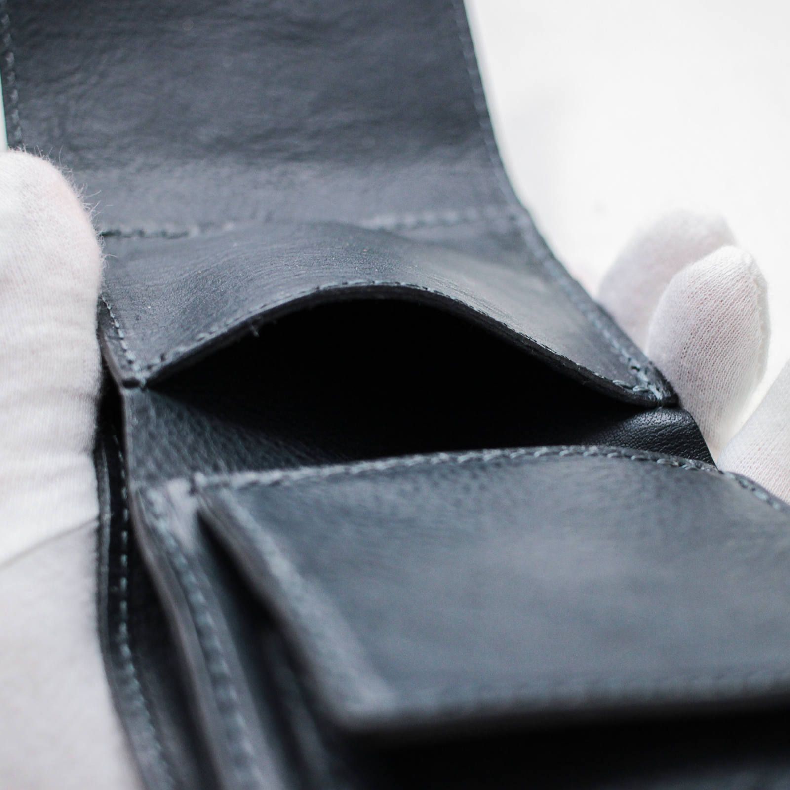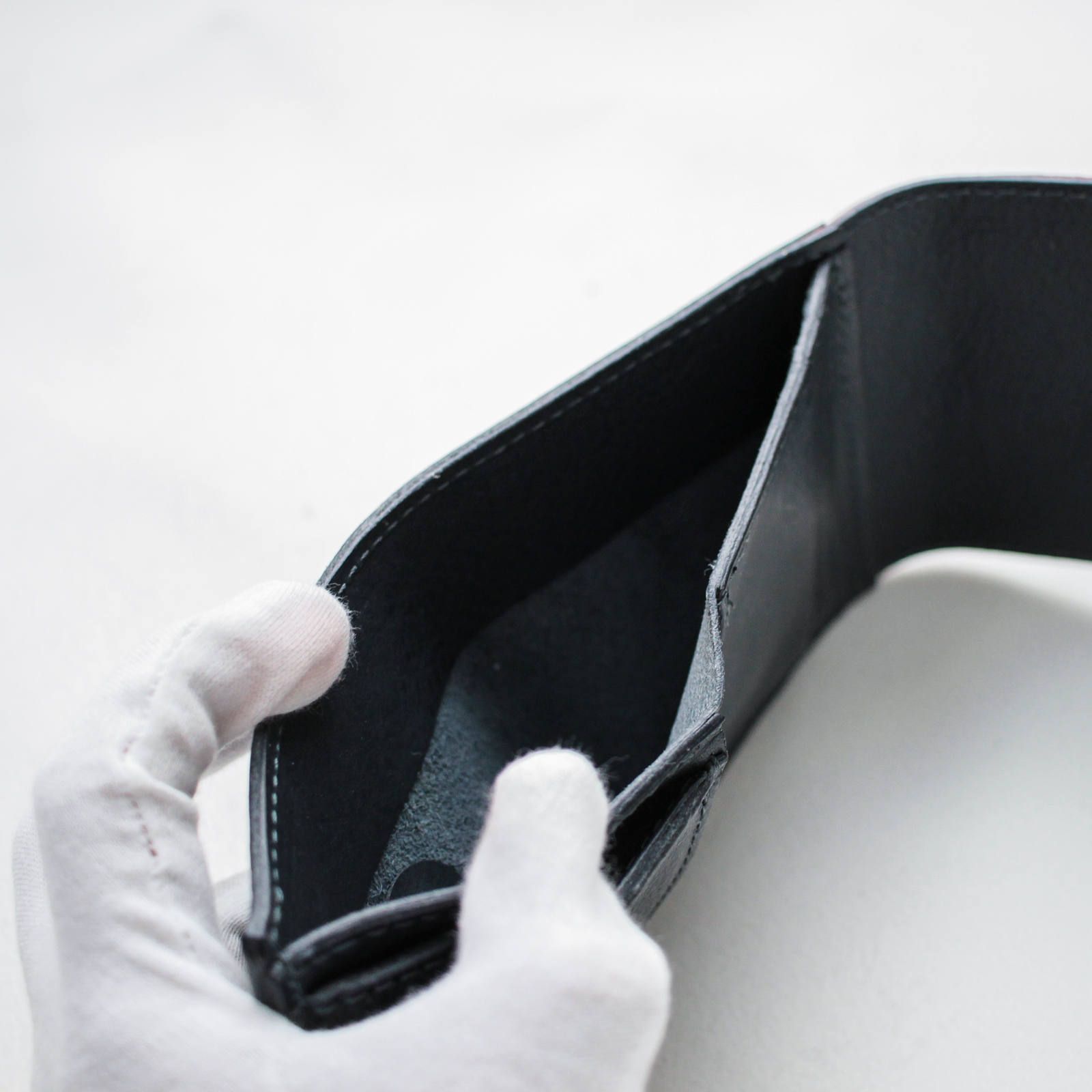 ミニマムなサイジングとコントラストが魅力。【saranam : ハラコギボシ二つ折り財布】