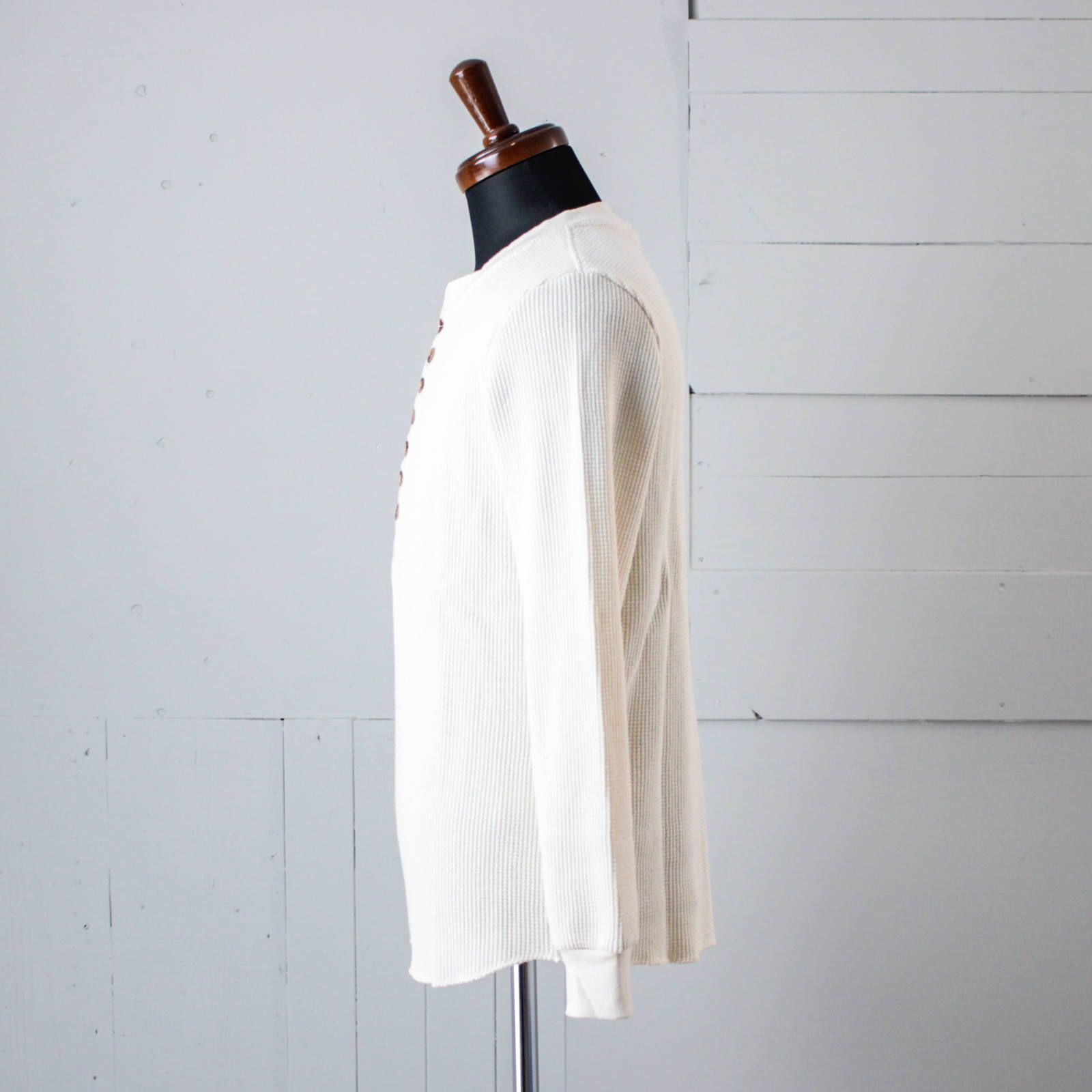 多ボタンデザインがお洒落なワッフルロンT