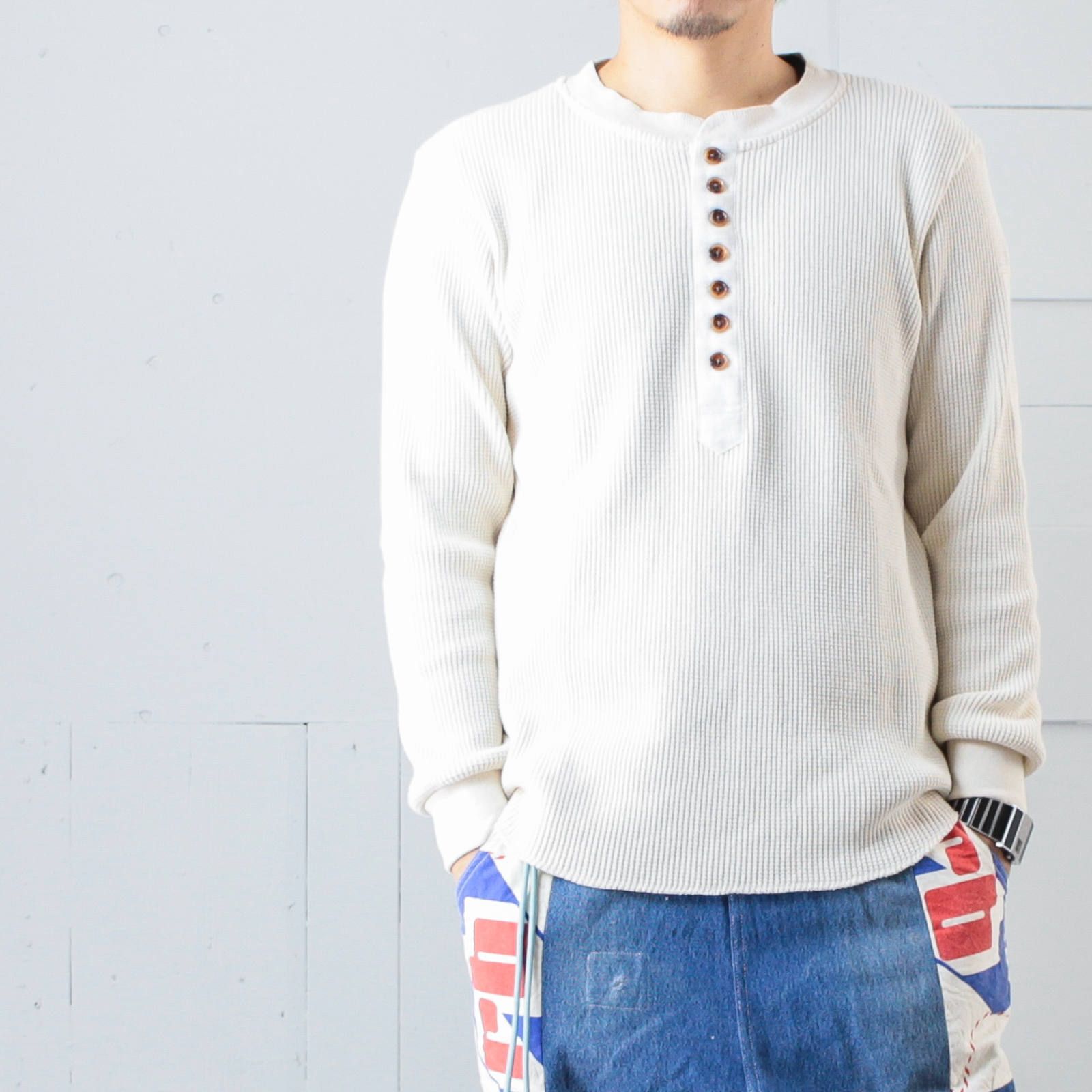 シンプルな中に光るセンス【chloro : ドライワッフルヘンリーTシャツ】