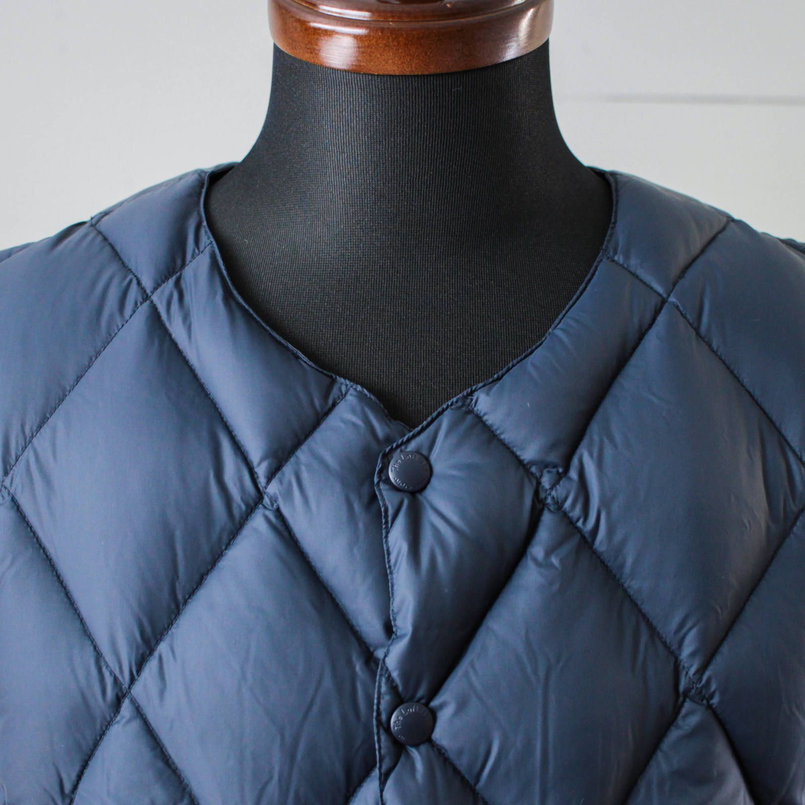 通常のインナーダウンよりも羽毛量を多くし、アウターとしても活躍するボリューム感のダウンベスト。