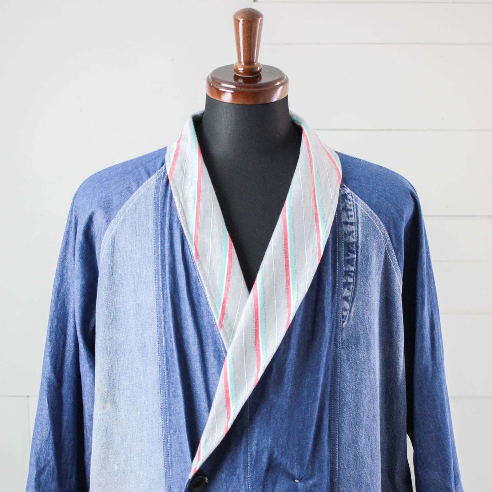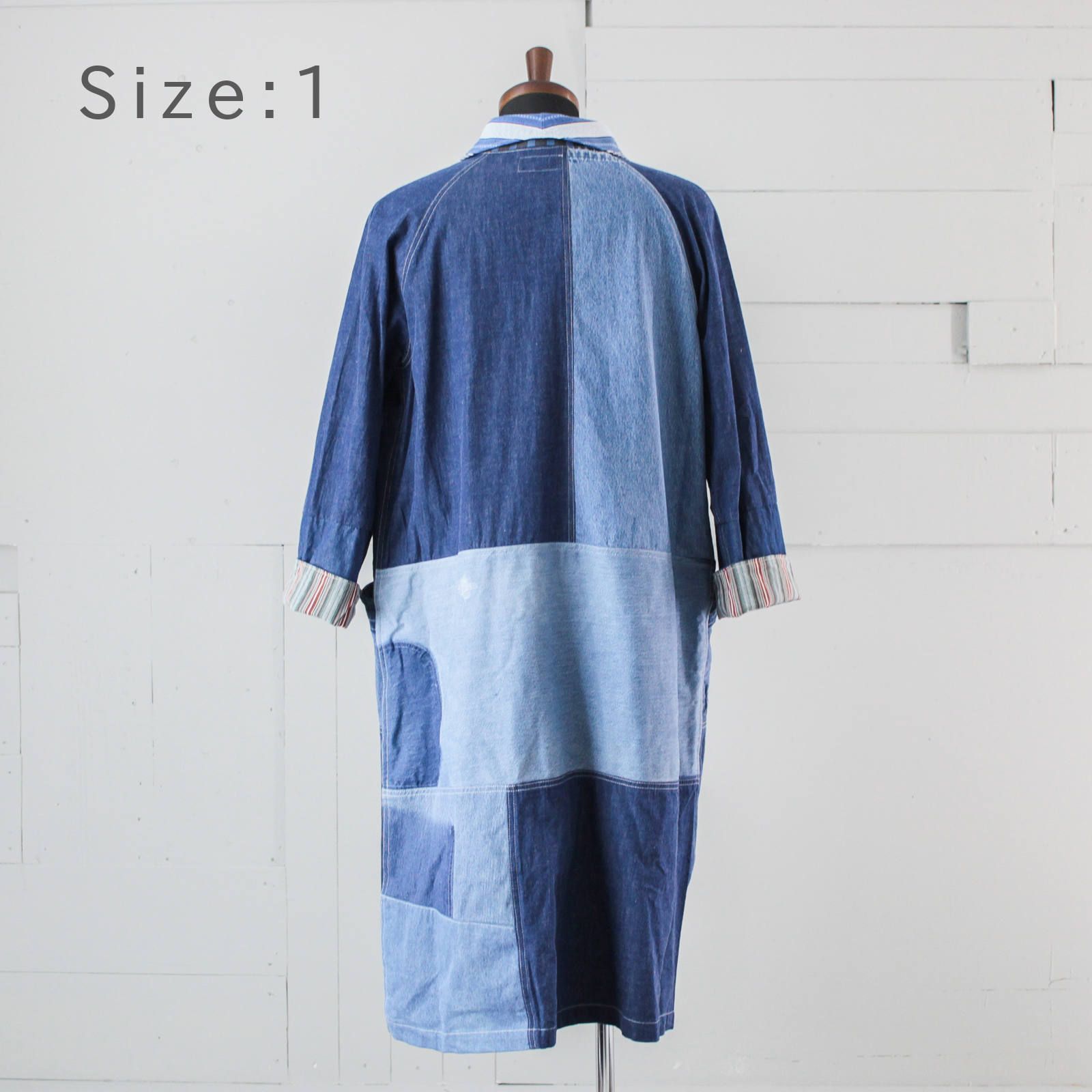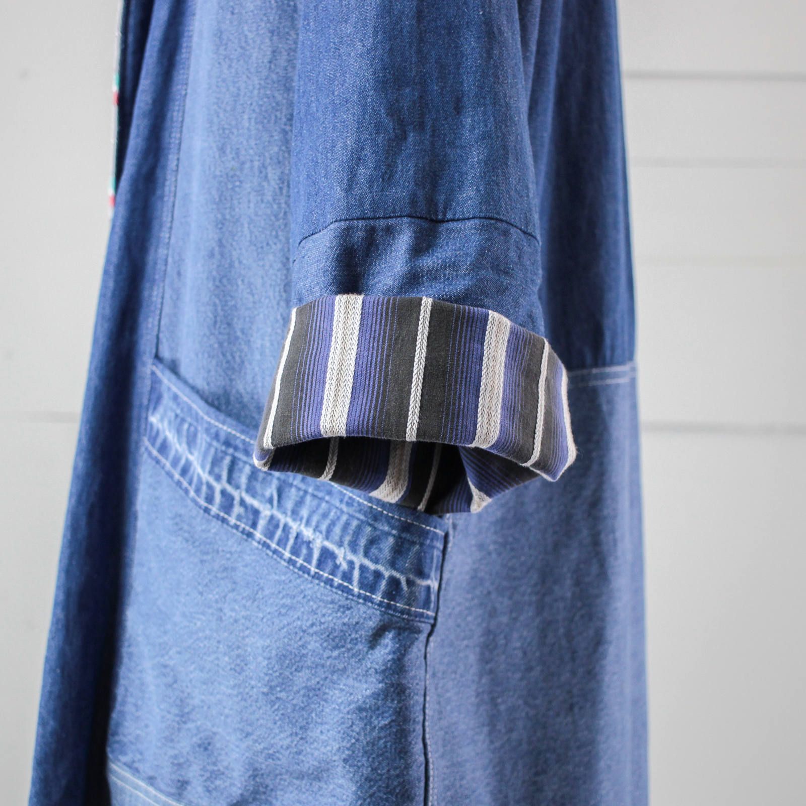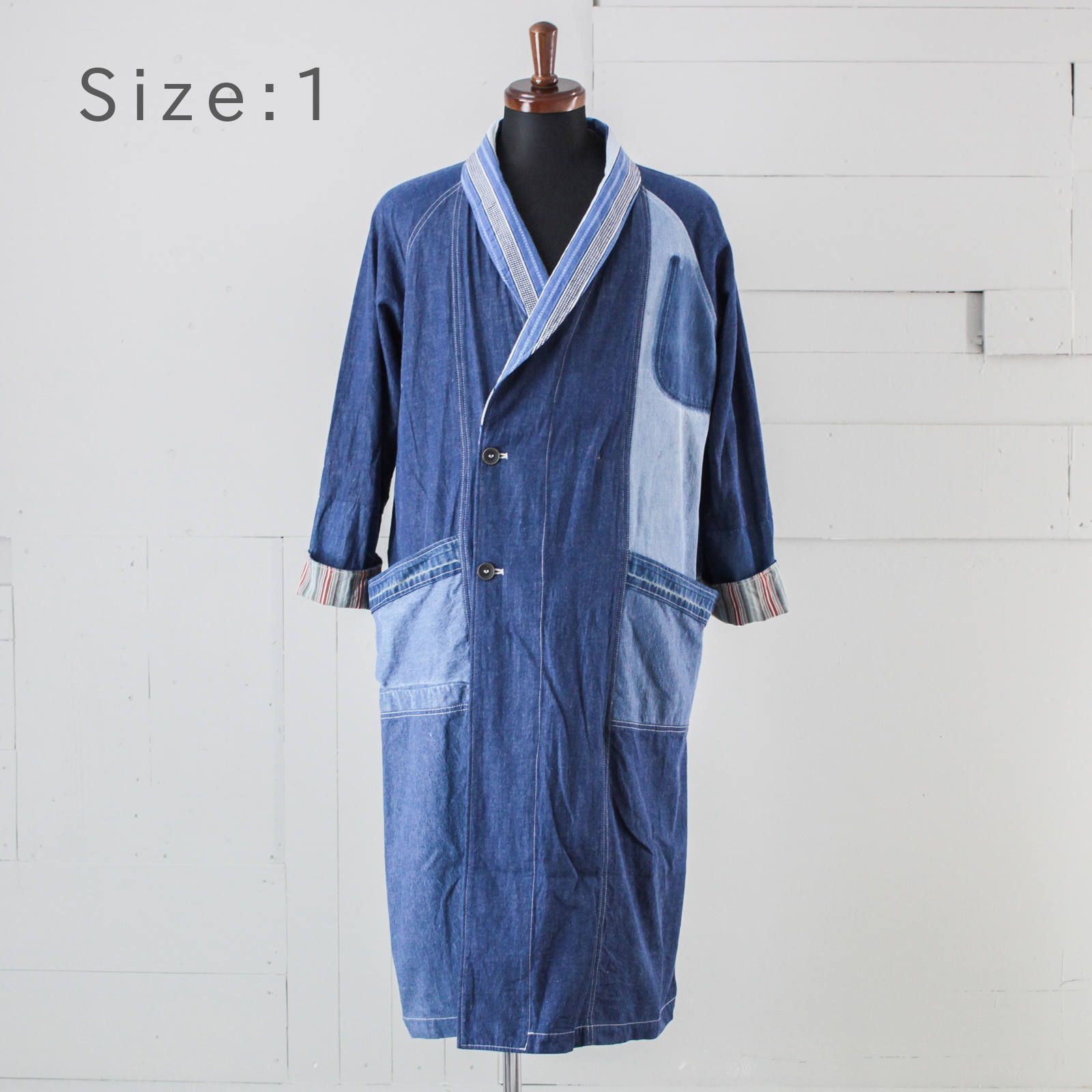 さて、こちらのコートはアメリカ古着のオーバーオールを解体し、再構築された唯一無二のアイテム。襟と袖内側はヨーロッパのビンテージパジャマを解体した生地を使用しています。