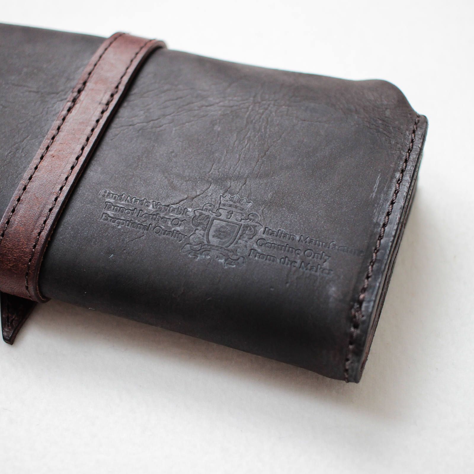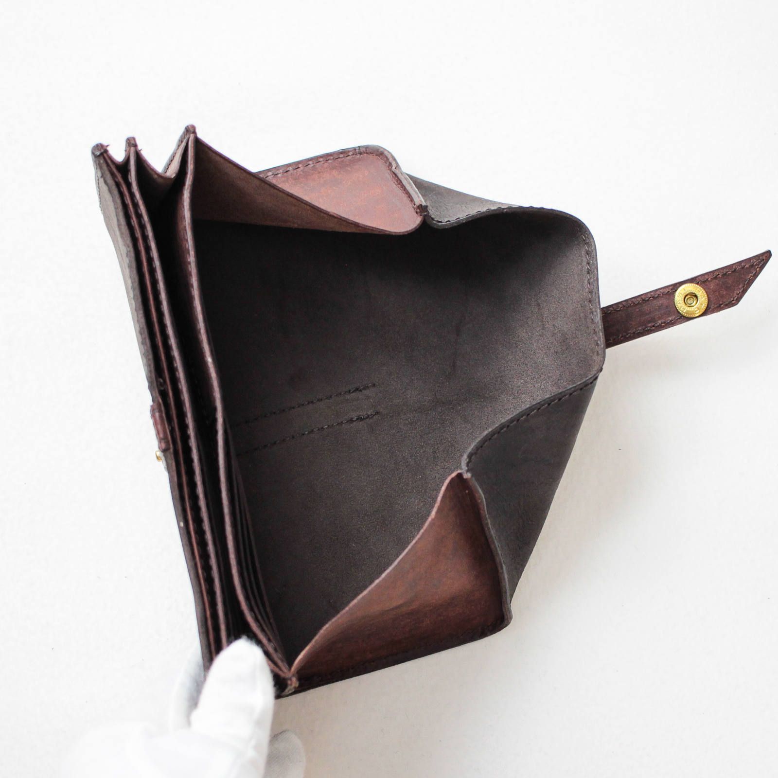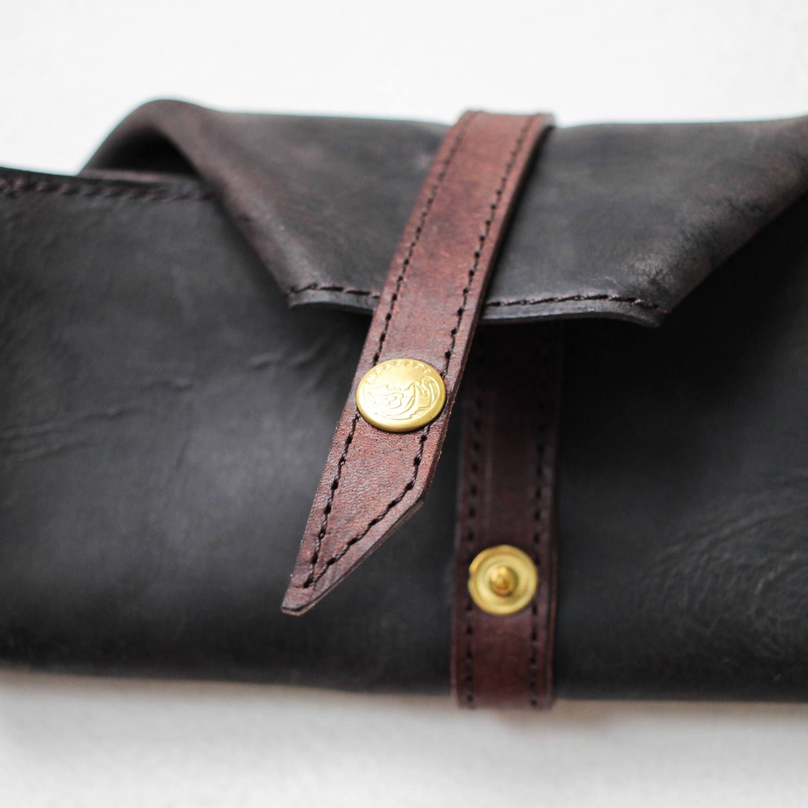江戸財布はベルトの留め具はギボシでしたが、今モデルはホック式。開閉がスムーズに行えます。ホックの刻印もカッコ良い!