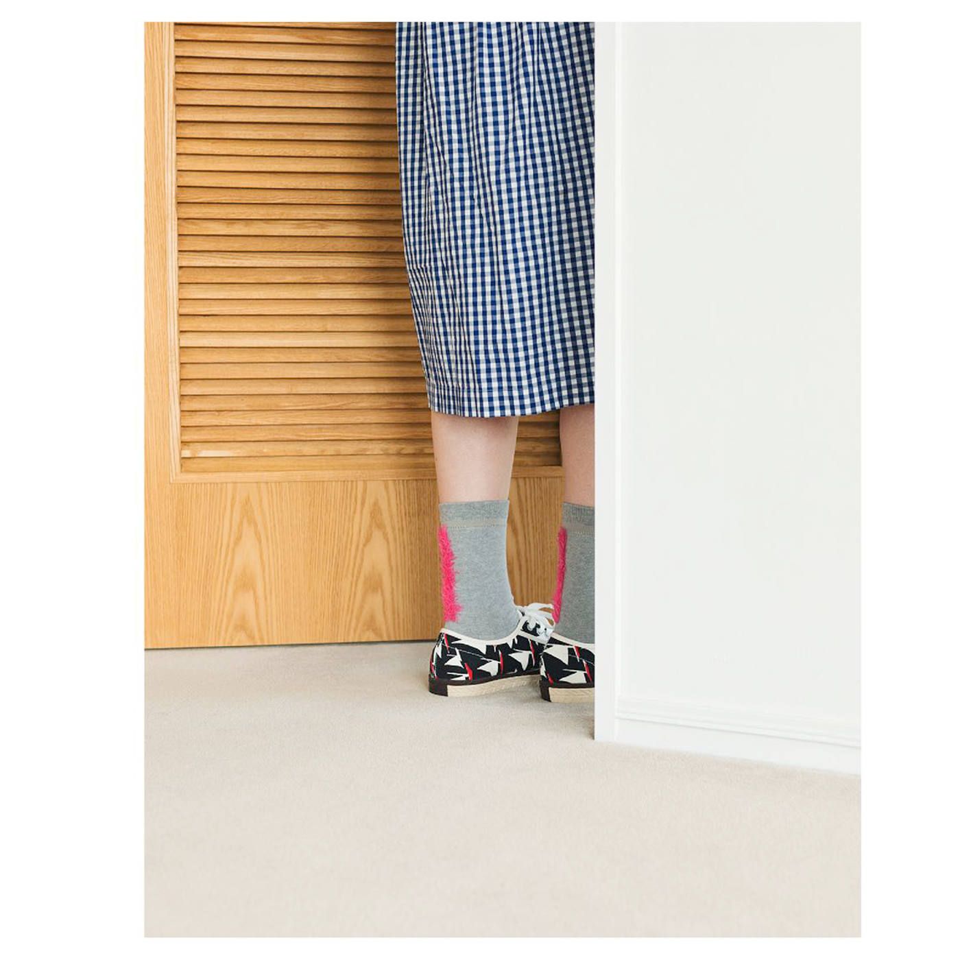 コットンベースでシーズン問わず着用できる靴下。コーデのアクセントとなる存在感のある仕上がりです。