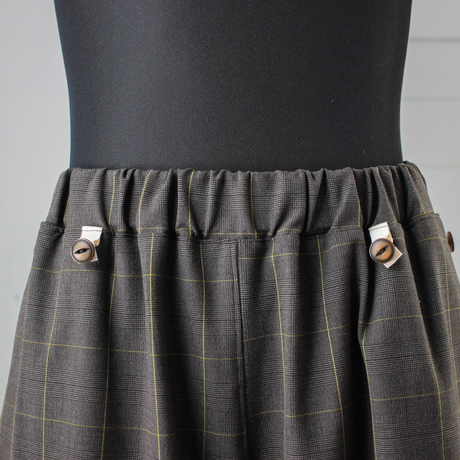 ウエスト部分のボタンで止まっているエプロン部を外すとこんな感じに。ストンと落ち感の有るシルエットに猫目ボタンも可愛いですね。