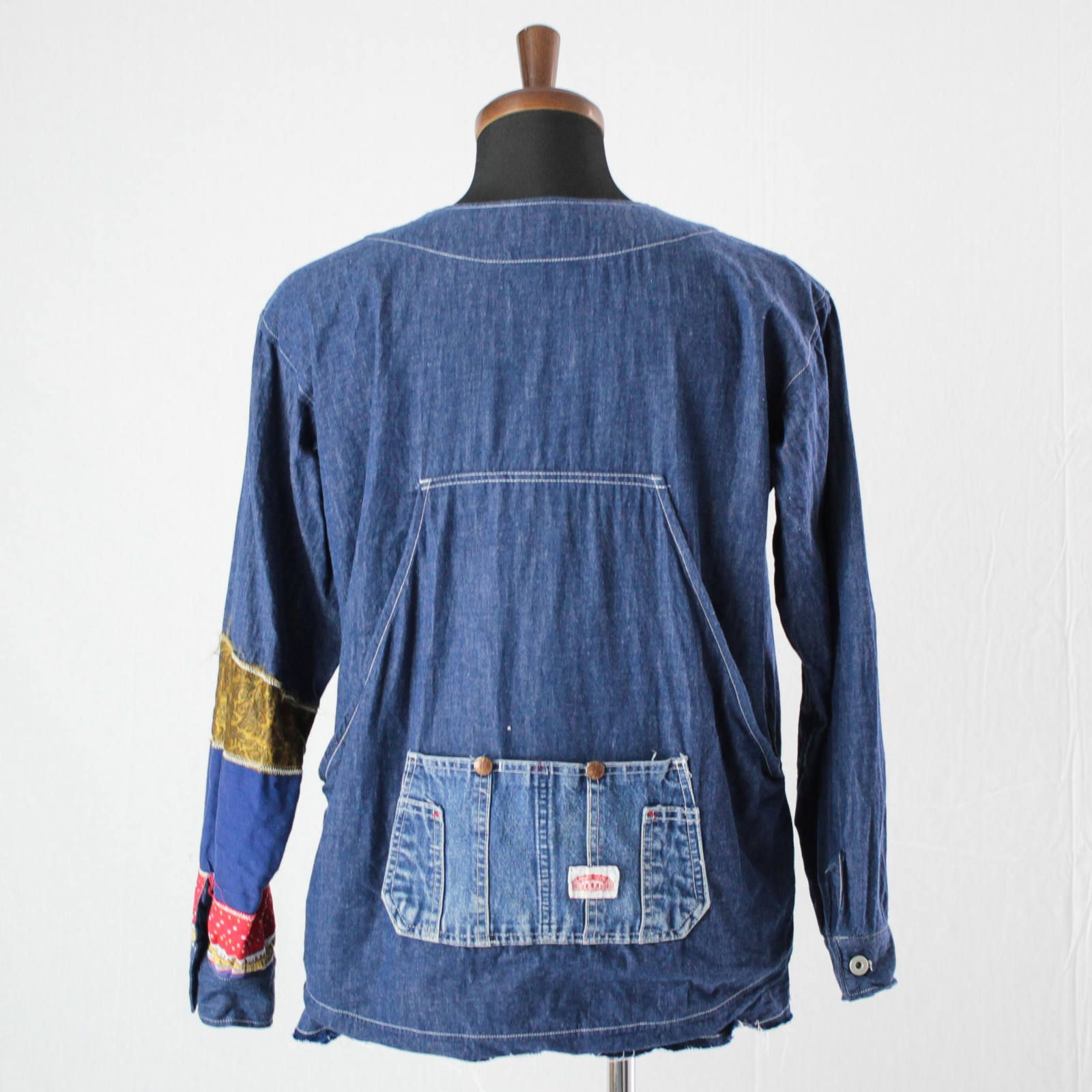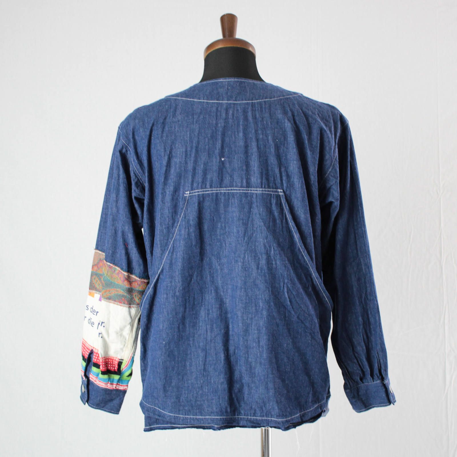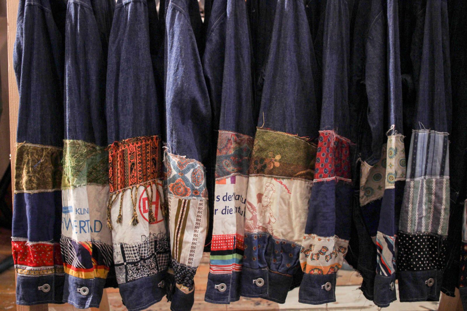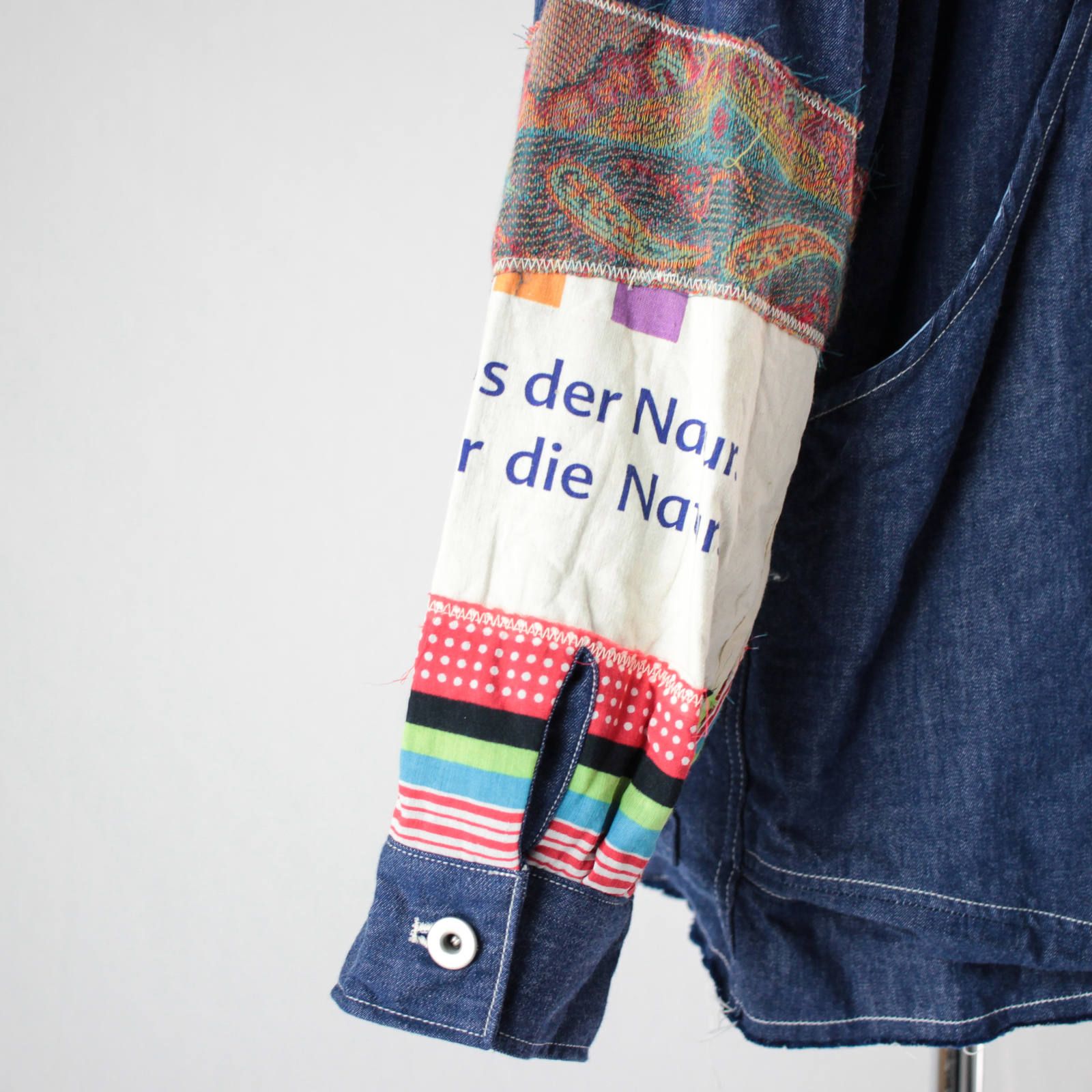masterkeyとのコラボアイテムは、デニムカーディガン。薄手のデニムカーディガンをベースに、左袖のみ古着のパッチワーク仕様に。全て違う1点物です!