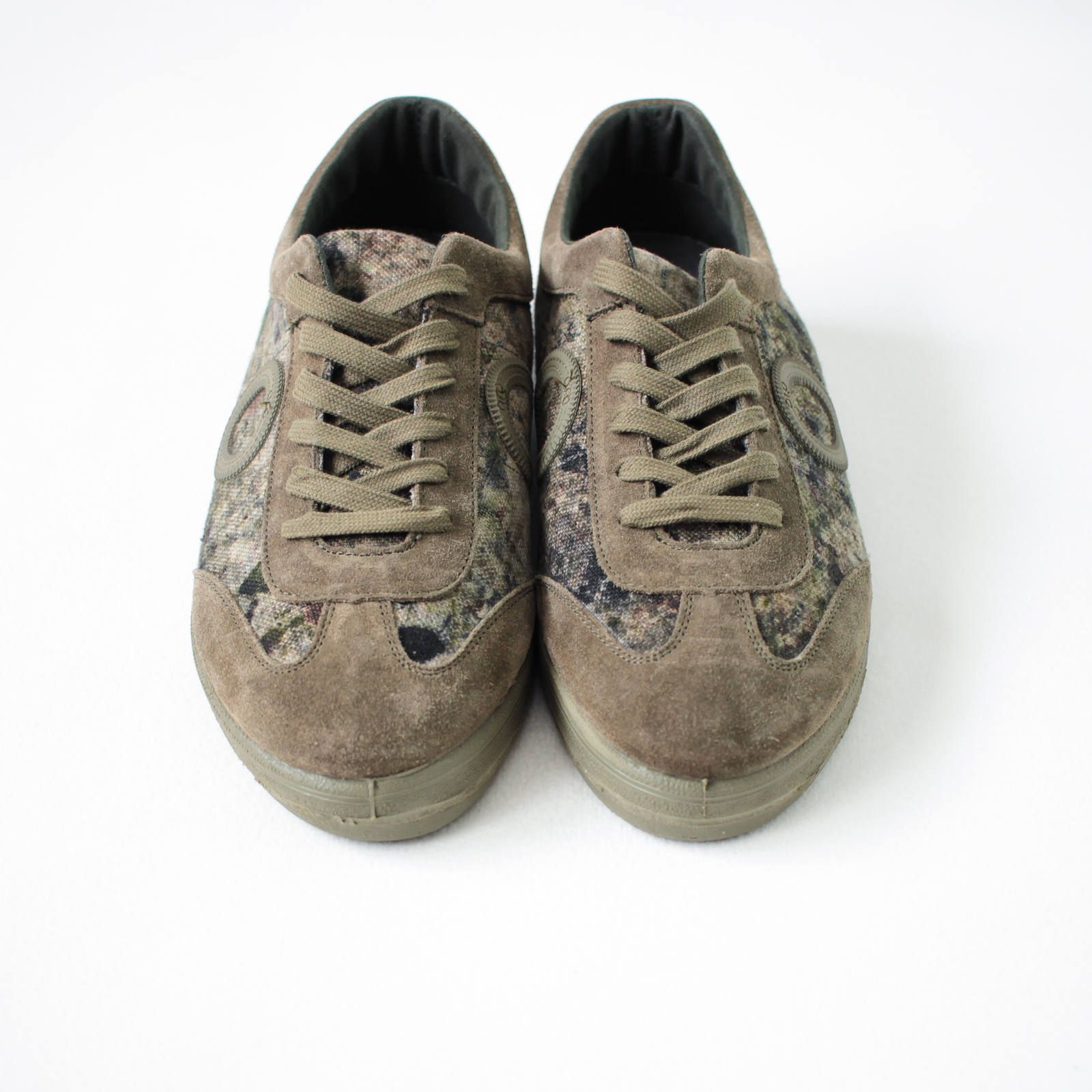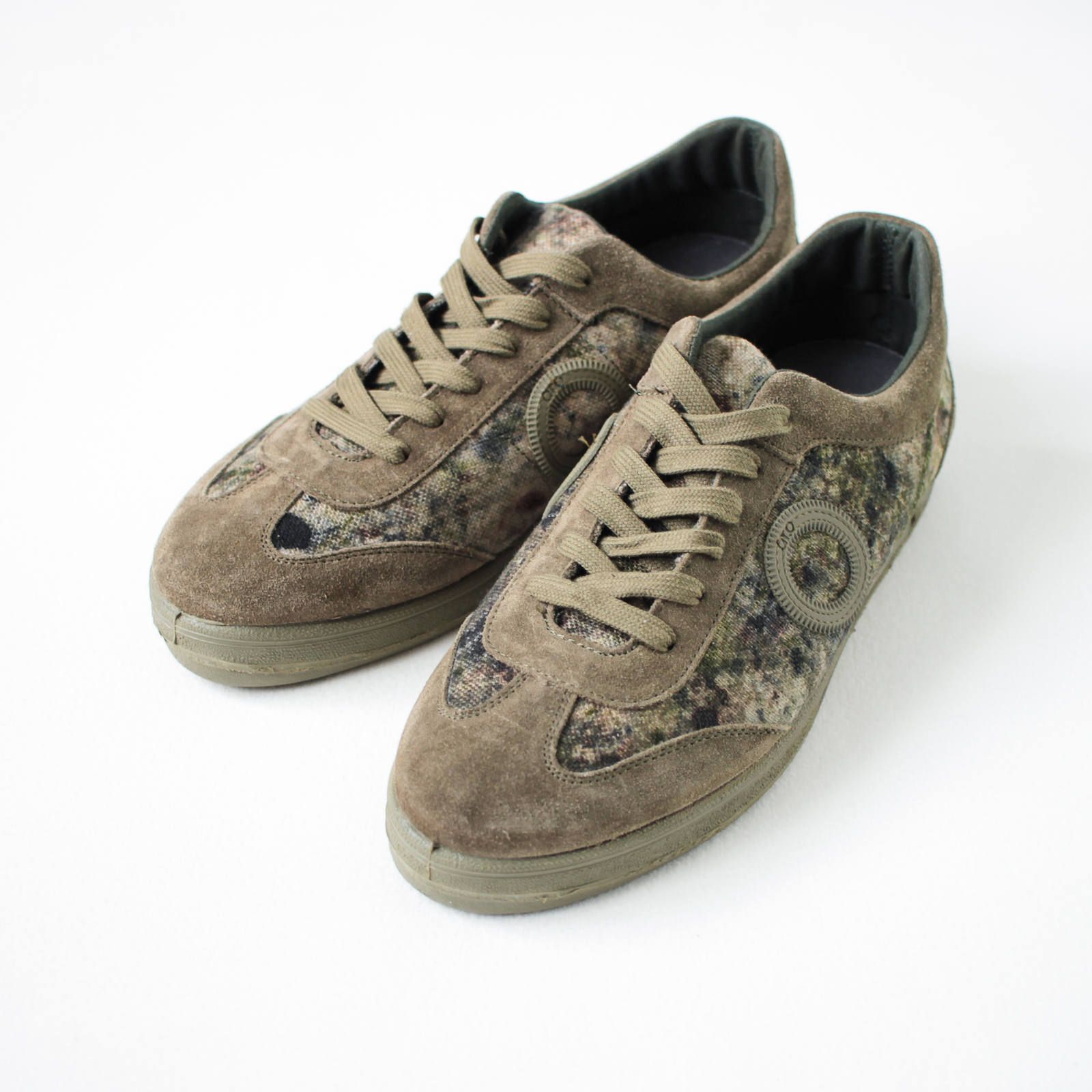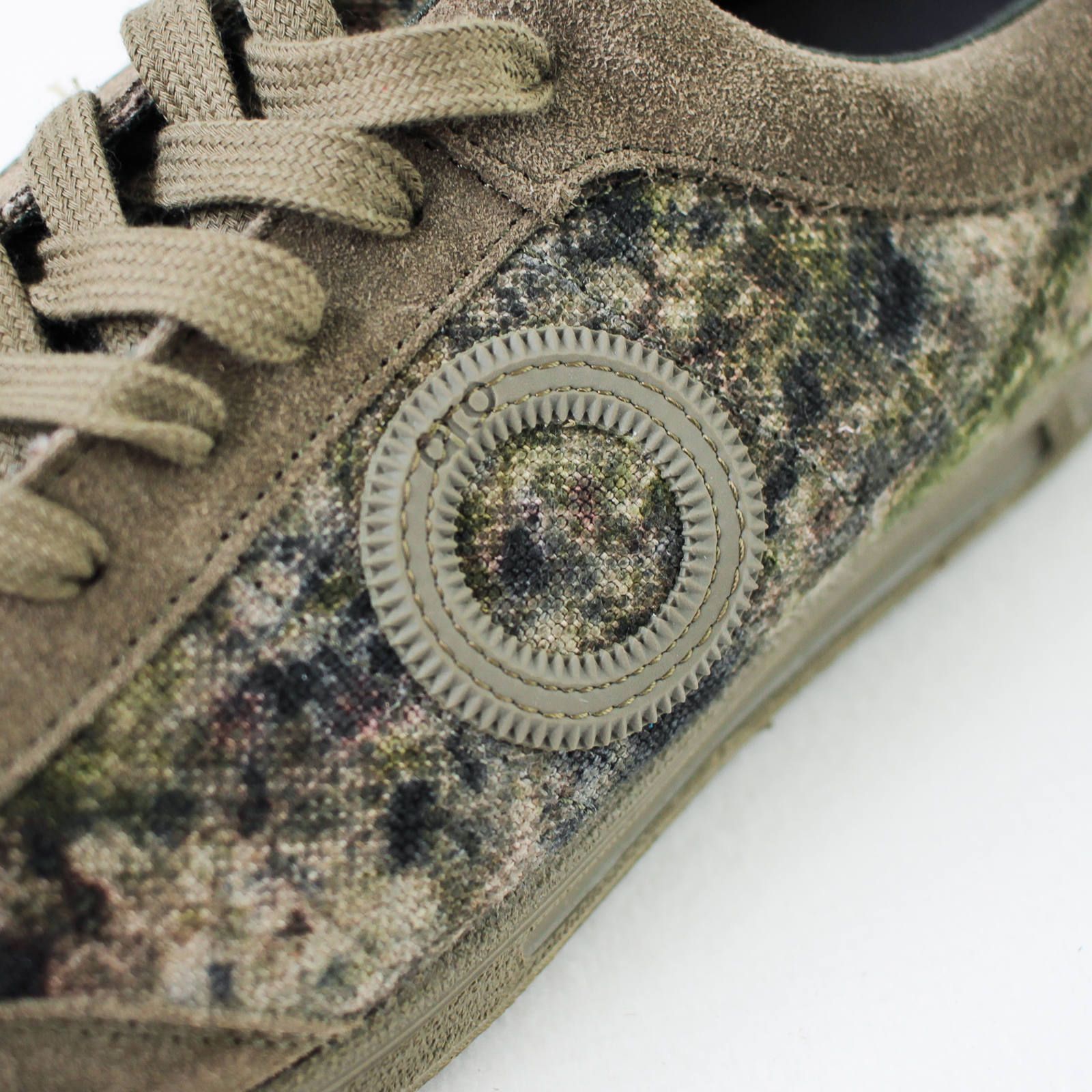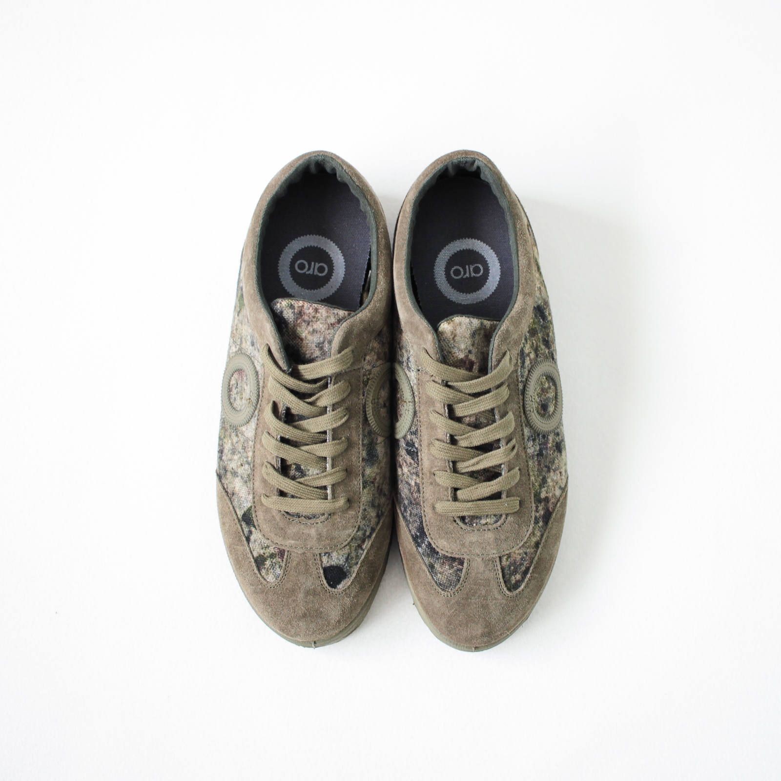 スエードとウッドカモフラージュ柄のコンビがクールなスニーカー。渋いカラーリングで「カッコイイ」と思わず声が漏れるデザインです。