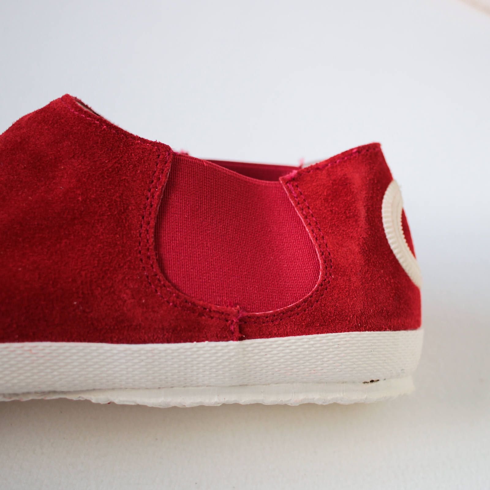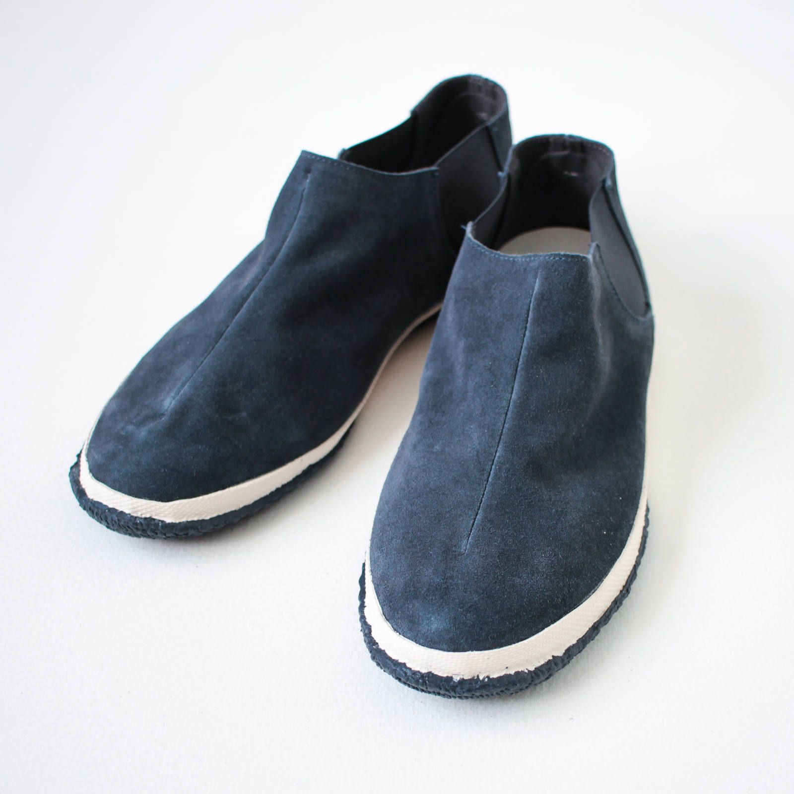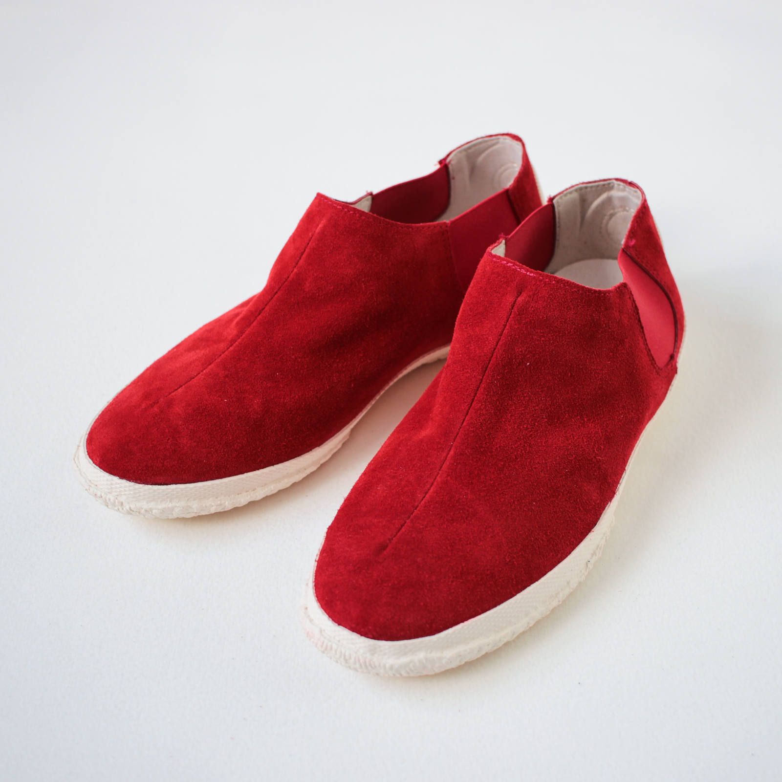 スエードの生地感を存分に楽しめるシンプルなデザイン。センターに入ったダーツが立体的なフォルムを生み、キレイで履きやすい形となっています。幅広タイプなのも嬉しいポイント。