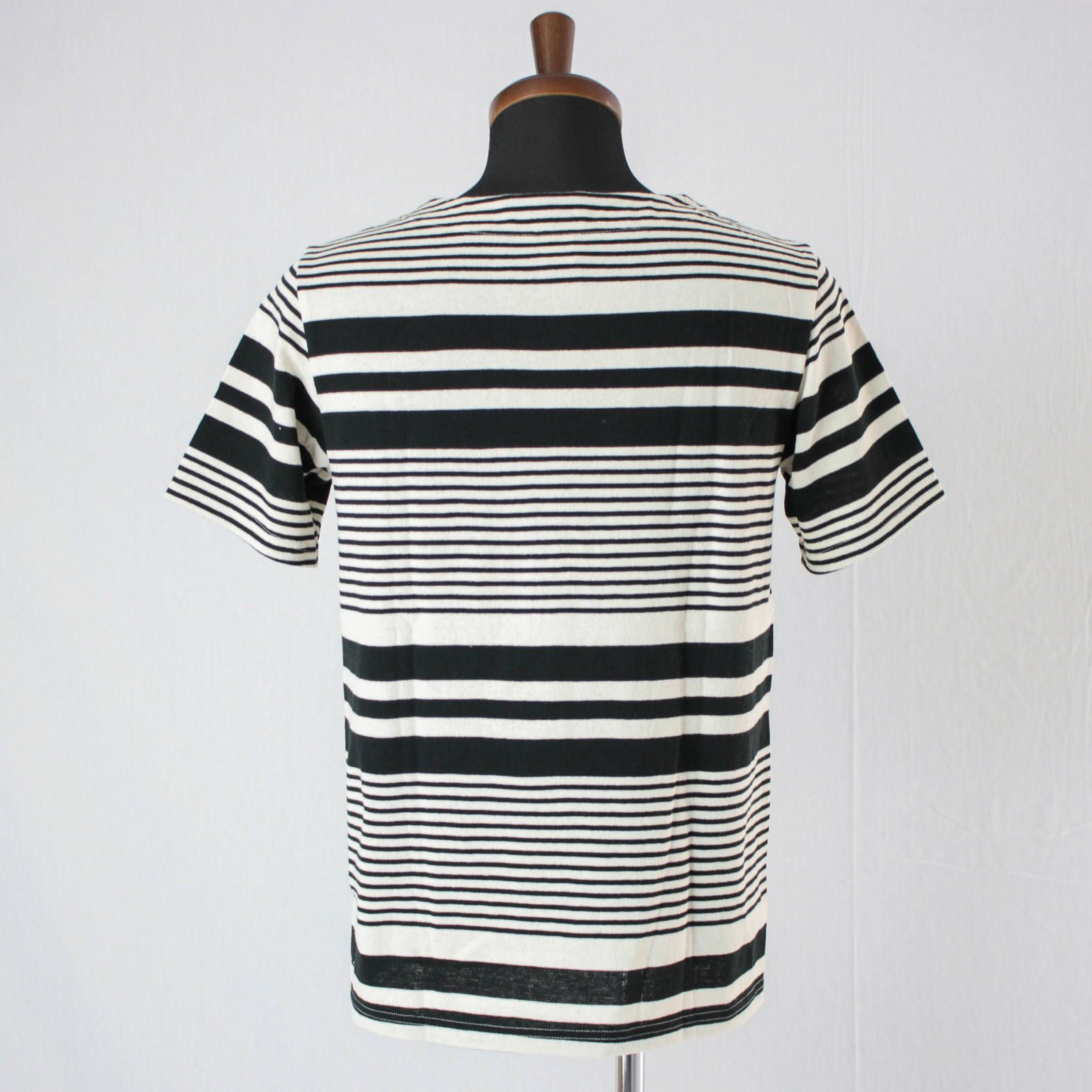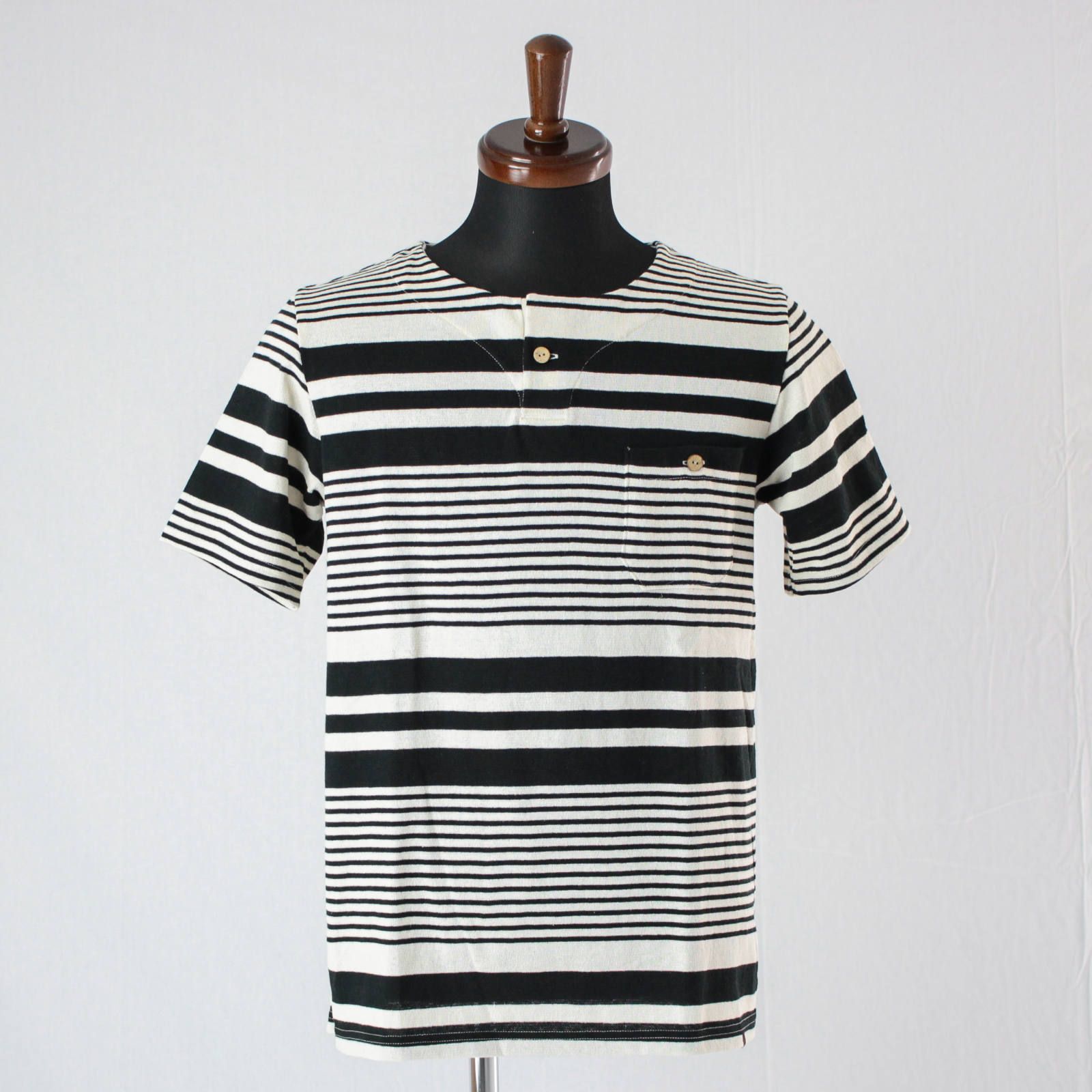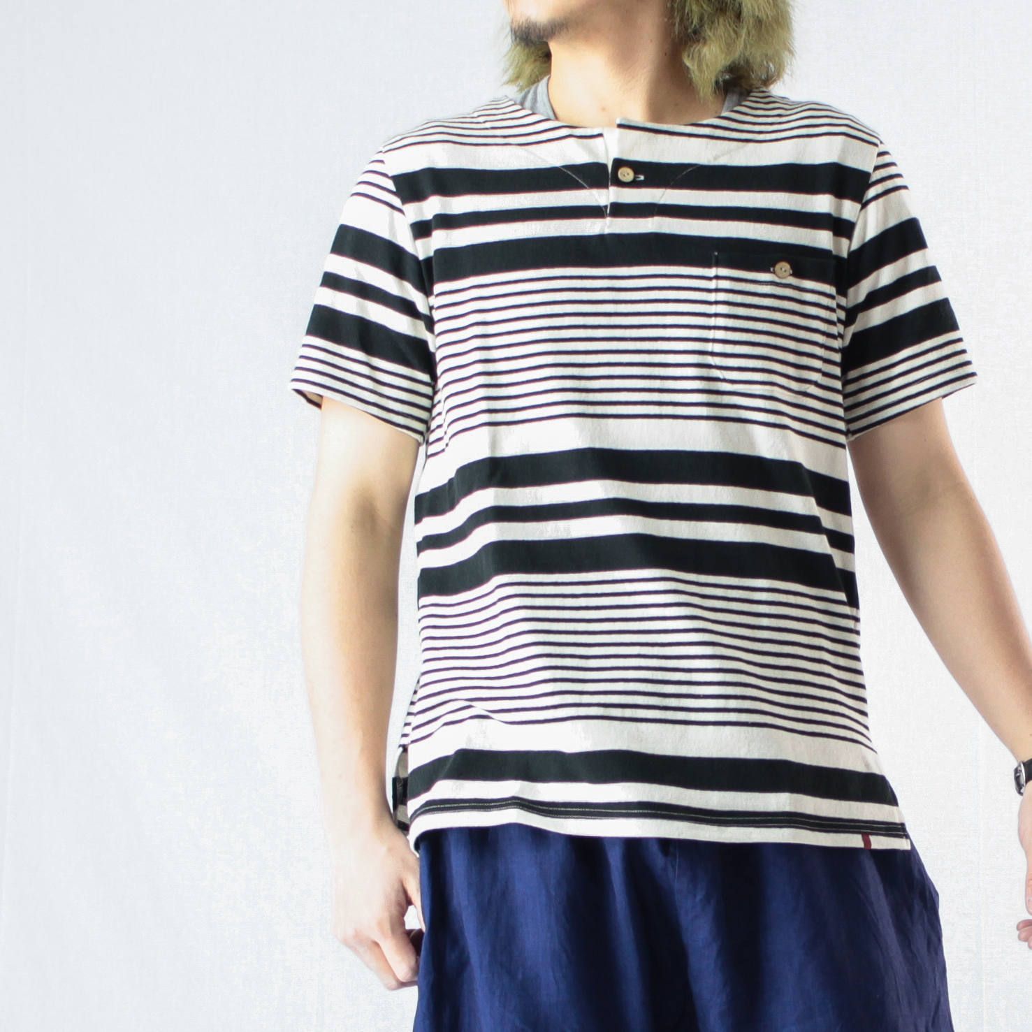 ポロシャツ、スキッパーシャツ、ヘンリーネック、ボートネック等の要素をMIXした面白いボーダーTシャツ。他ではなかなか見ないデザイン!