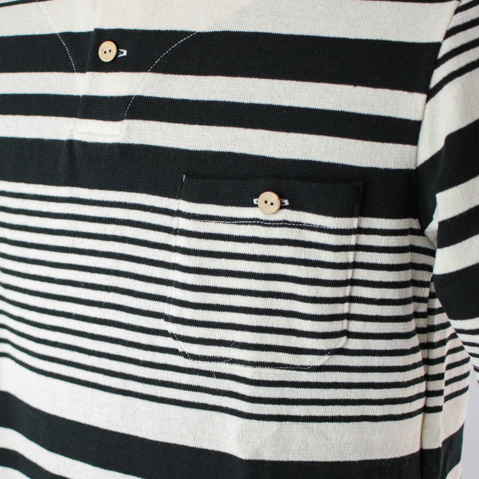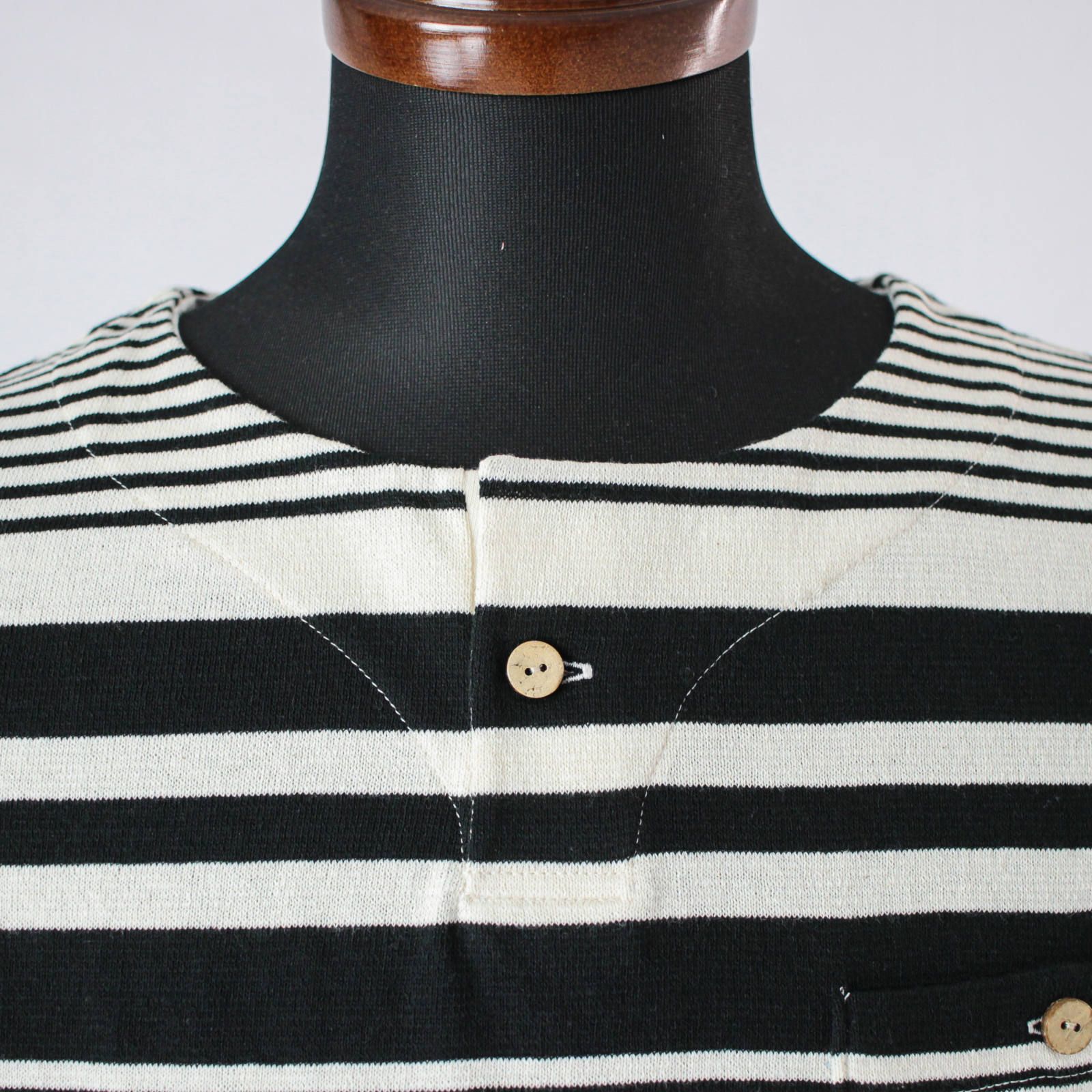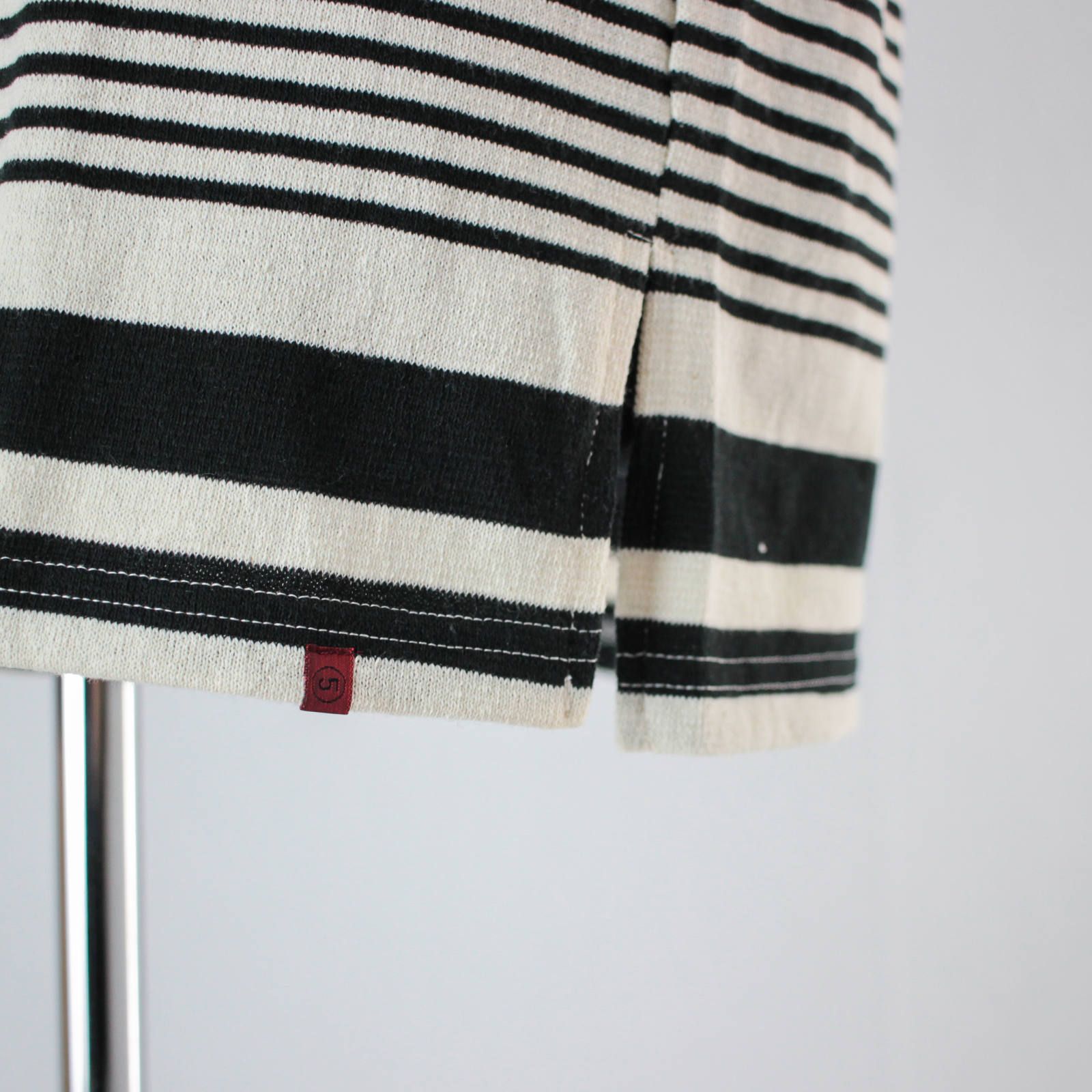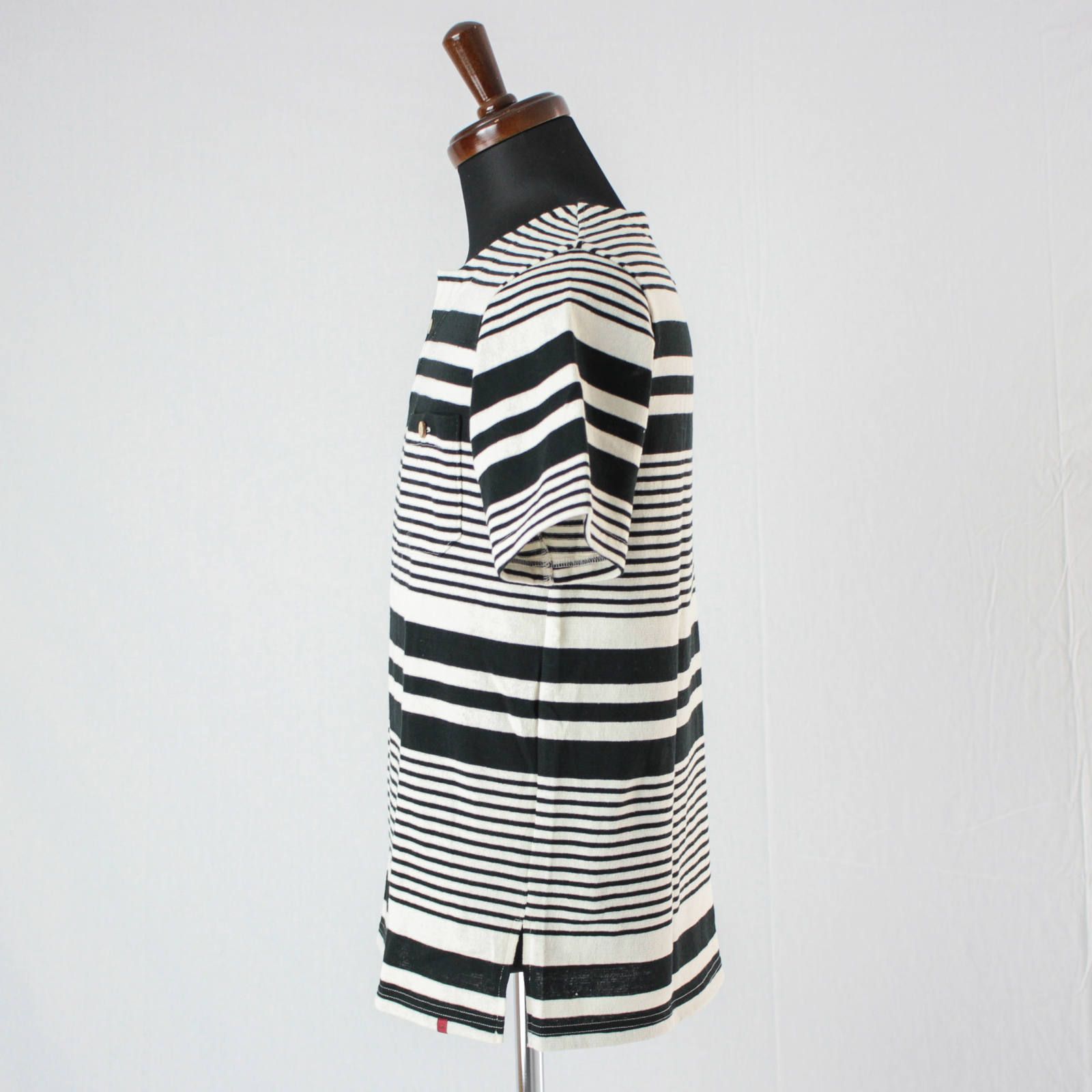 ポロシャツ、スキッパーシャツ、ヘンリーネック、ボートネック等の要素をMIXした面白いボーダーTシャツ。他ではなかなか見ないデザイン!