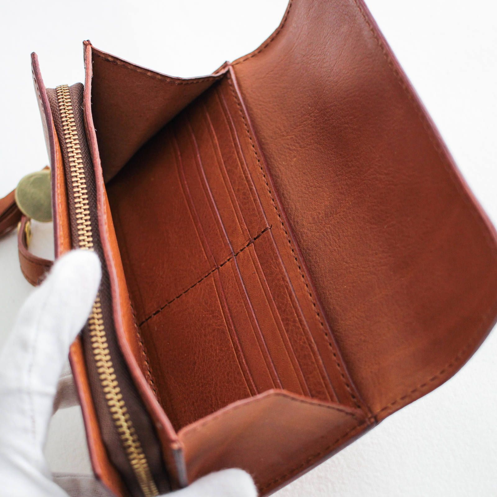 ファスナーの引張りに付くチャームとフリンジも可愛いです!是非手に取って柔らかな革と使いやすさを実感してください。