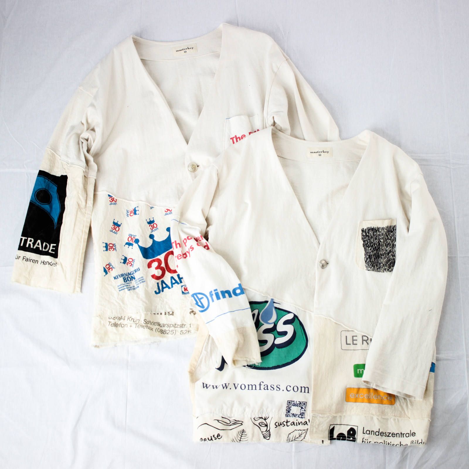 masterkeyからお得意のリメイクアイテムが登場です。今回紹介するのはエコバッグをリメイクしたカーディガン。