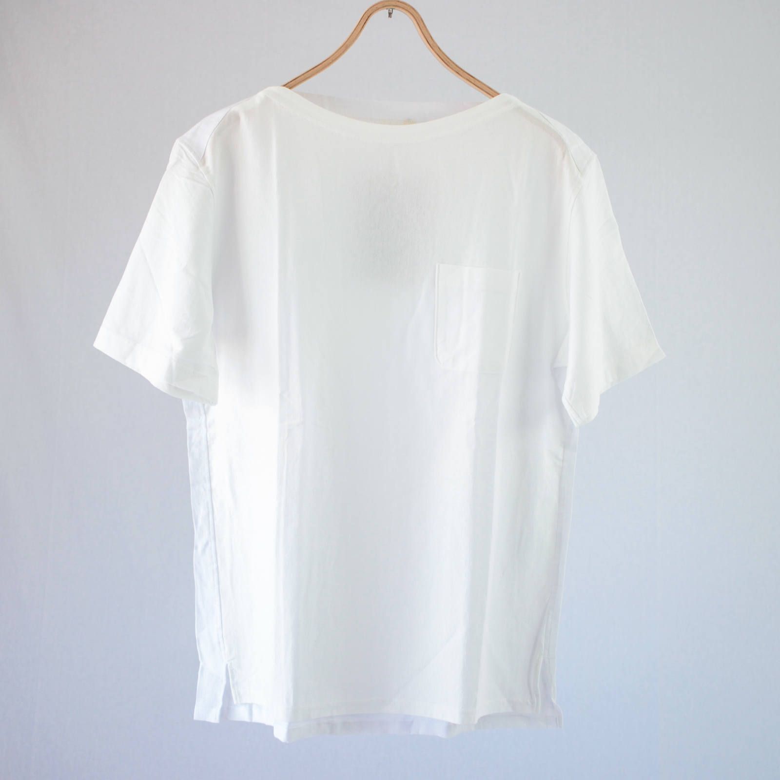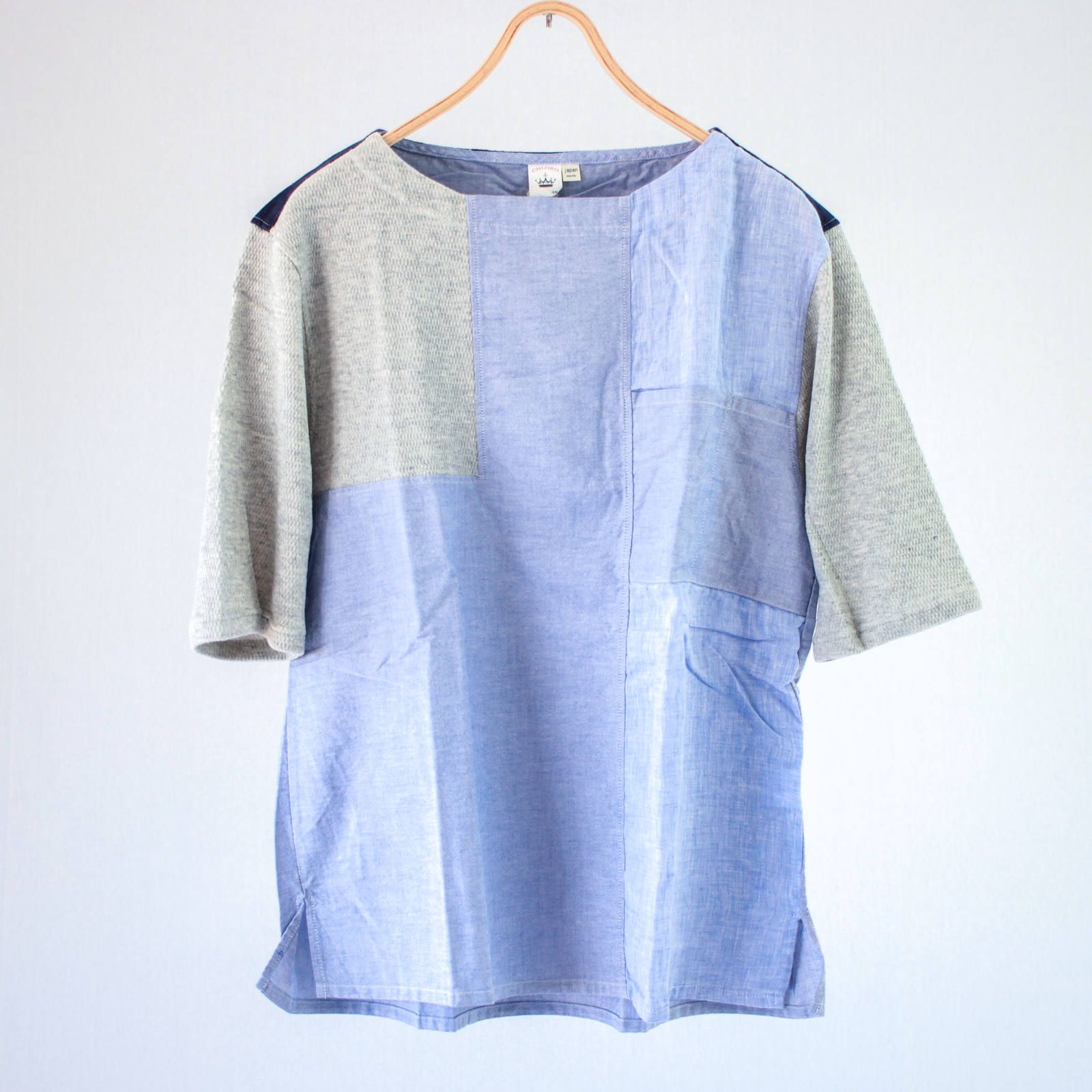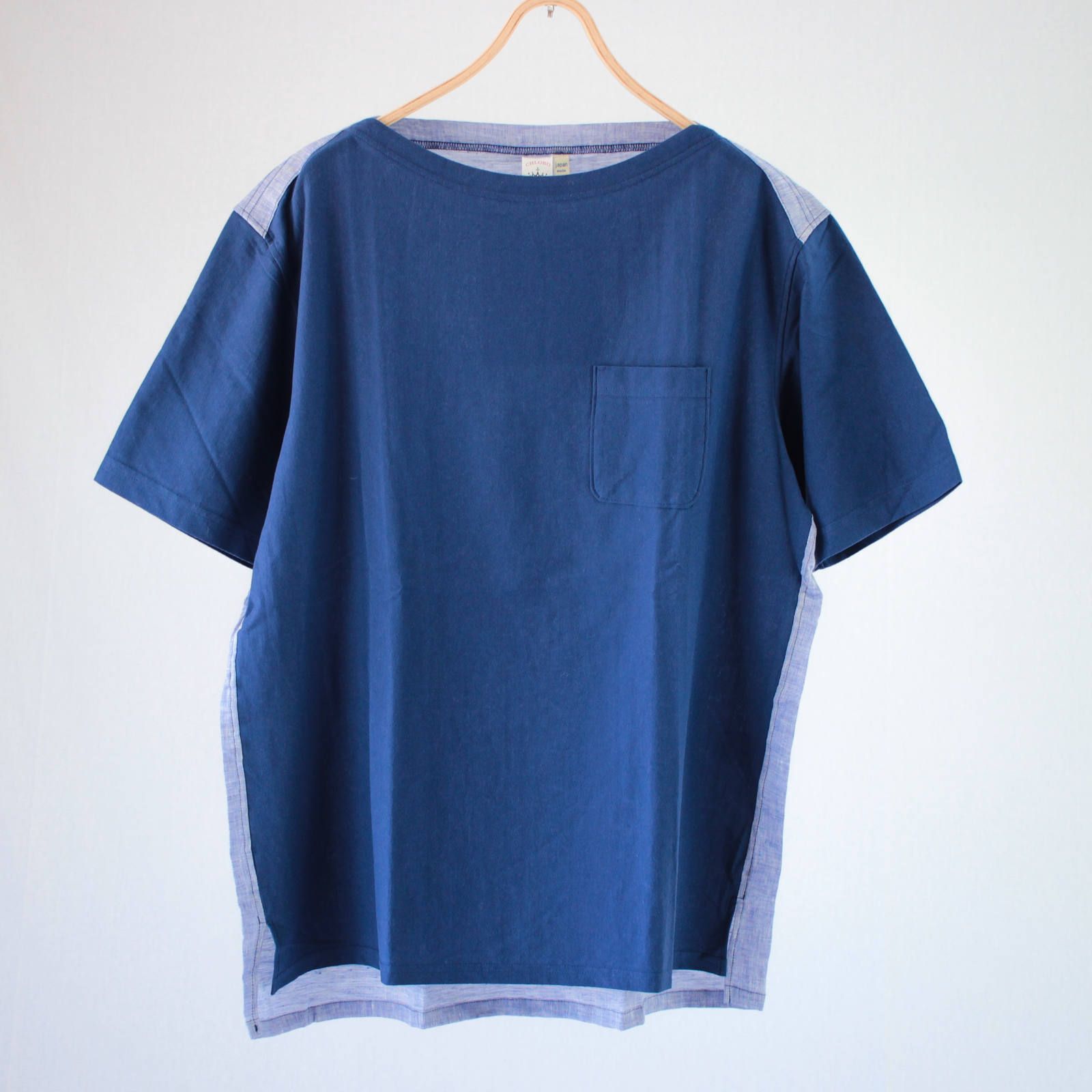 前後で生地を切り替えた涼しげなボートネックTシャツ。綿と麻の切替で軽やかなTシャツです!