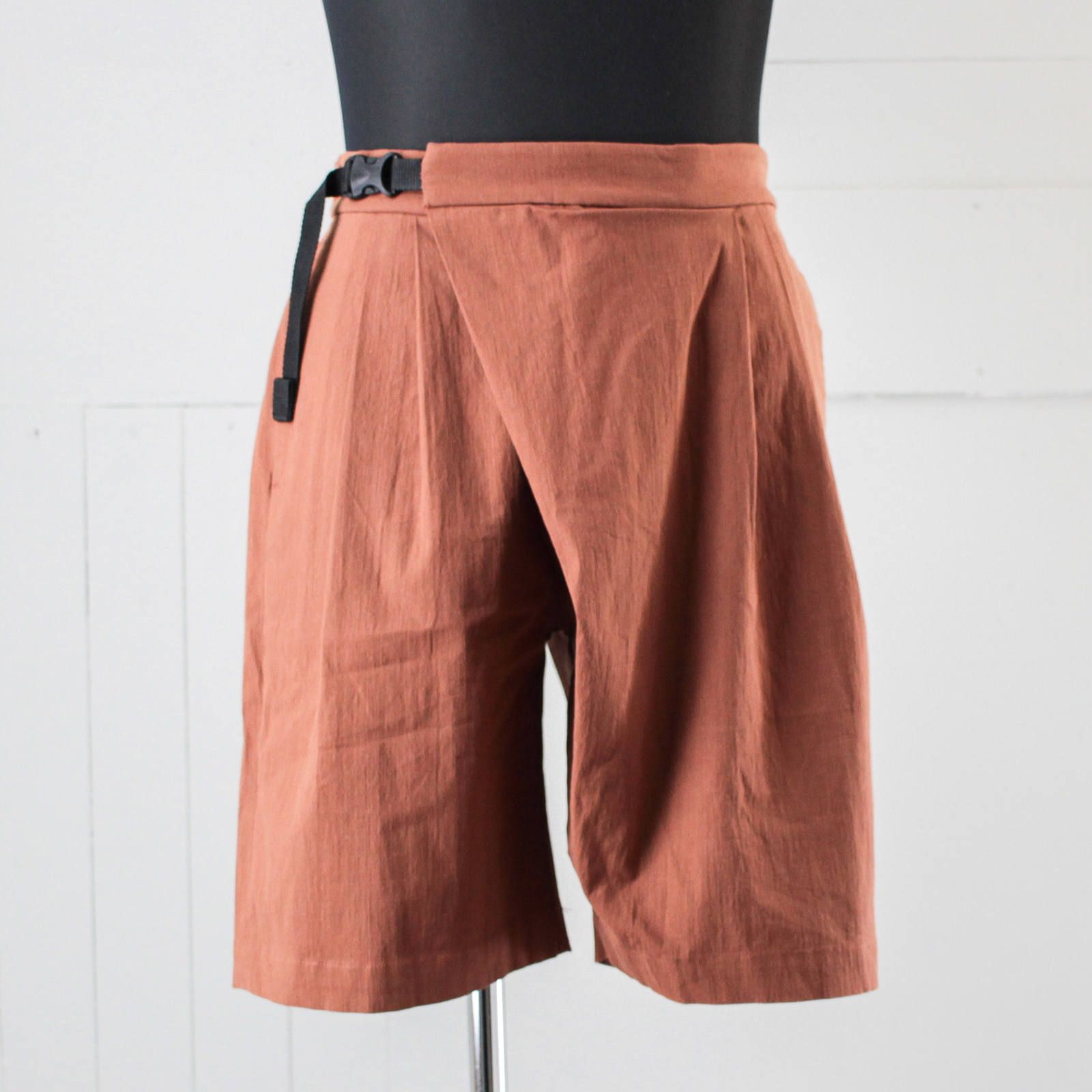 伸縮性に優れ、ドライタッチで麻の様なナチュラルな風合いの生地を使用したラップショーツ。生地は異なりますが、先に入荷していたラップパンツのショートバージョンです!