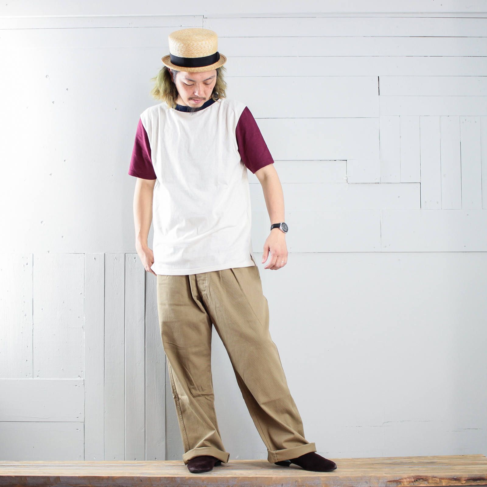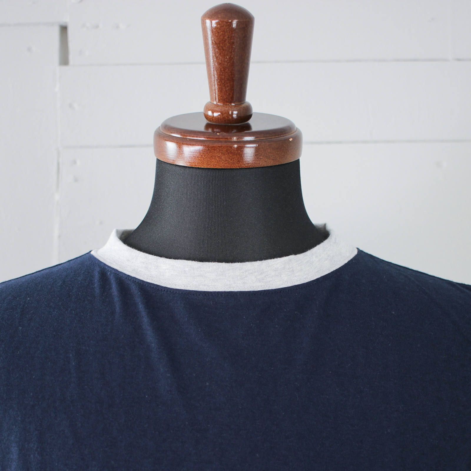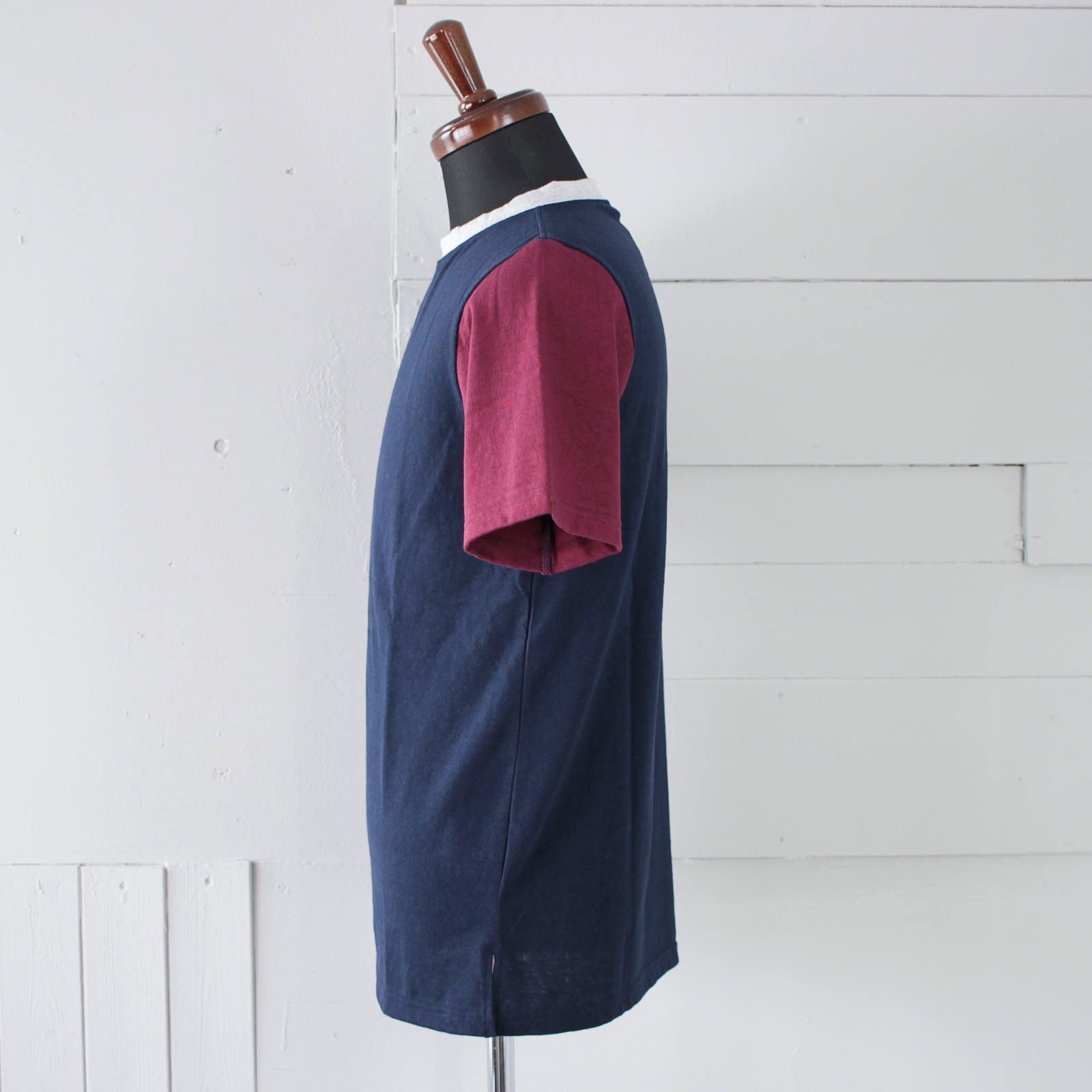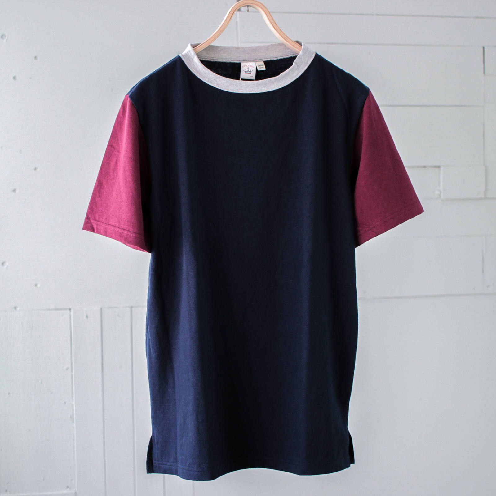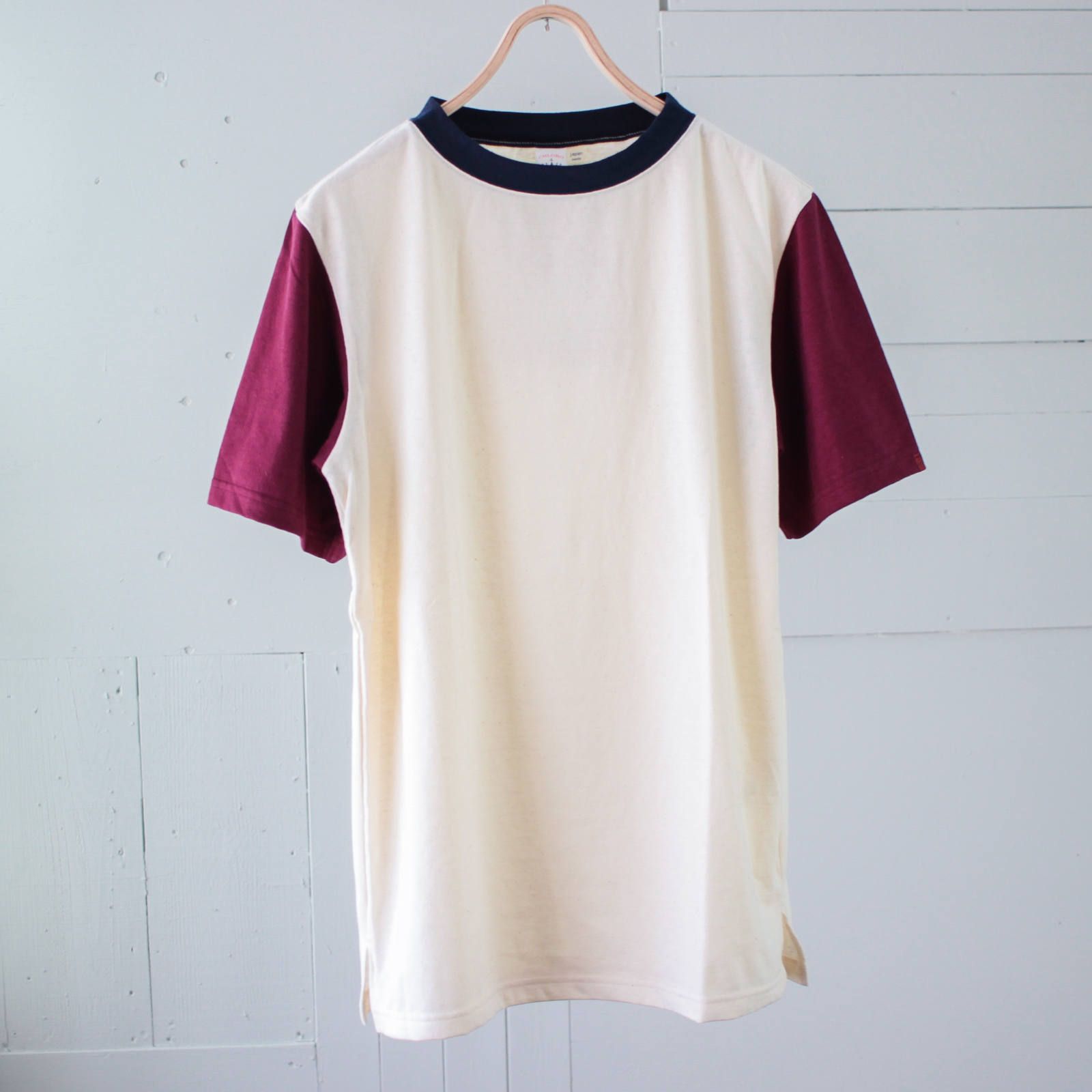 首回りと袖、胴体。それぞれ良い塩梅のカラーリングで、無地ながら存在感抜群。とっても肌あたりの良い天竺生地で着心地も◎