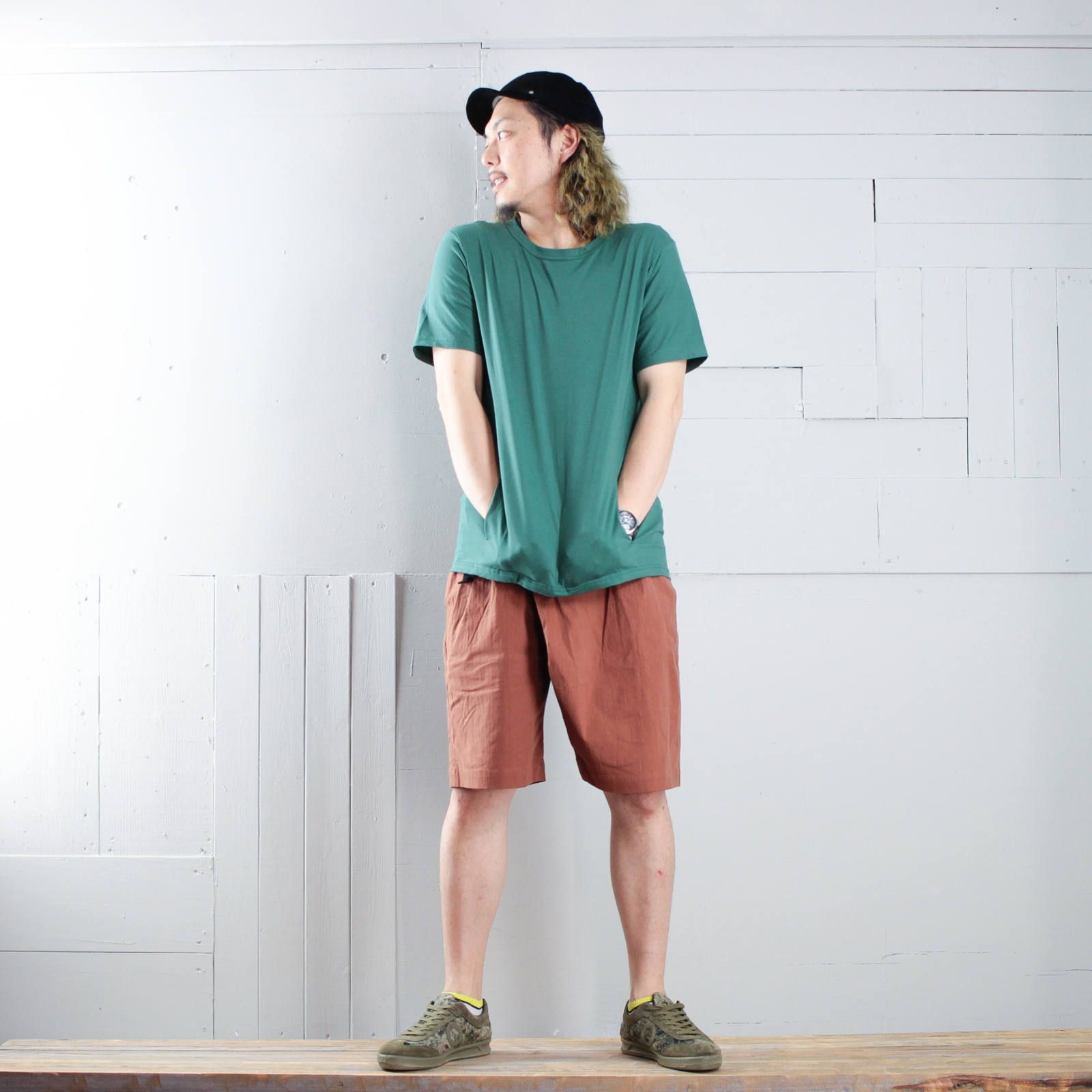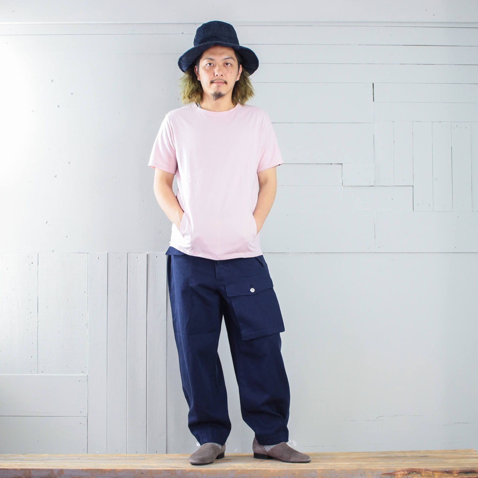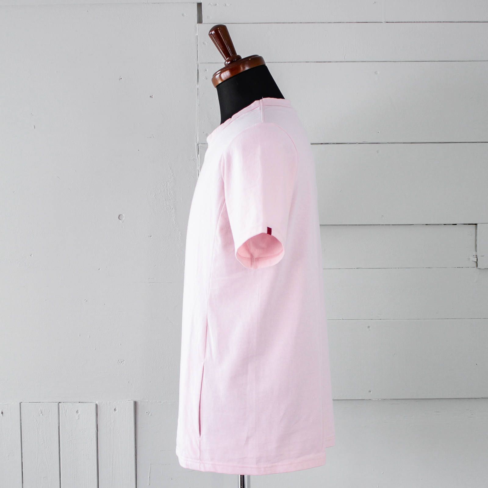 脇を立体的に切替、その切替ラインに沿ってポケットが付いてます。このシルエットを崩さず、スマートに付いたポケットが秀逸。シンプルな無地のTシャツですが、生地のこだわりと、さり気なく付いたポケットで他のTシャツとは一線を画す仕上がりとなっています。