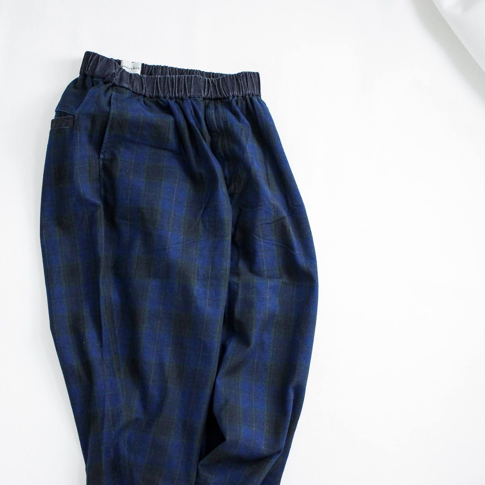 早くも品薄となってきたmasterkeyのインディゴチェックパンツ。このインディゴチェックパンツはこれまでに無かったような新しい形のセットアップスタイルが楽しめます。