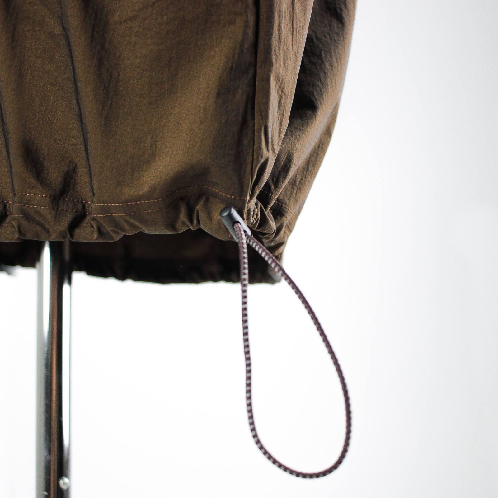 1サイズ(FREE)のみの展開でユニセックスで着用可能。ビッグシルエットを活かした着こなしが楽しめる様、裾にはドローコードが入ります。このドローコードはリフレクター仕様で光に反射します!ハンドポケットももちろん有り〼。メンズはゆったりと、レディースはワンピースの様にコーディネートが楽しめるのが嬉しいですね。夫婦でシェアなんてのも良きです。