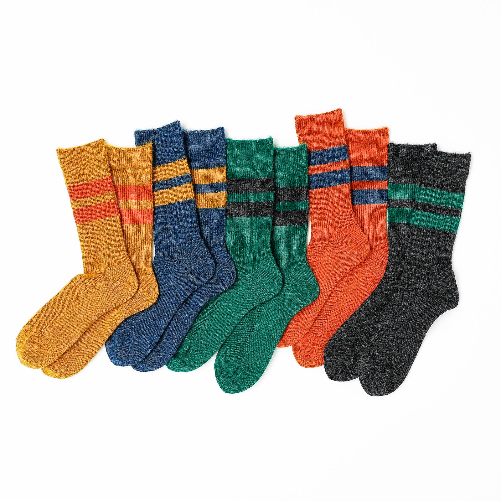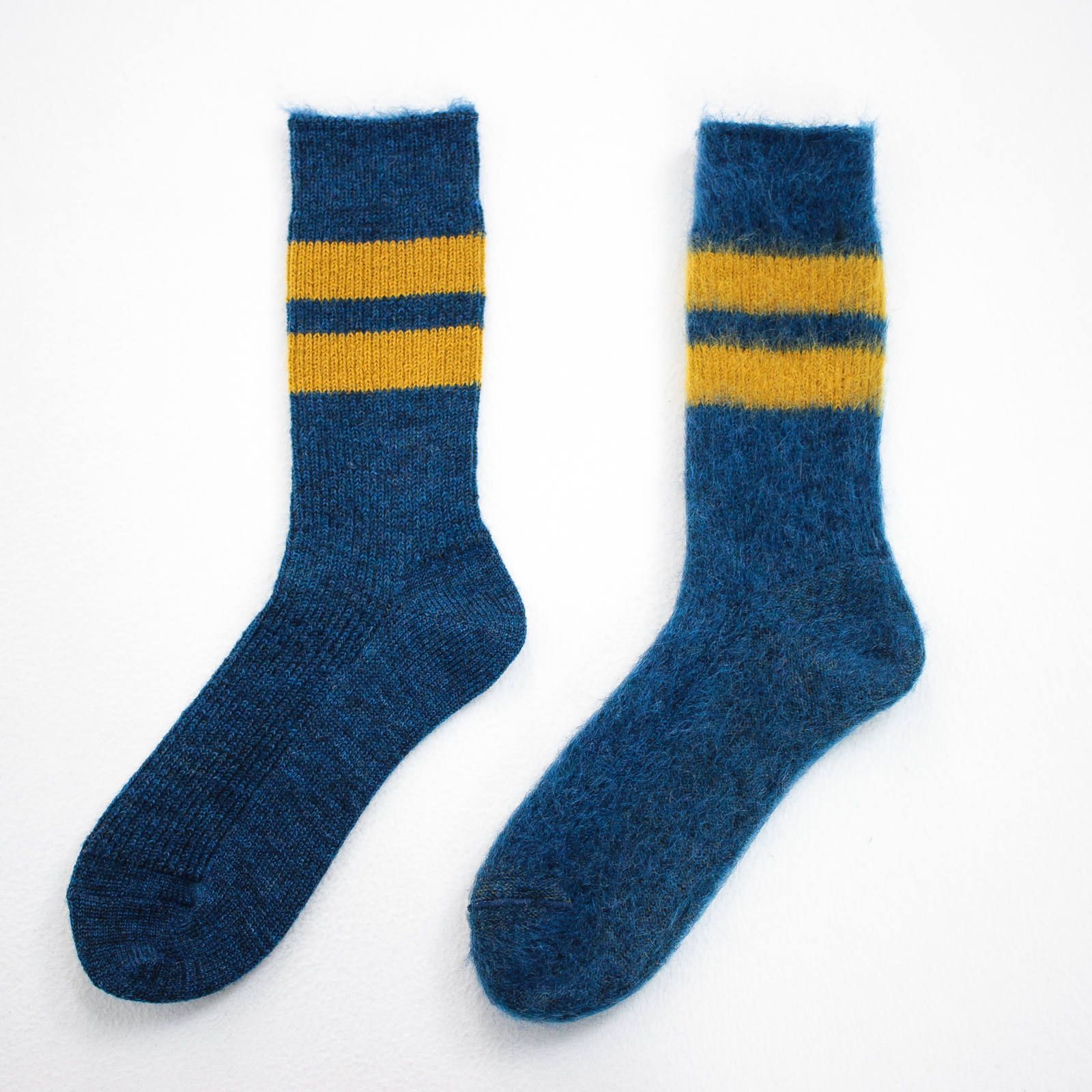 アンゴラヤギの子ヤギから刈り取られた、希少なモヘア(キッドモヘア)を贅沢に使用したラインソックス。キッドモヘアはモヘアの中でもグレードが高く、非常に暖かで肌触りが優しいんです。