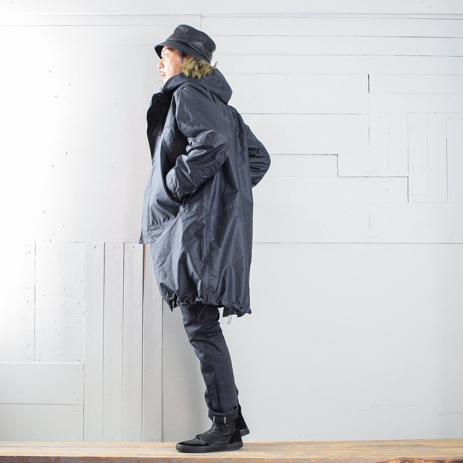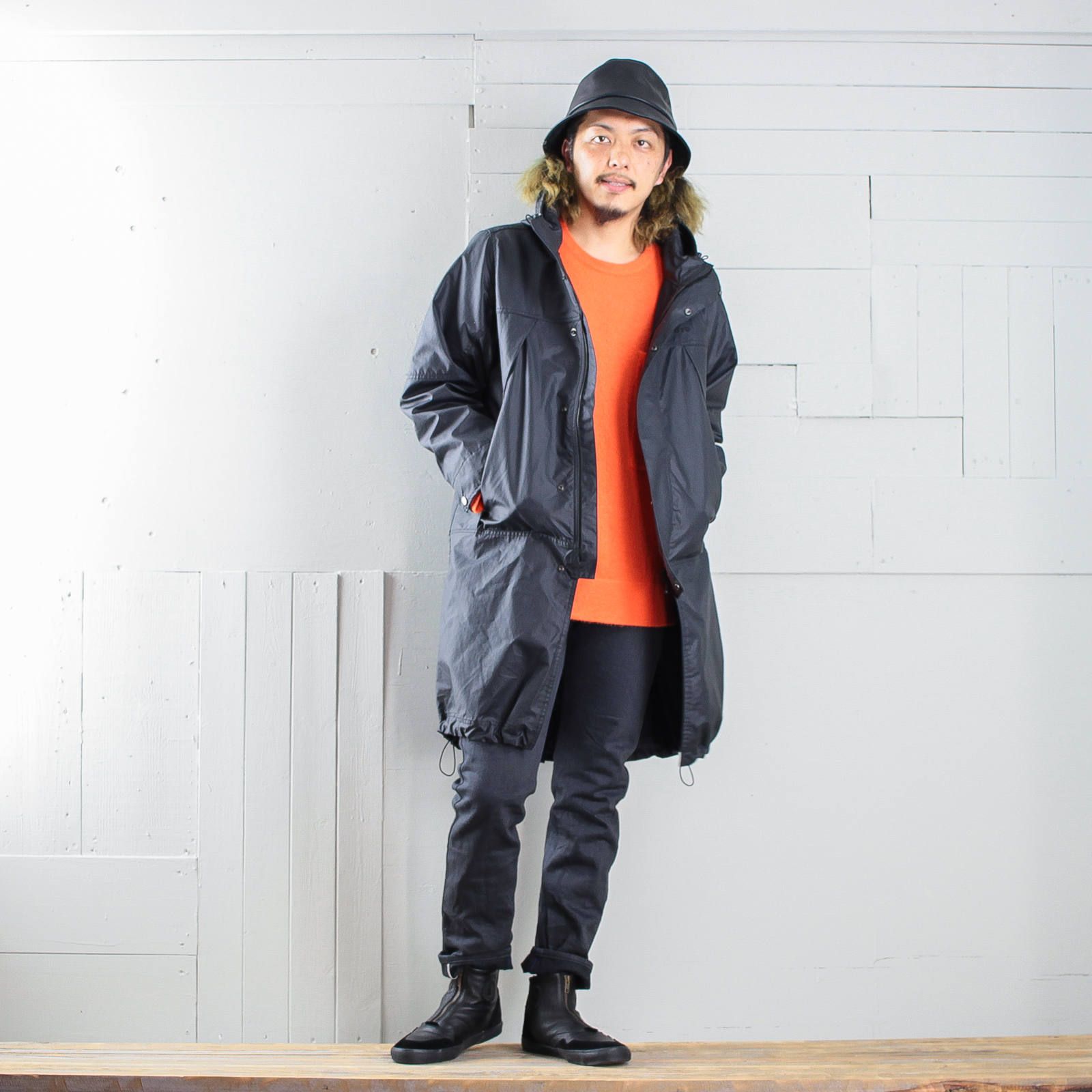 光沢のある生地が何とも格好良いロングマウンテンパーカー。