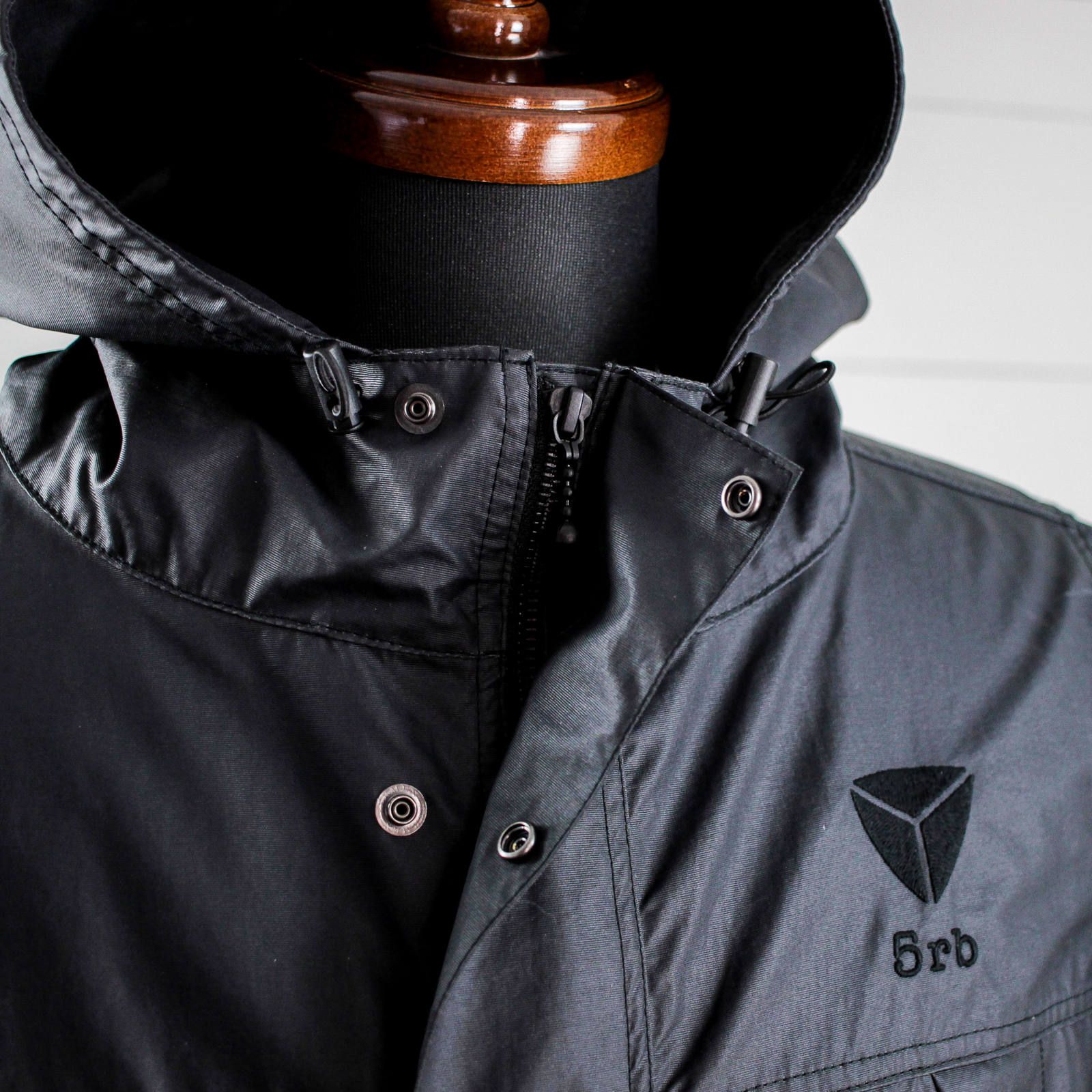 真っ黒な中のワンポイント。左袖口にリフレクタープリントで小さくVOOの情報が。