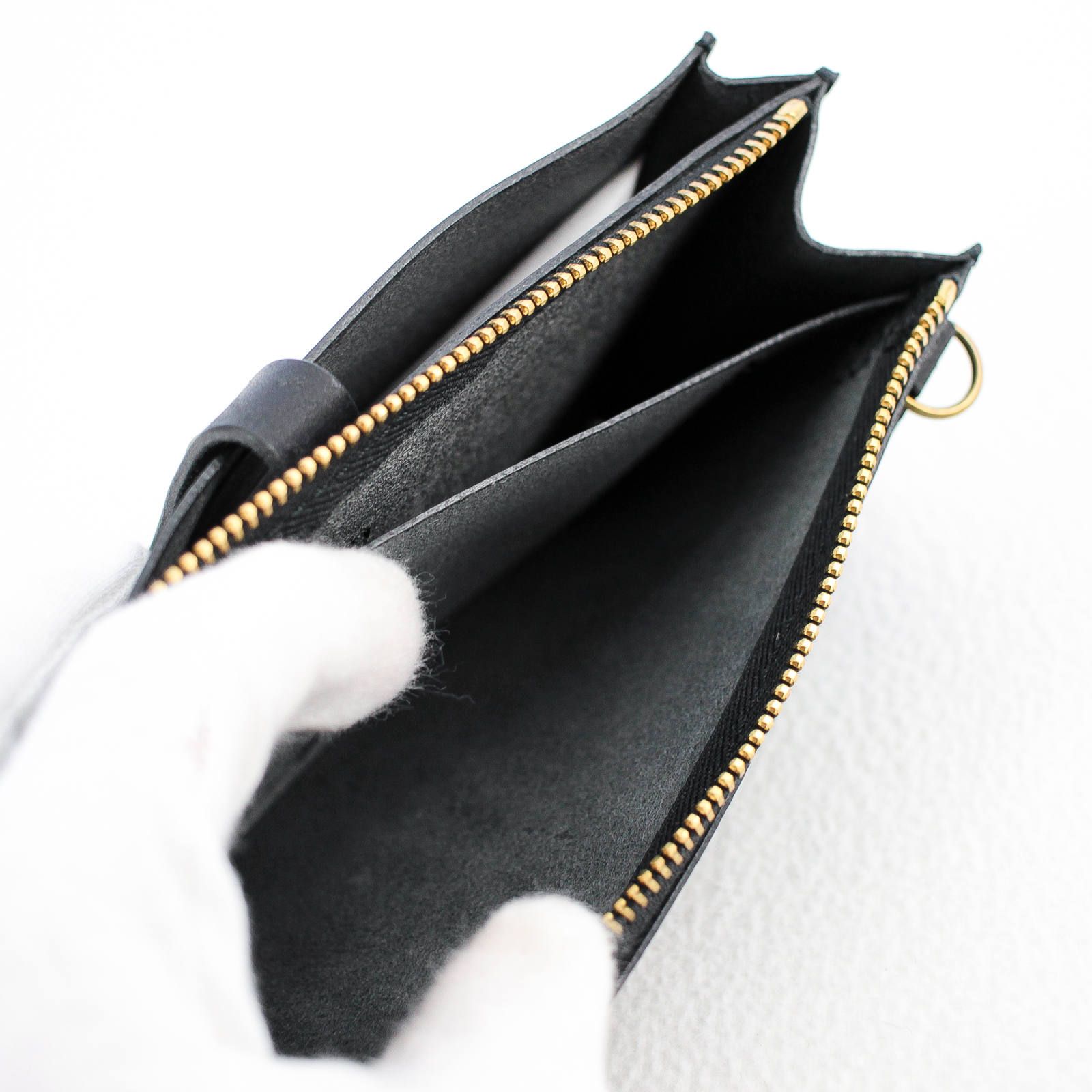 財布としての機能と、ポーチとしての機能を果たすため、カード入れや仕切りも充実してます。