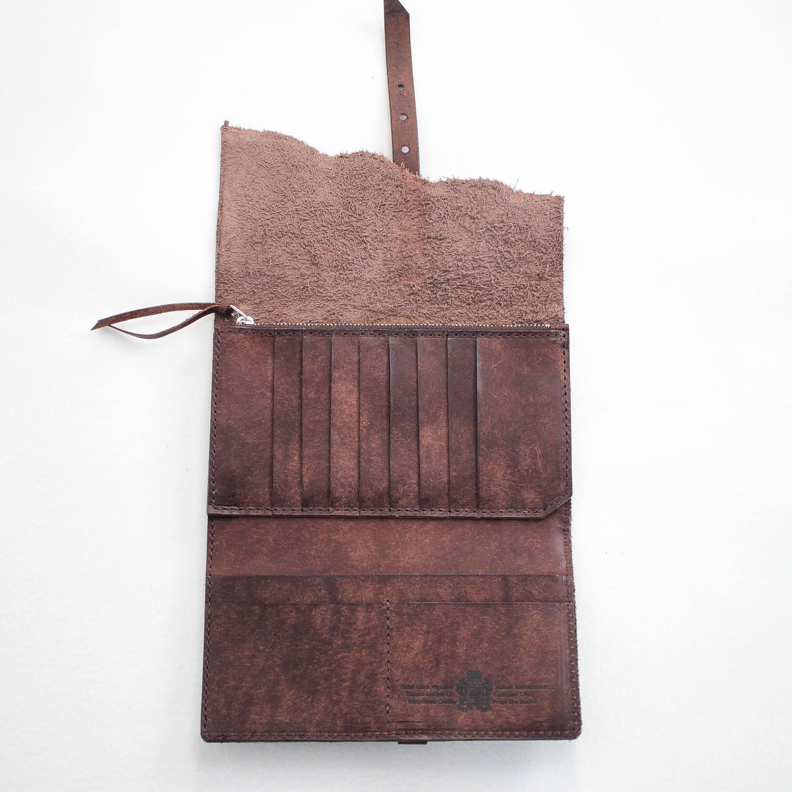 ベルトでクルクルっと巻いて留める仕様が人気の財布です。