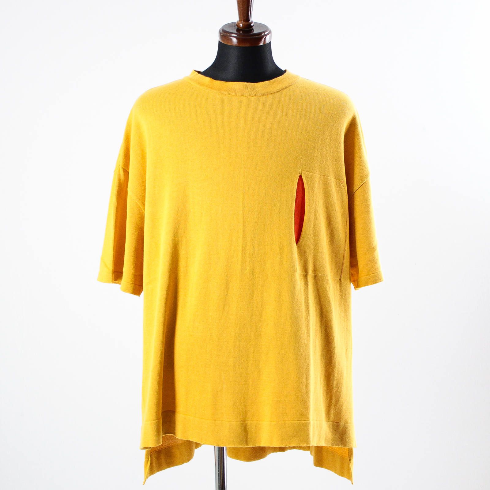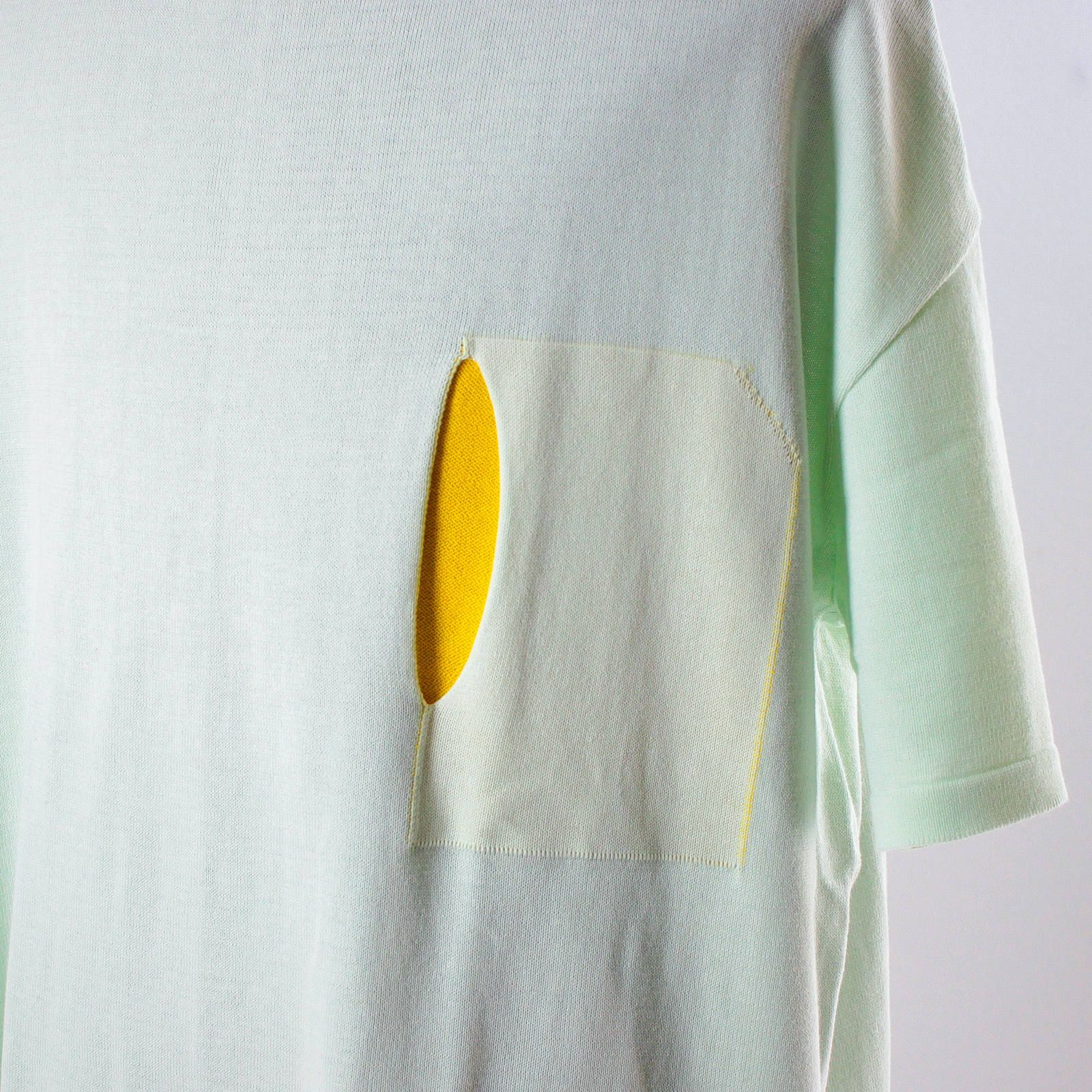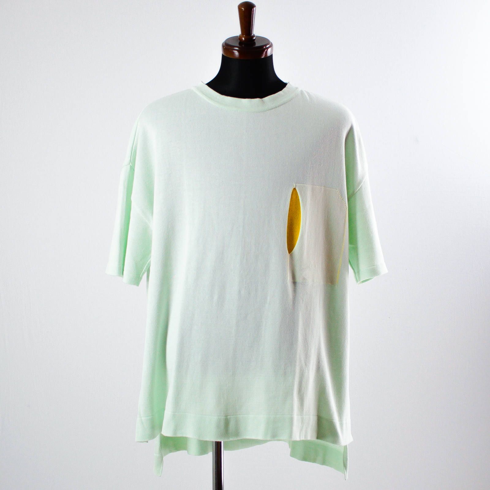 コチラは5分袖のスプリングサマーニット。ニットだからこそ生成可能な胸ポケットがお洒落なアイテム。