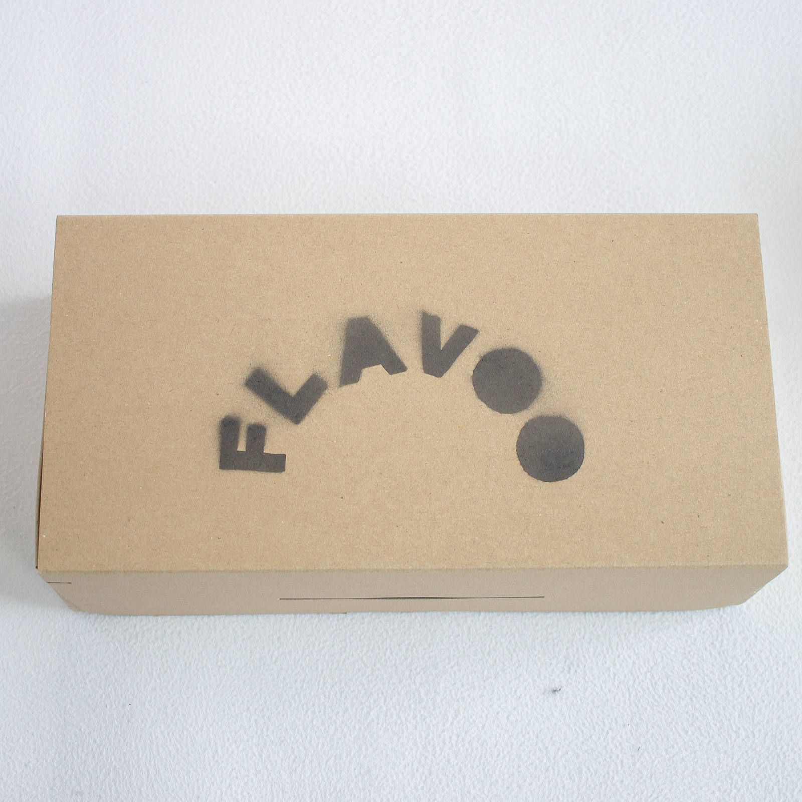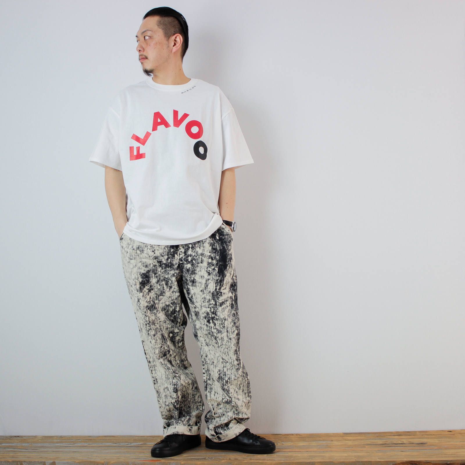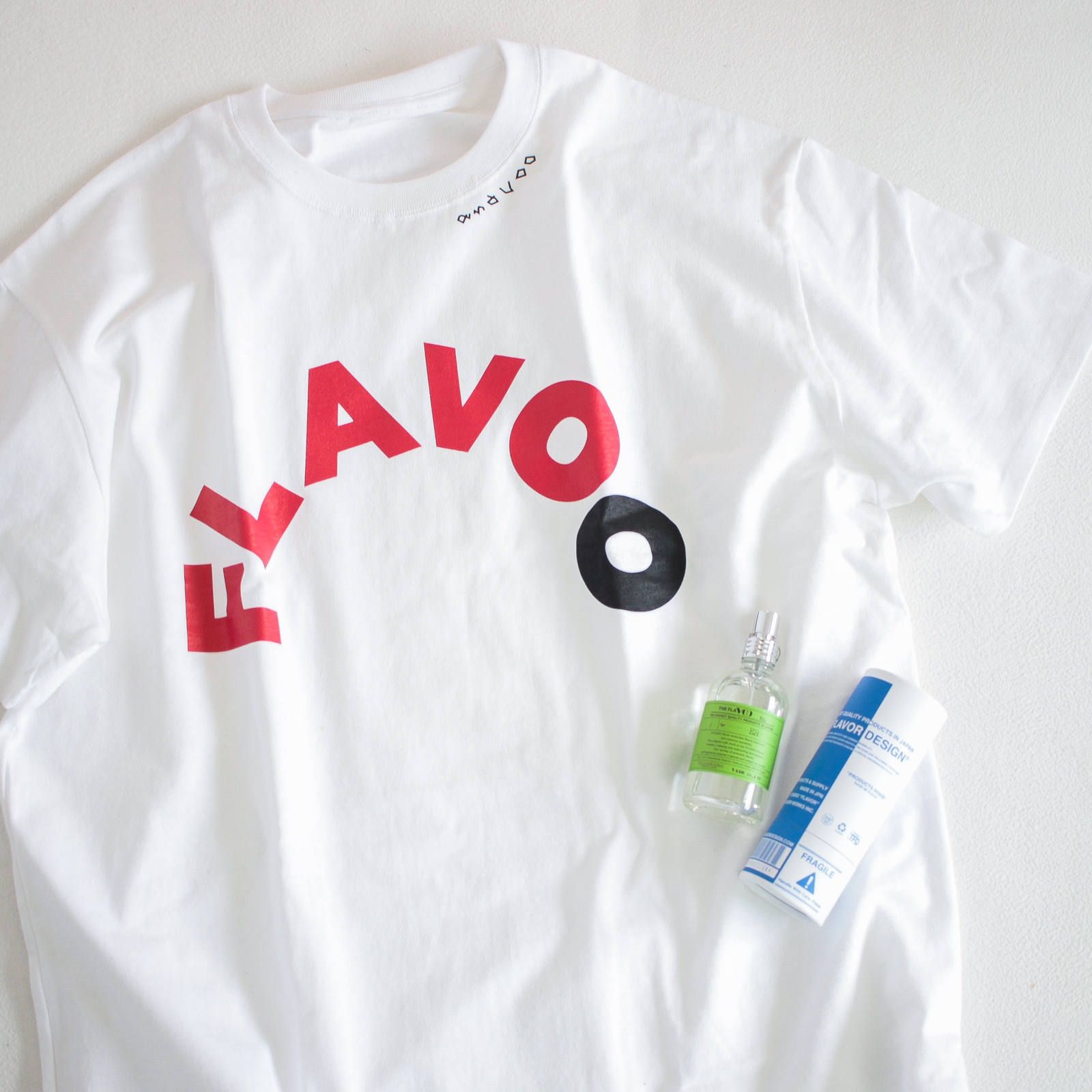 Tシャツデザインは、"FLAVORのオリジナルTシャツ"のデザインをモチーフに、VOOがReデザインしたFLAVOOロゴTシャツ。ビッグロゴ&色使いが、なんだか懐かしさを感じるGOODなデザイン。