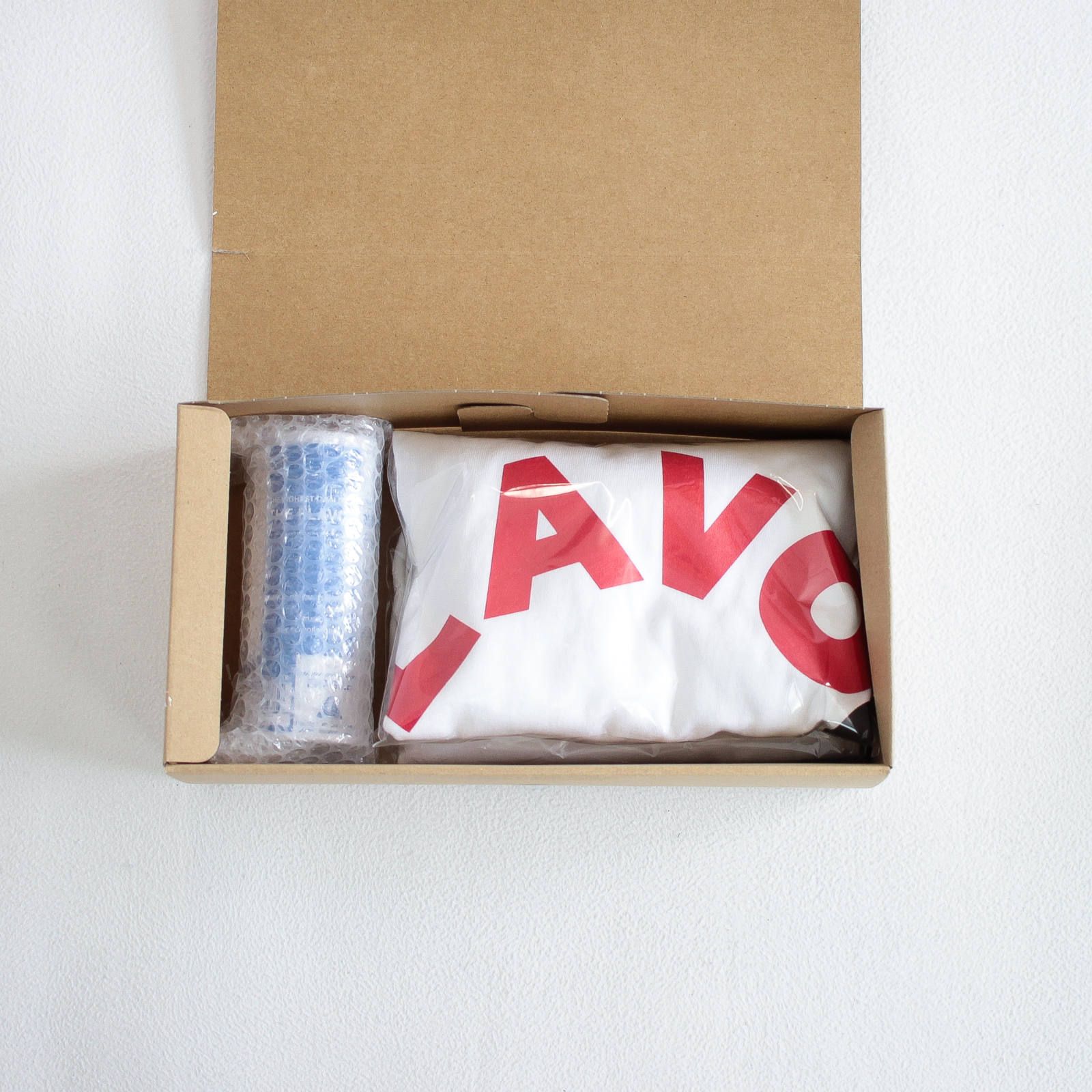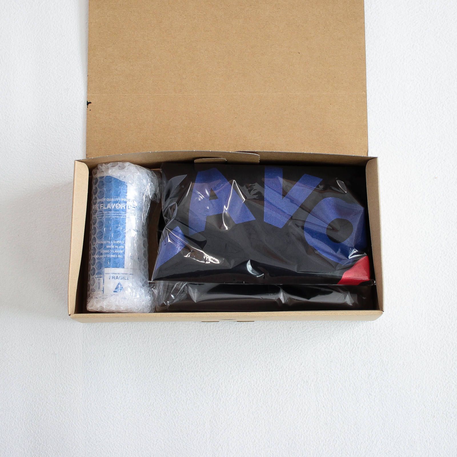 こんな感じでVOOのTシャツとFLAVOR DESIGNのフレーバーミストがセットになったアイテムです。