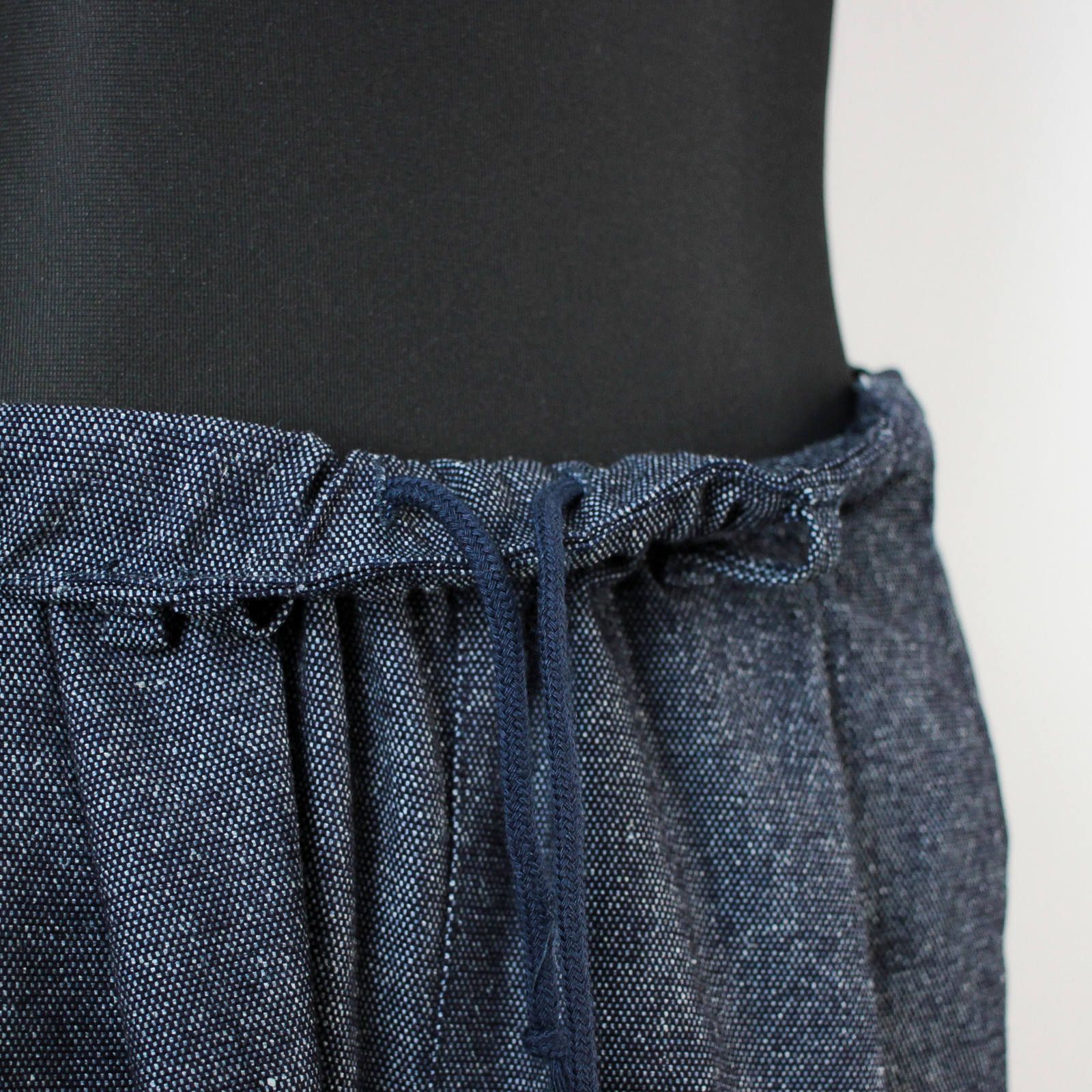 タック入りの大人な感じのスラックスですが、ウエストはゴム+紐のイージー仕様。程よく抜け感があり、カジュアルに楽しめます。