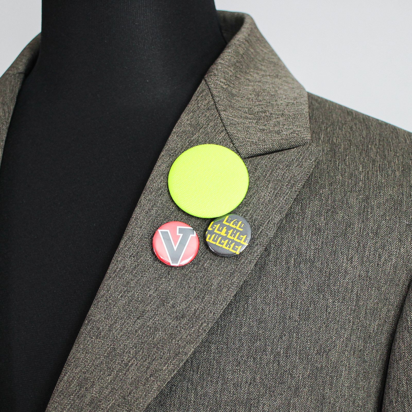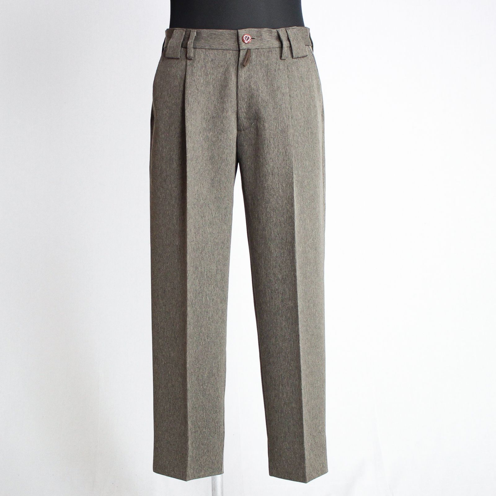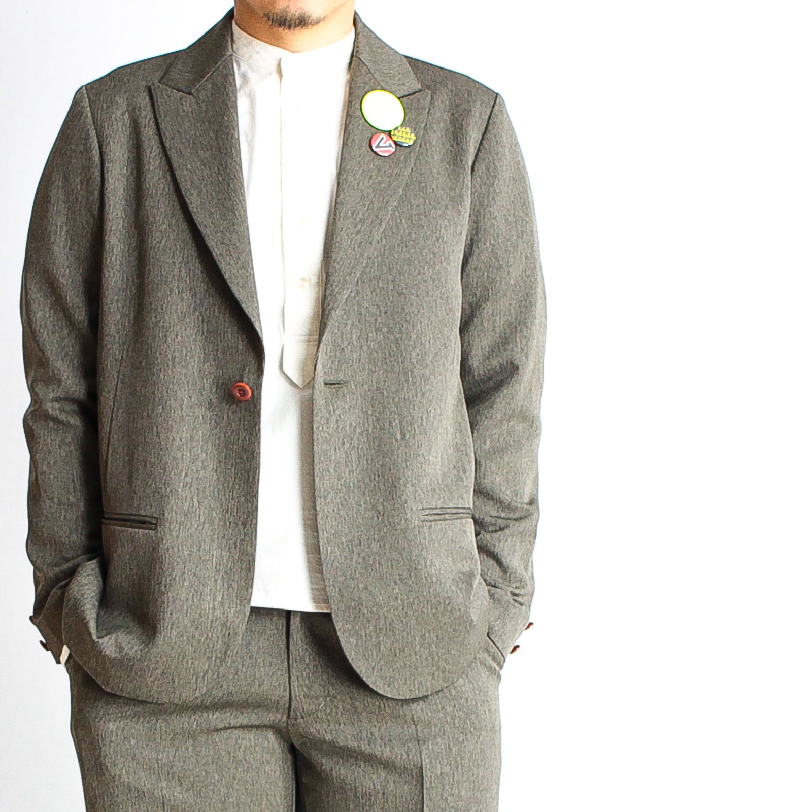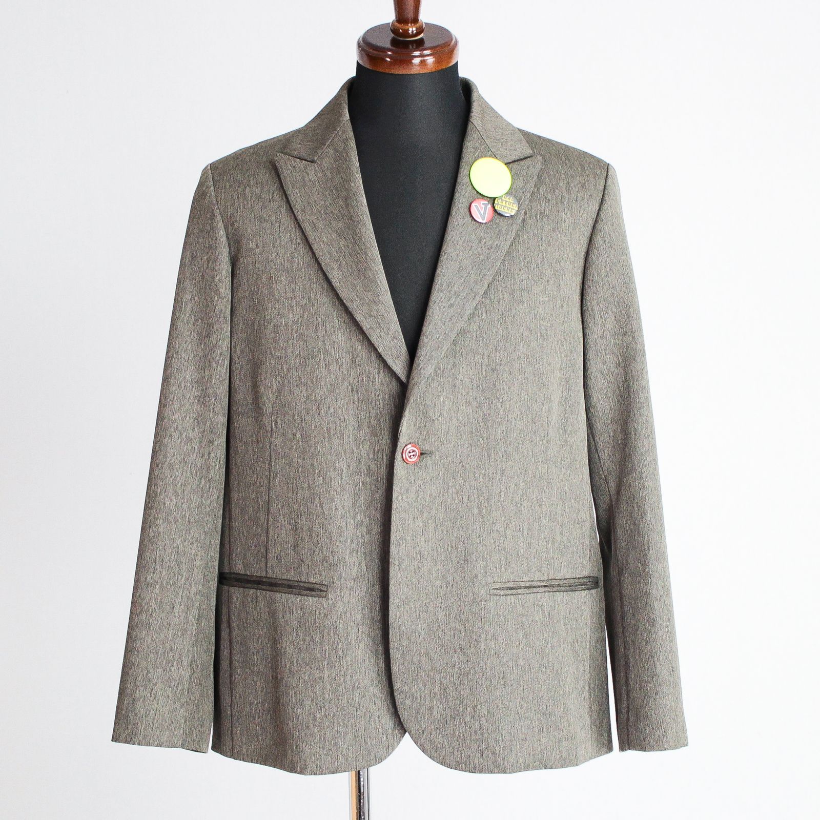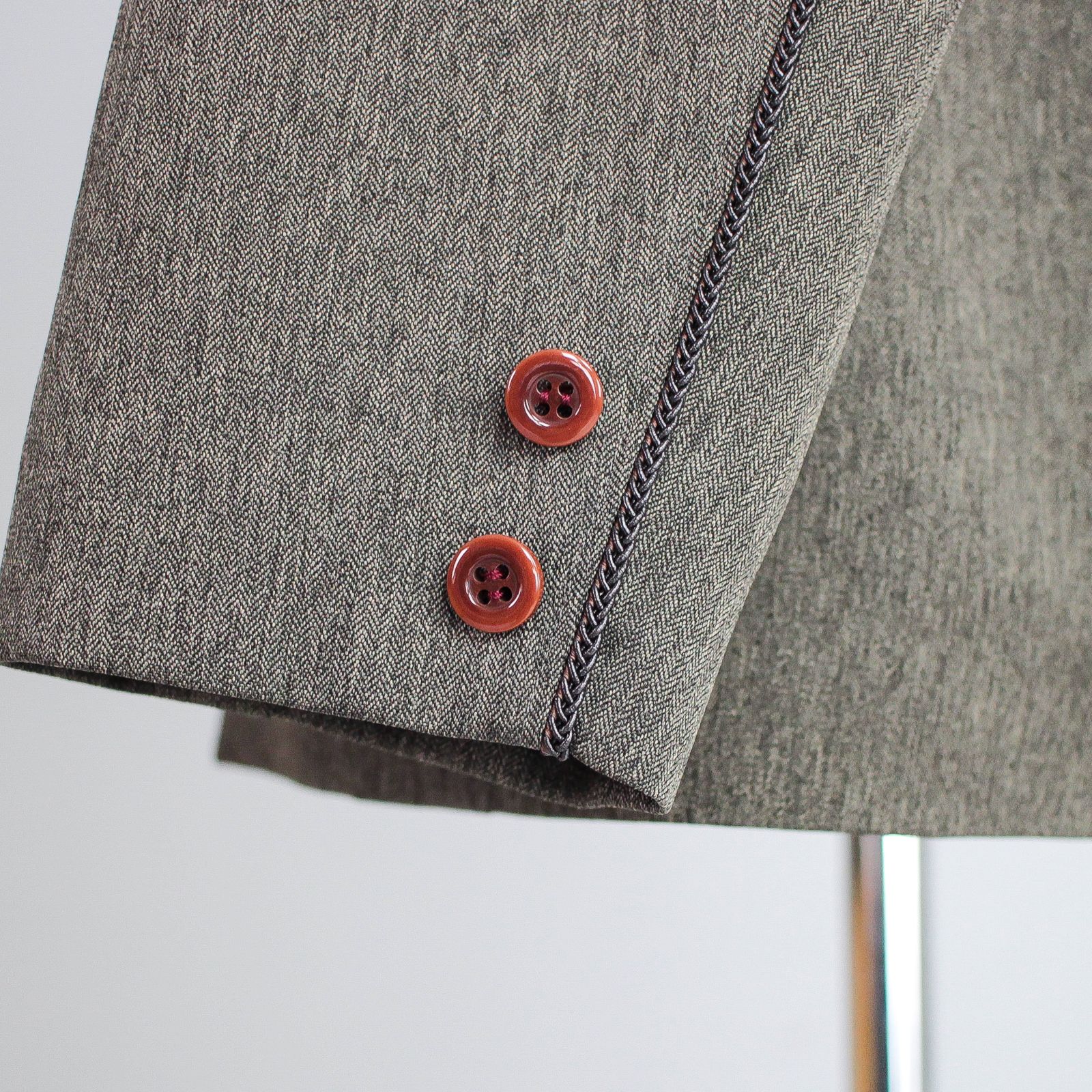 全体的にフォーマルなつくりなのですが、ジャケット、パンツ共に入るロープの様なパイピングと付属する感バッヂがVOOらしいアクセントに。