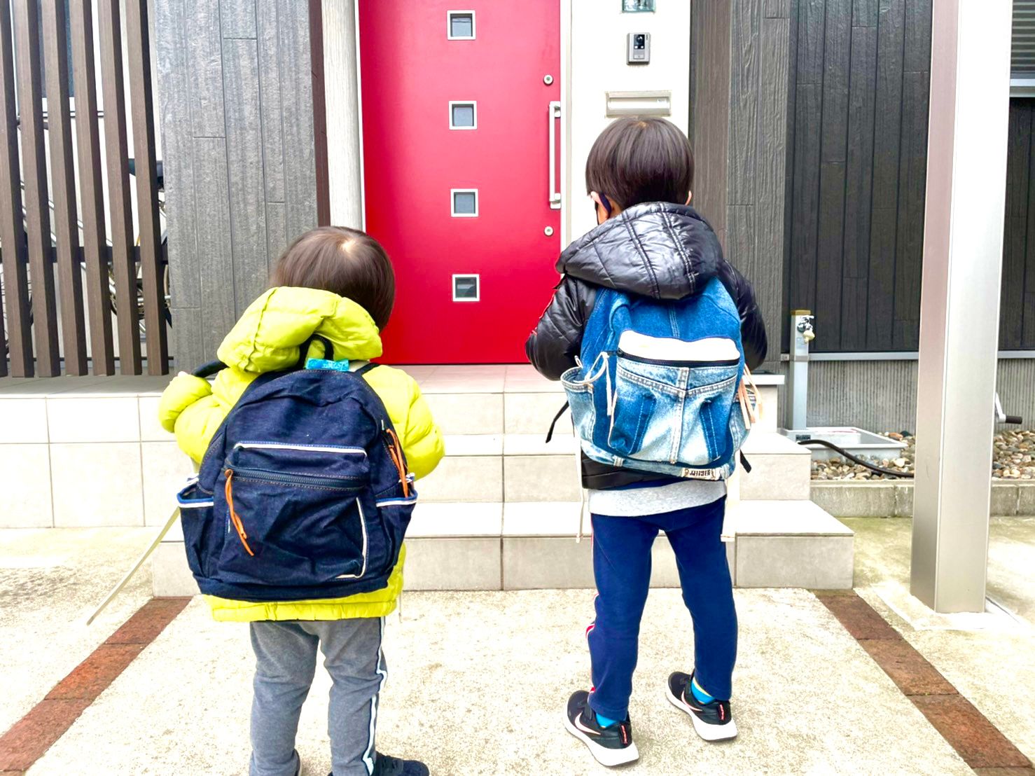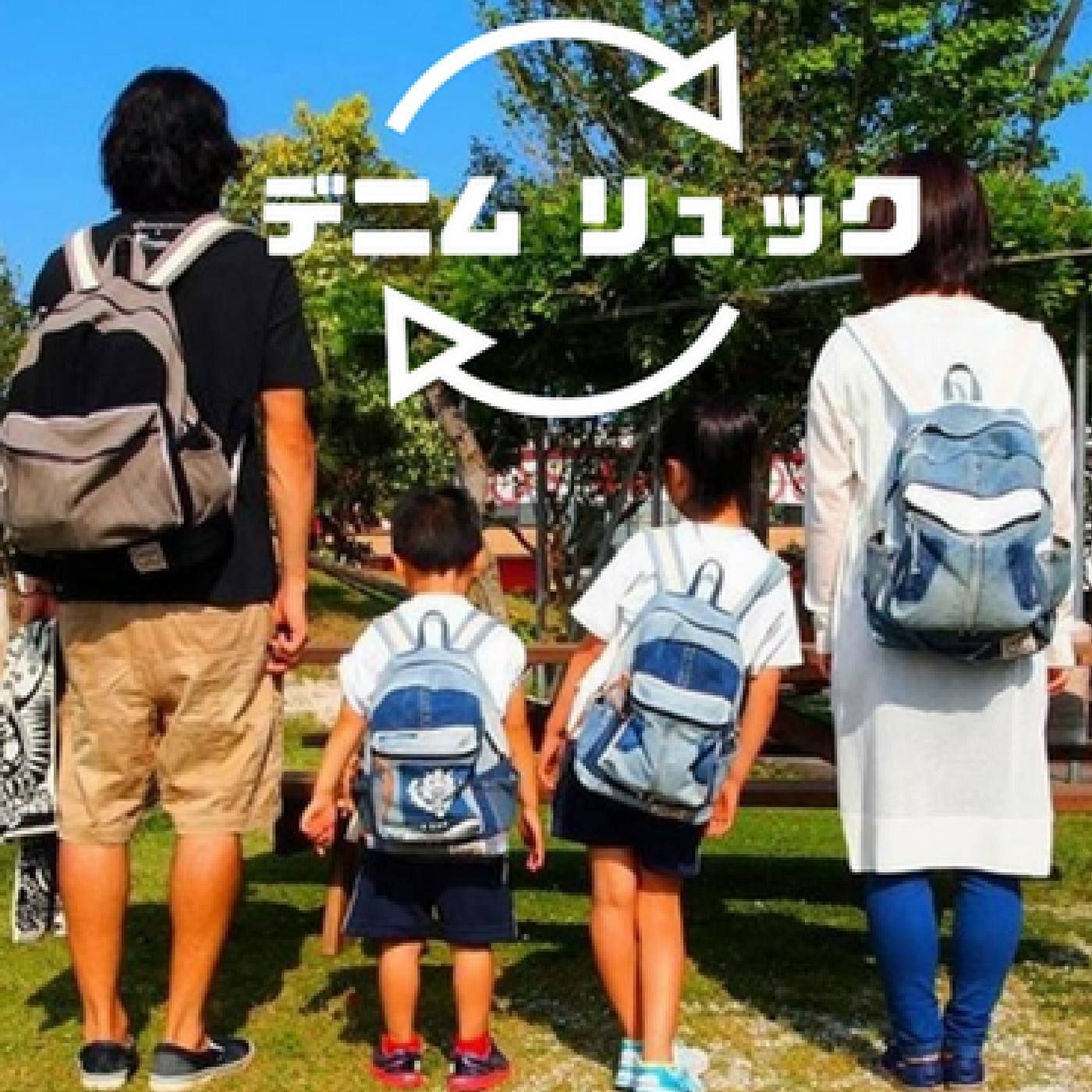 この可愛いお子様の背負っているデニムのリュック。これ当店で制作したリュックなんです。右のお兄ちゃんが背負っているのはUSEDデニムを解体してリメイクしたバージョン。左の弟君が背負ってるのは生デニムで制作したバージョン。