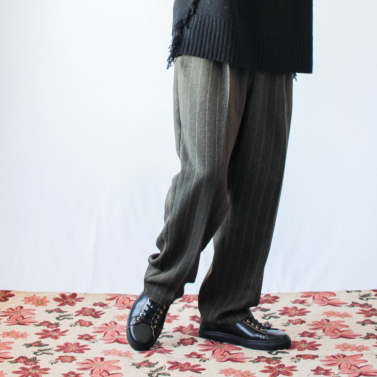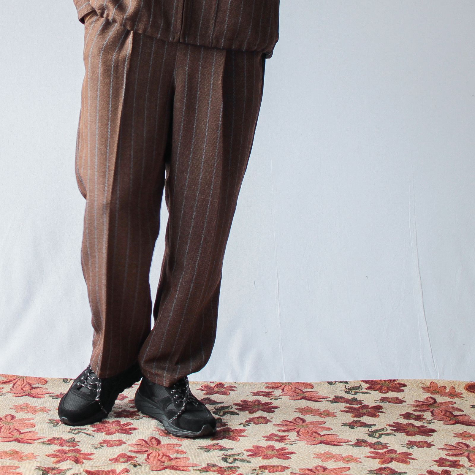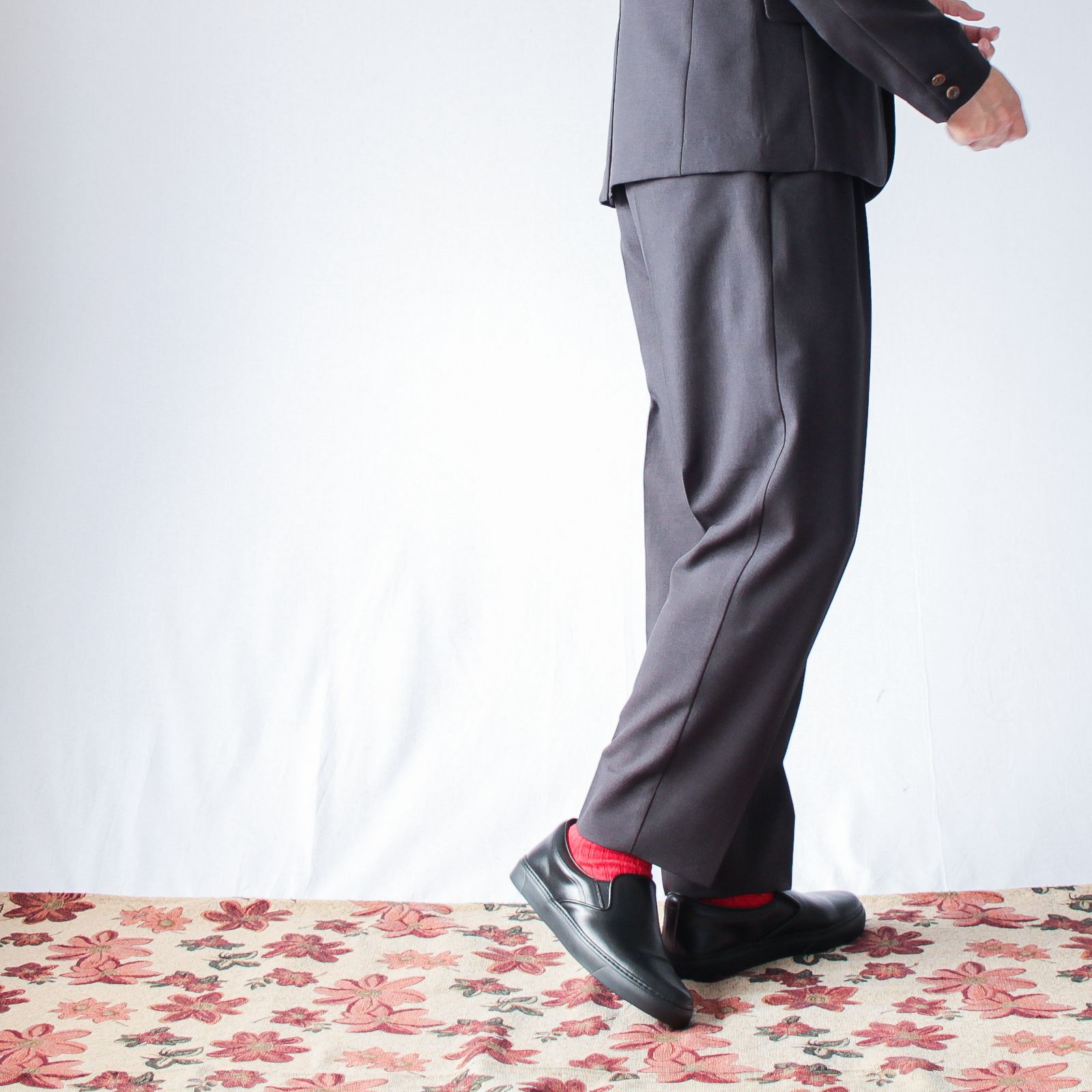 見た目はエナメルやレザーの様な表情で履き心地はステテコ 【masterkey : ワイドツータックパンツ : FILM-PT / フィルムパンツ】