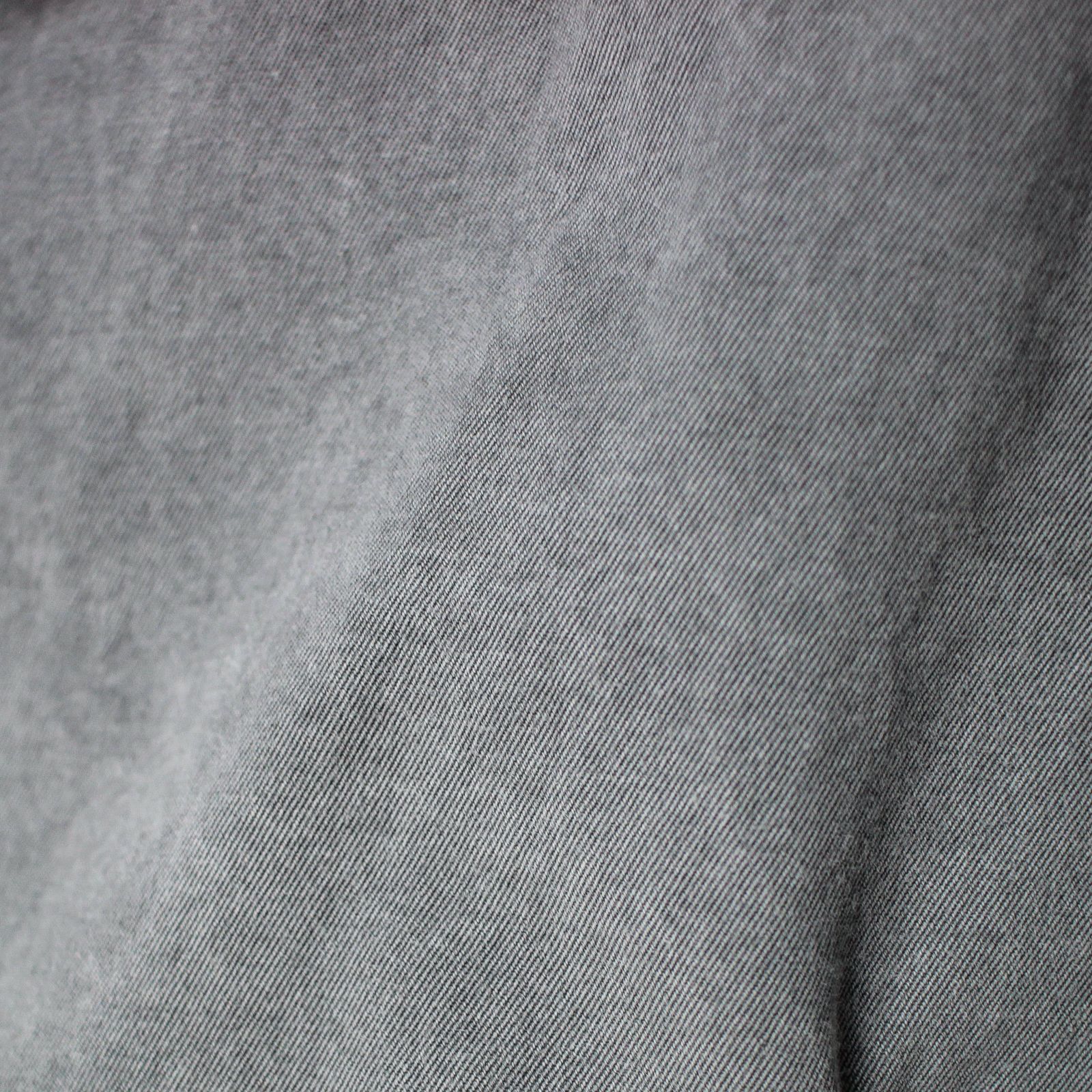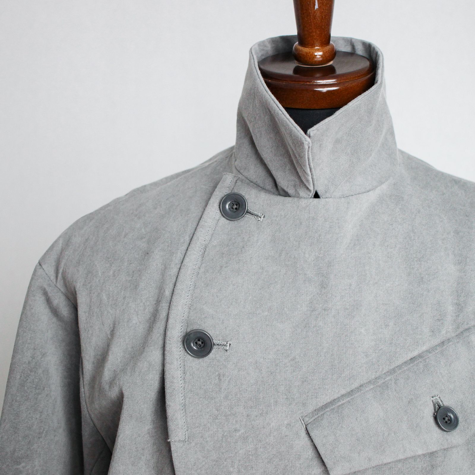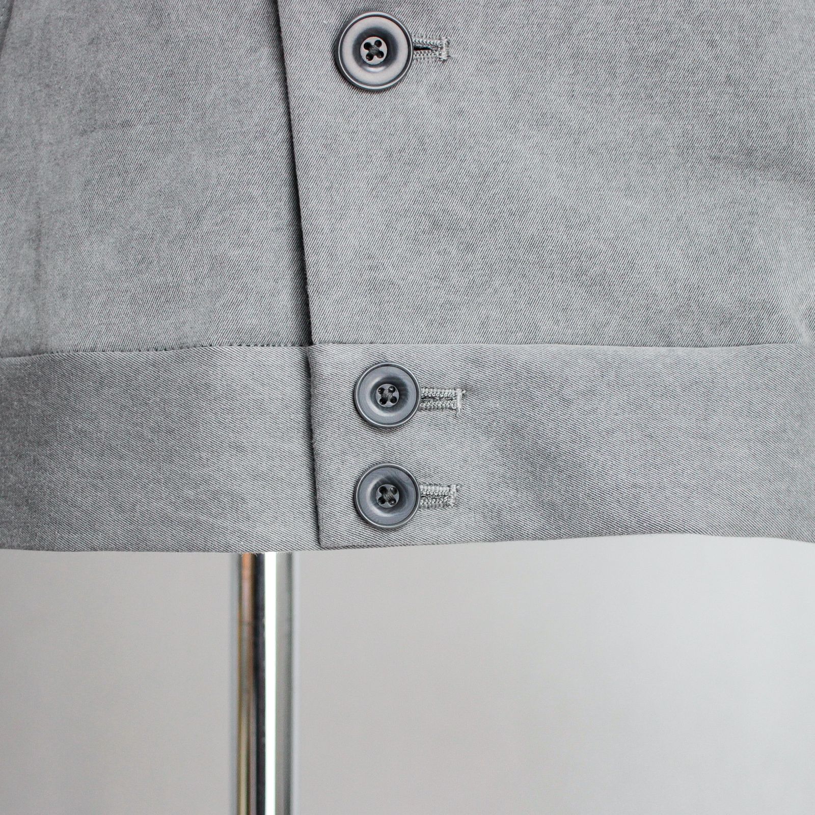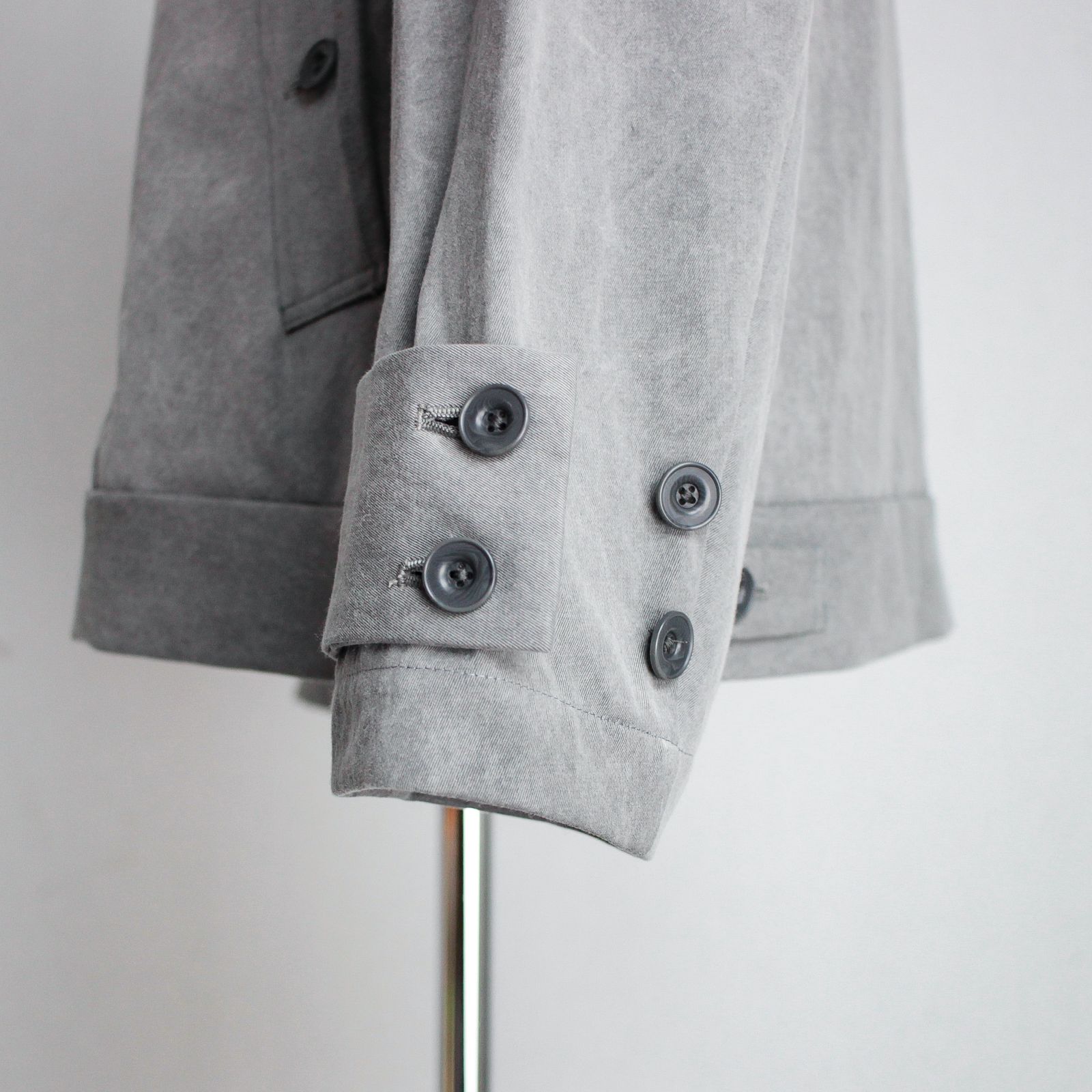 炭で荒く染め上げられた生地は、独特のムラ感と奥行きがあり、うっとりと眺めてしまう程の魅力を持っています。その表情に呼応するがの如く配置されたボタンがまたいいアクセントになってます。